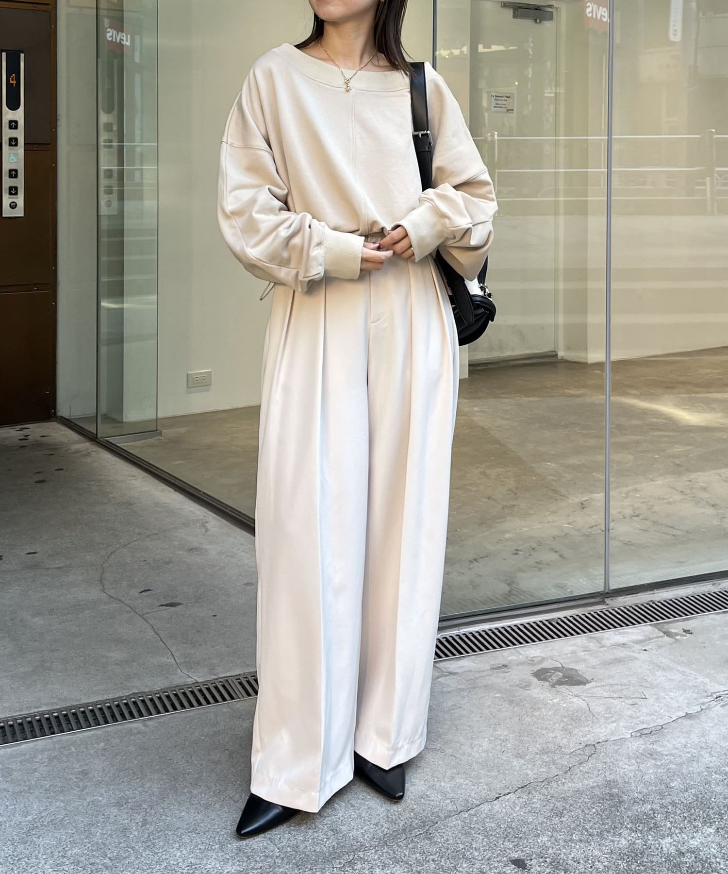・身幅と袖がゆったりしており、抜け感のあるスタイリングに