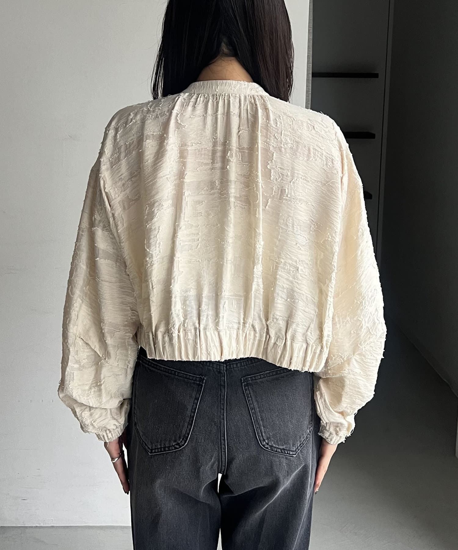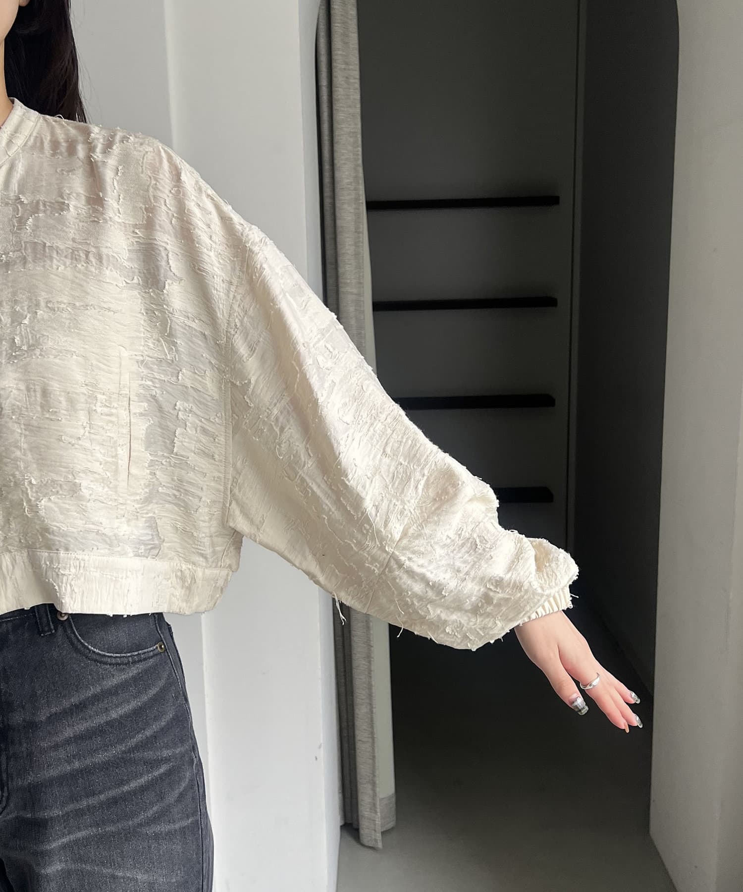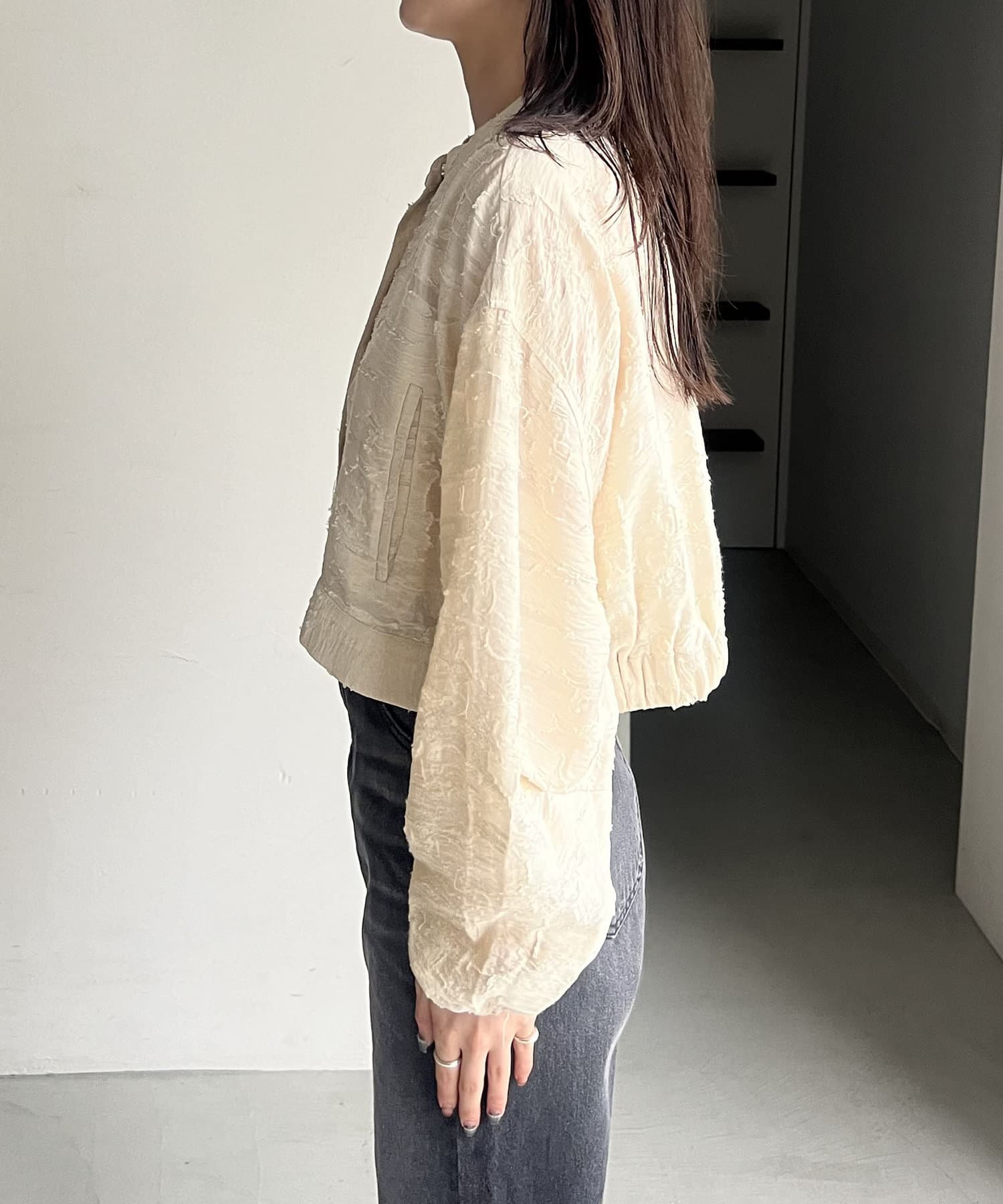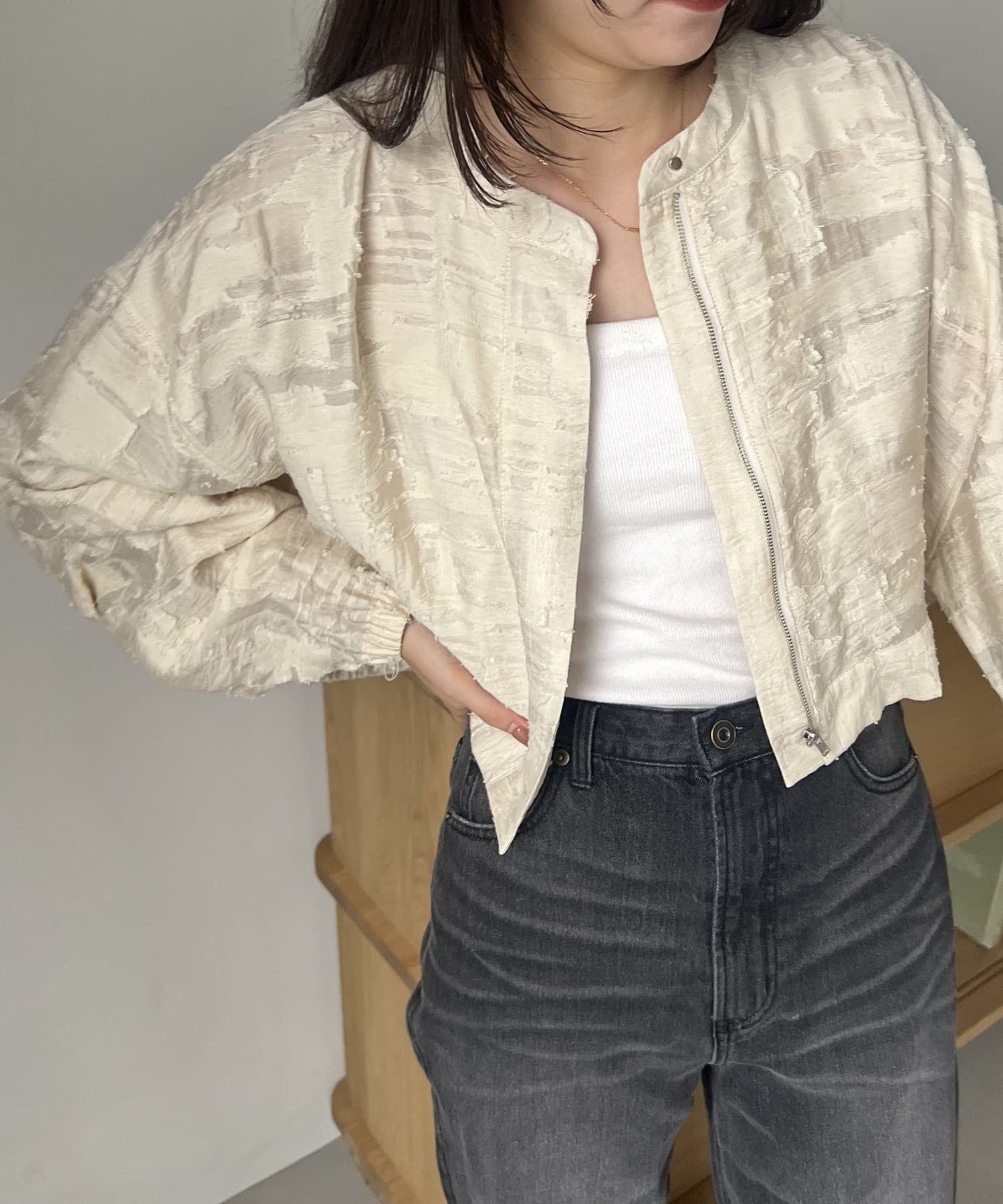 透け感のあるニュアンス柄の生地を使用したブルゾン