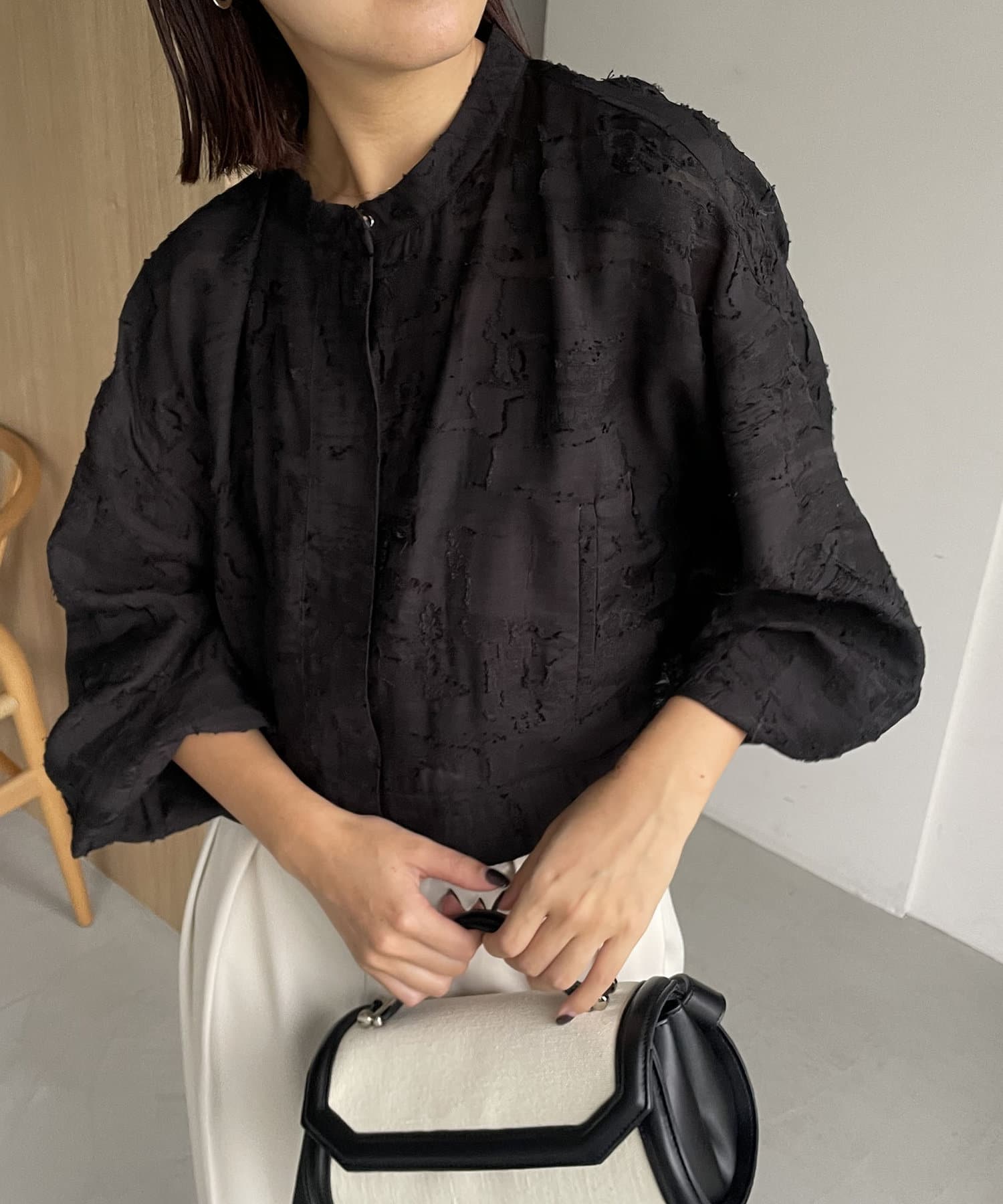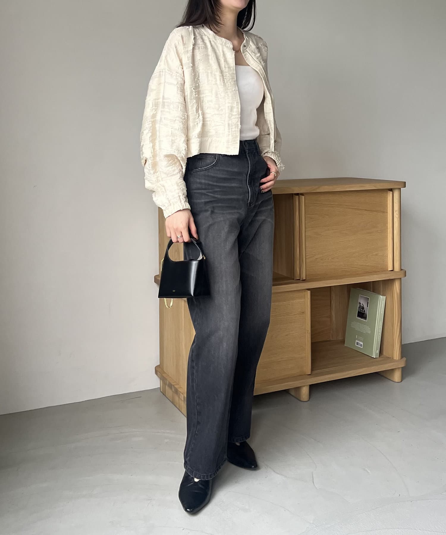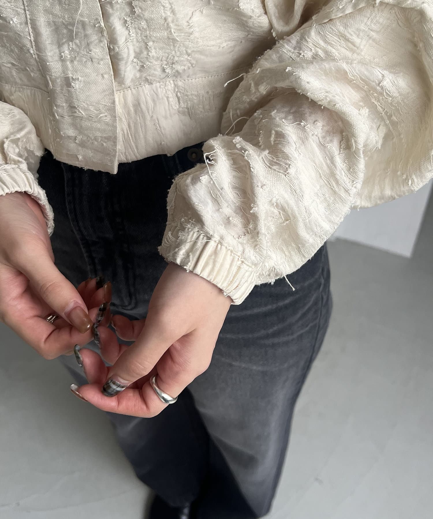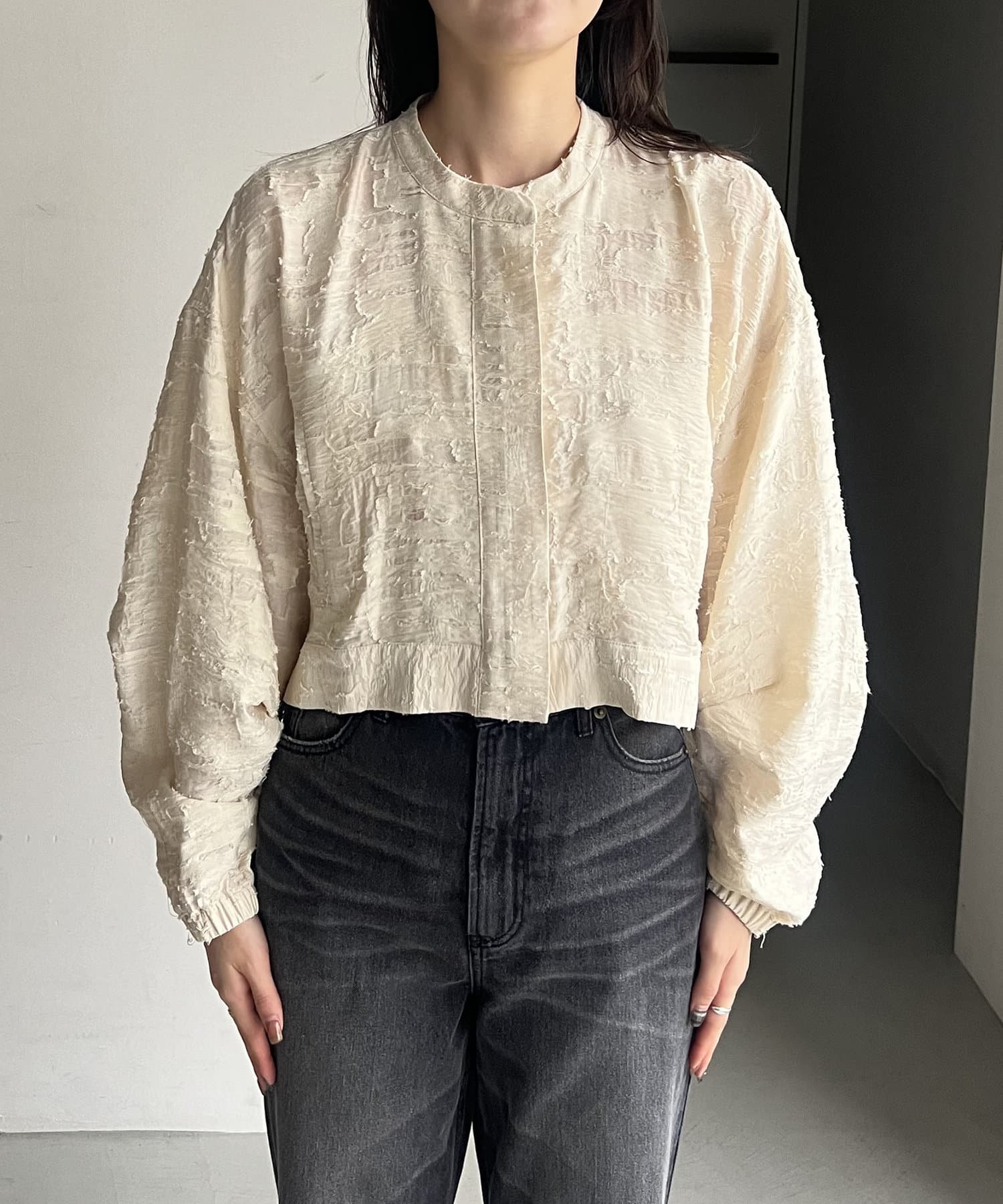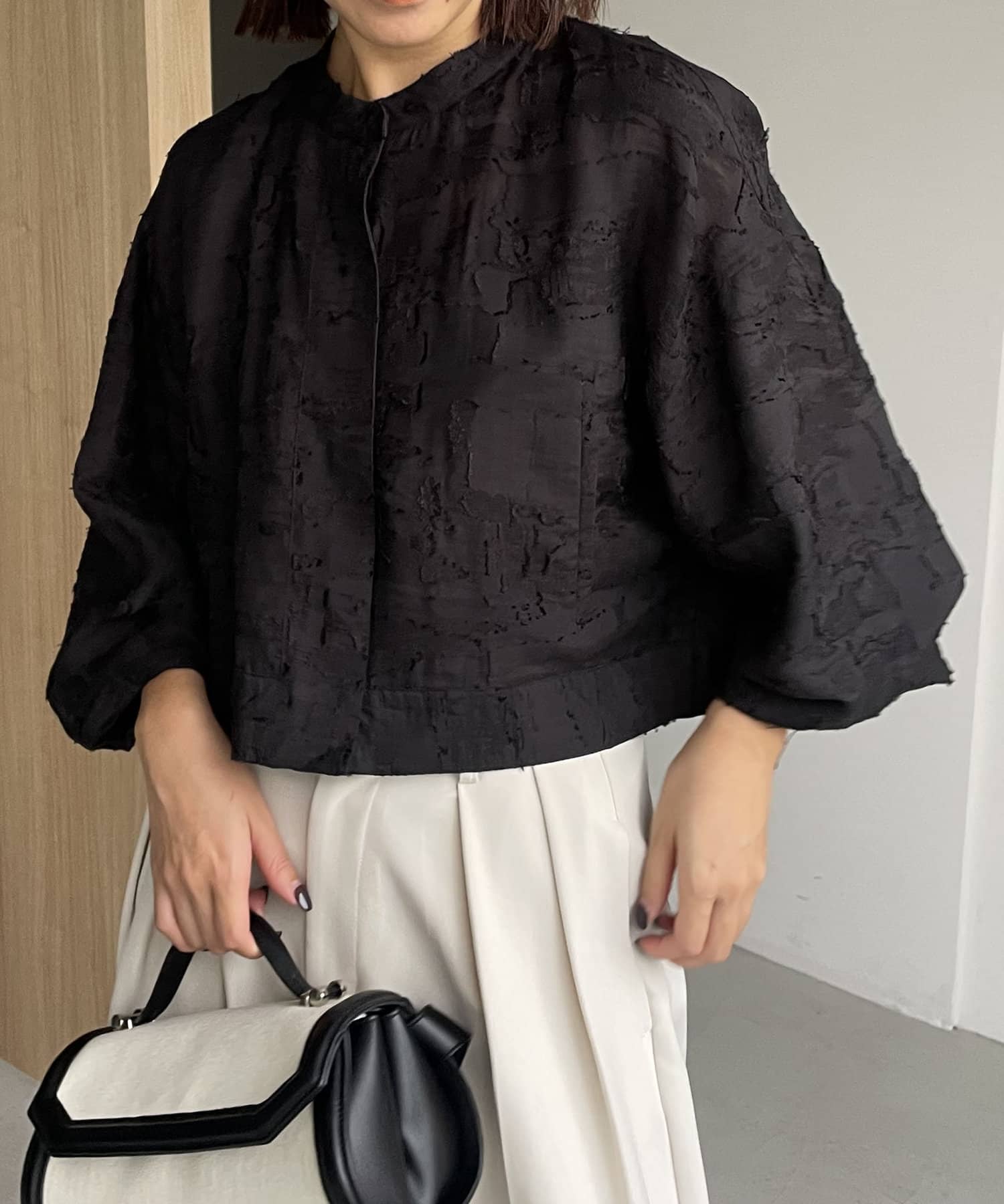 透け感のあるニュアンス柄の生地を使用したブルゾン