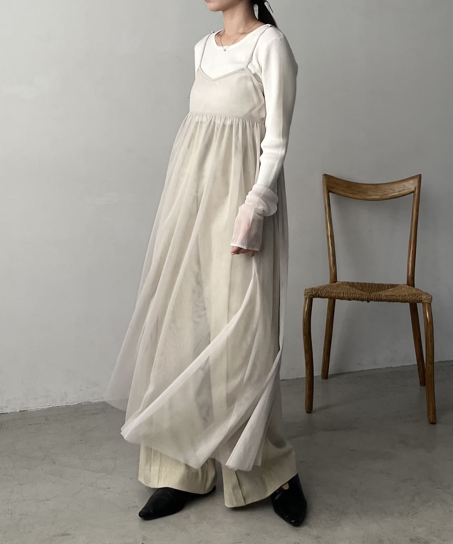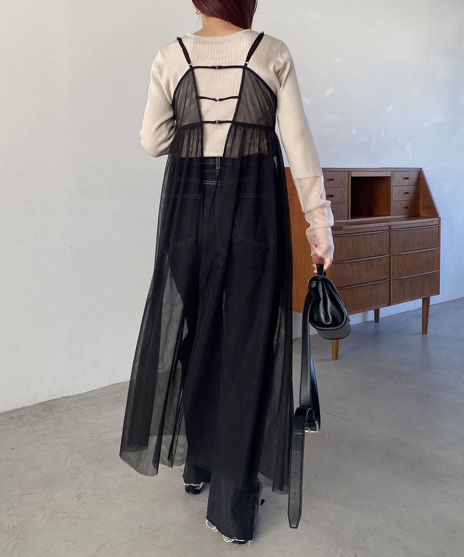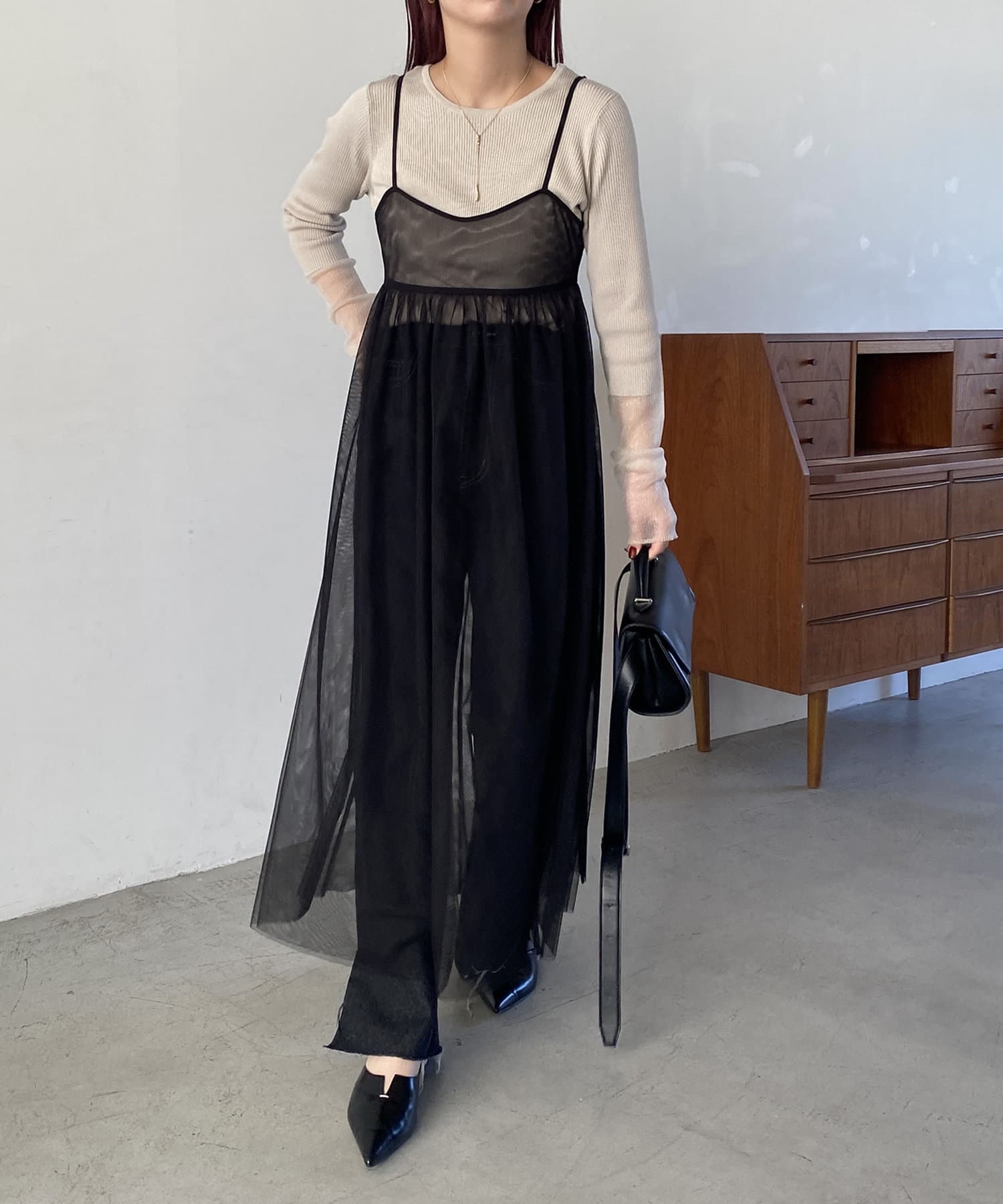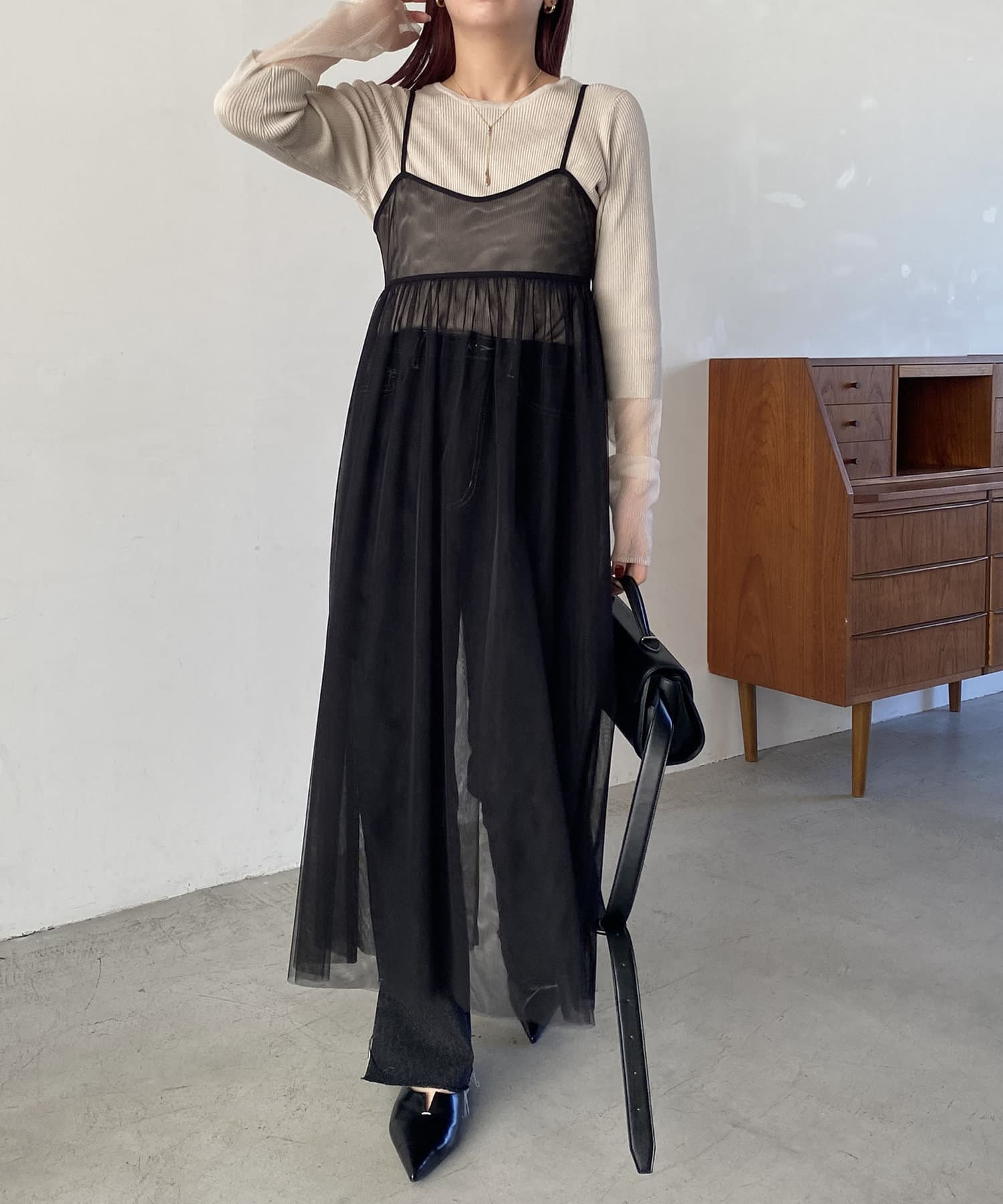 全体に透け感のあるレイヤードを楽しむキャミワンピース