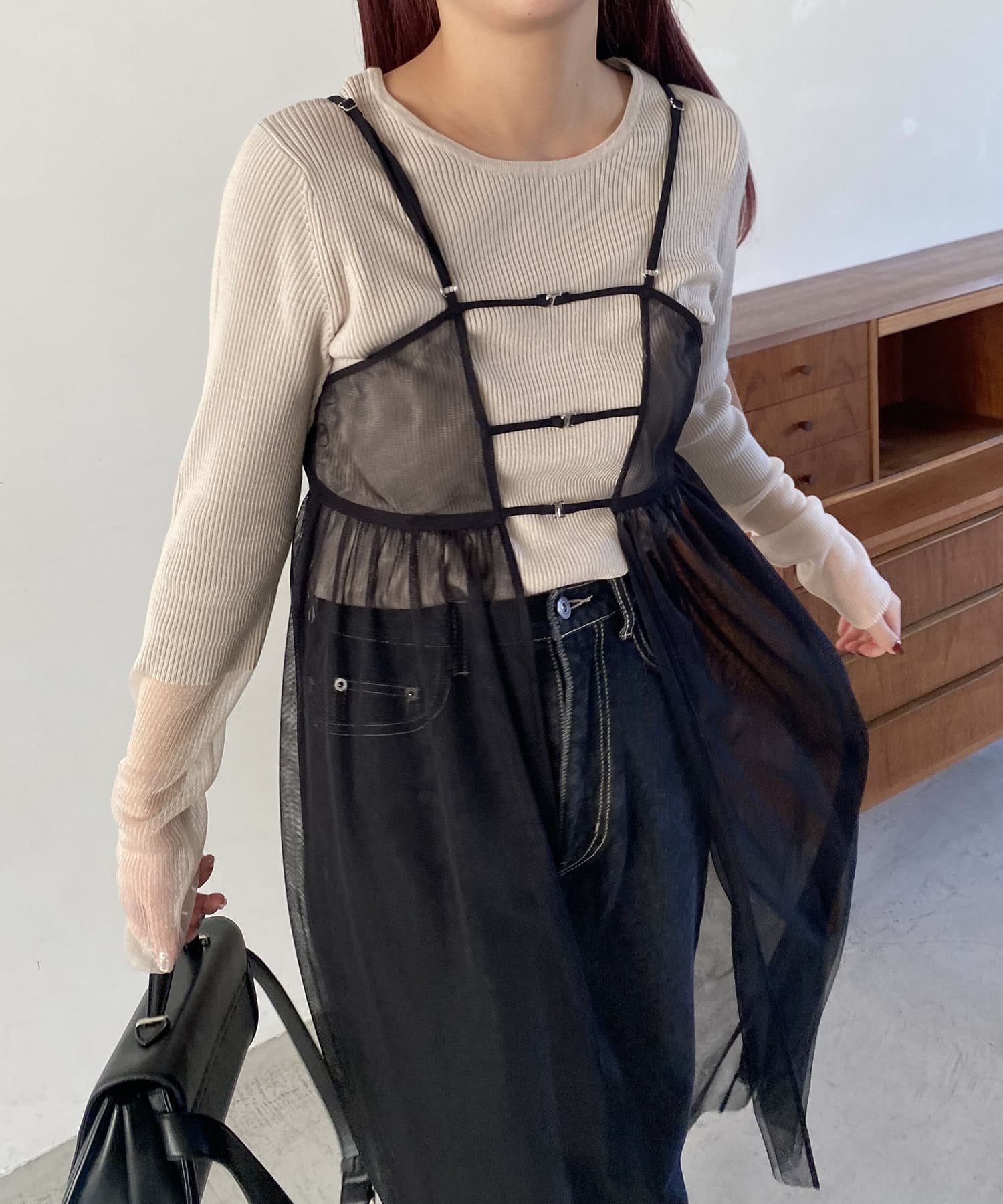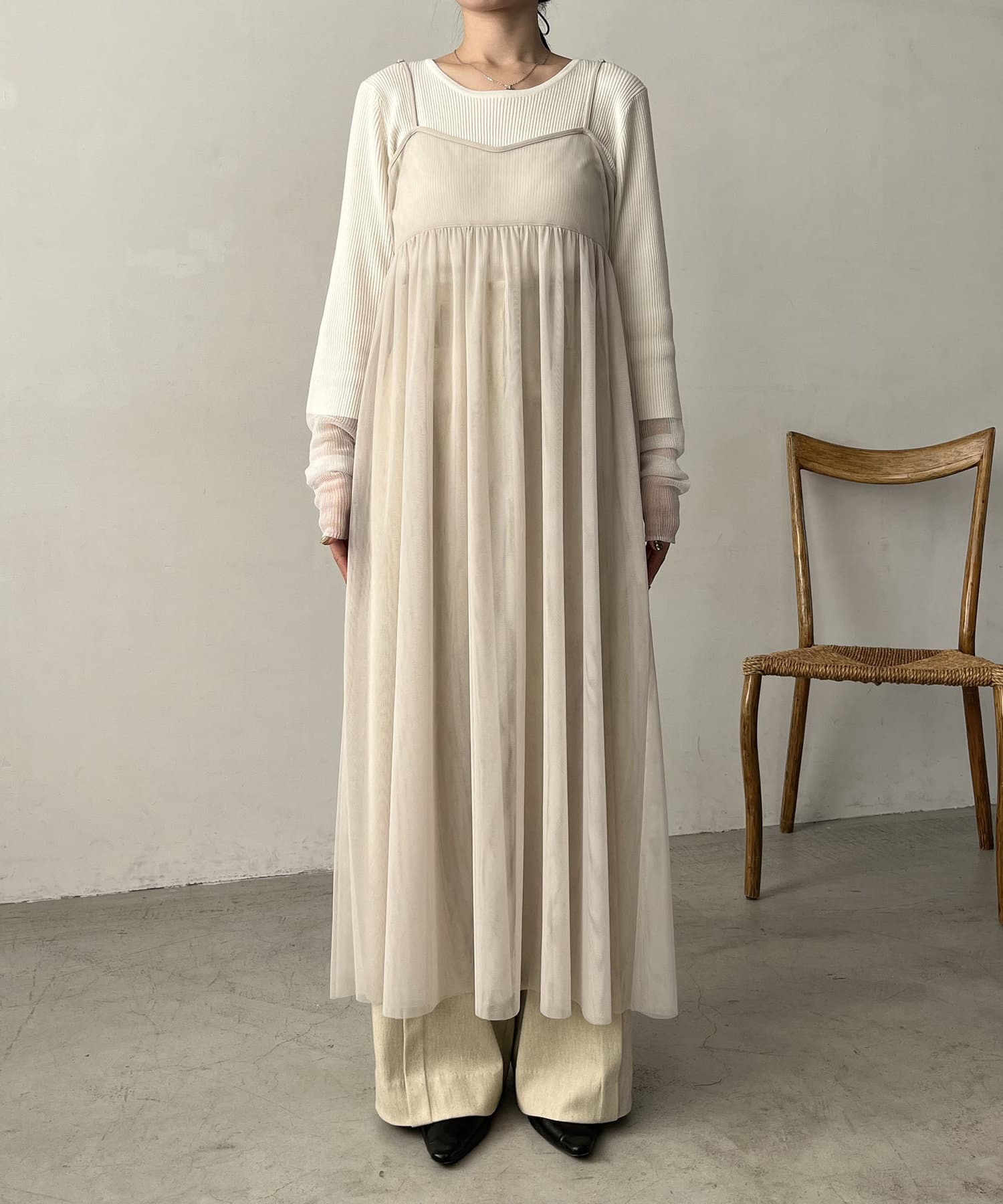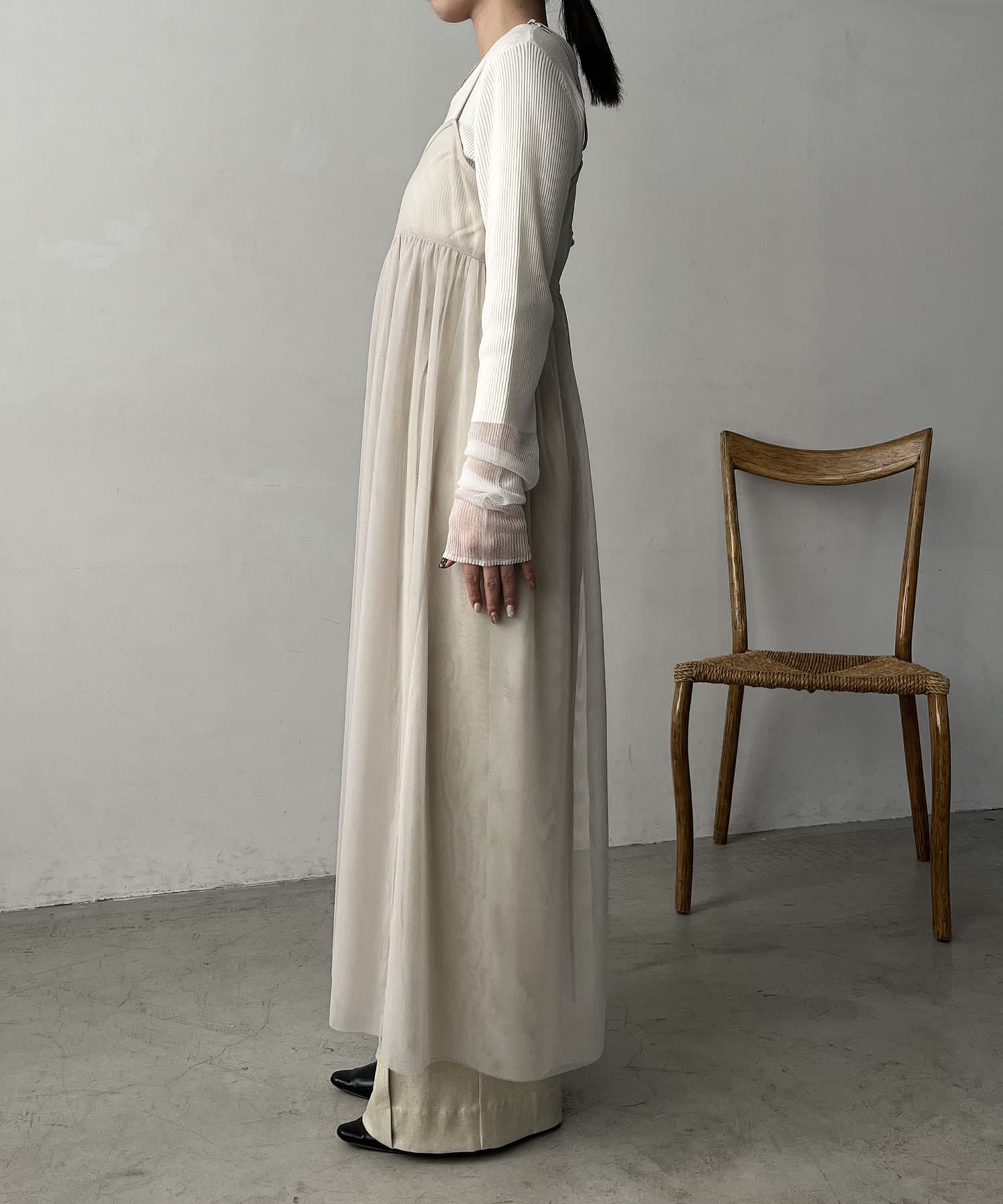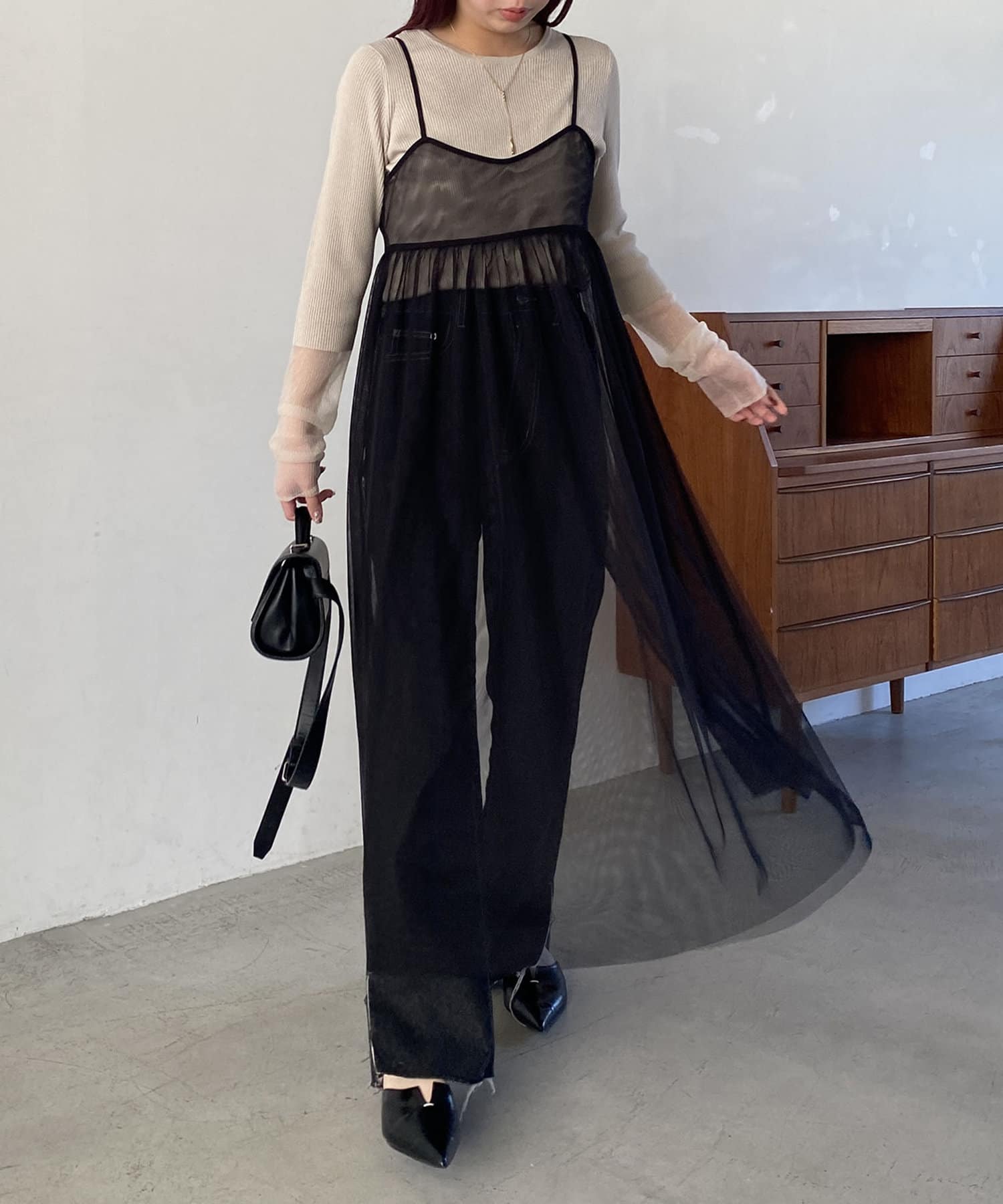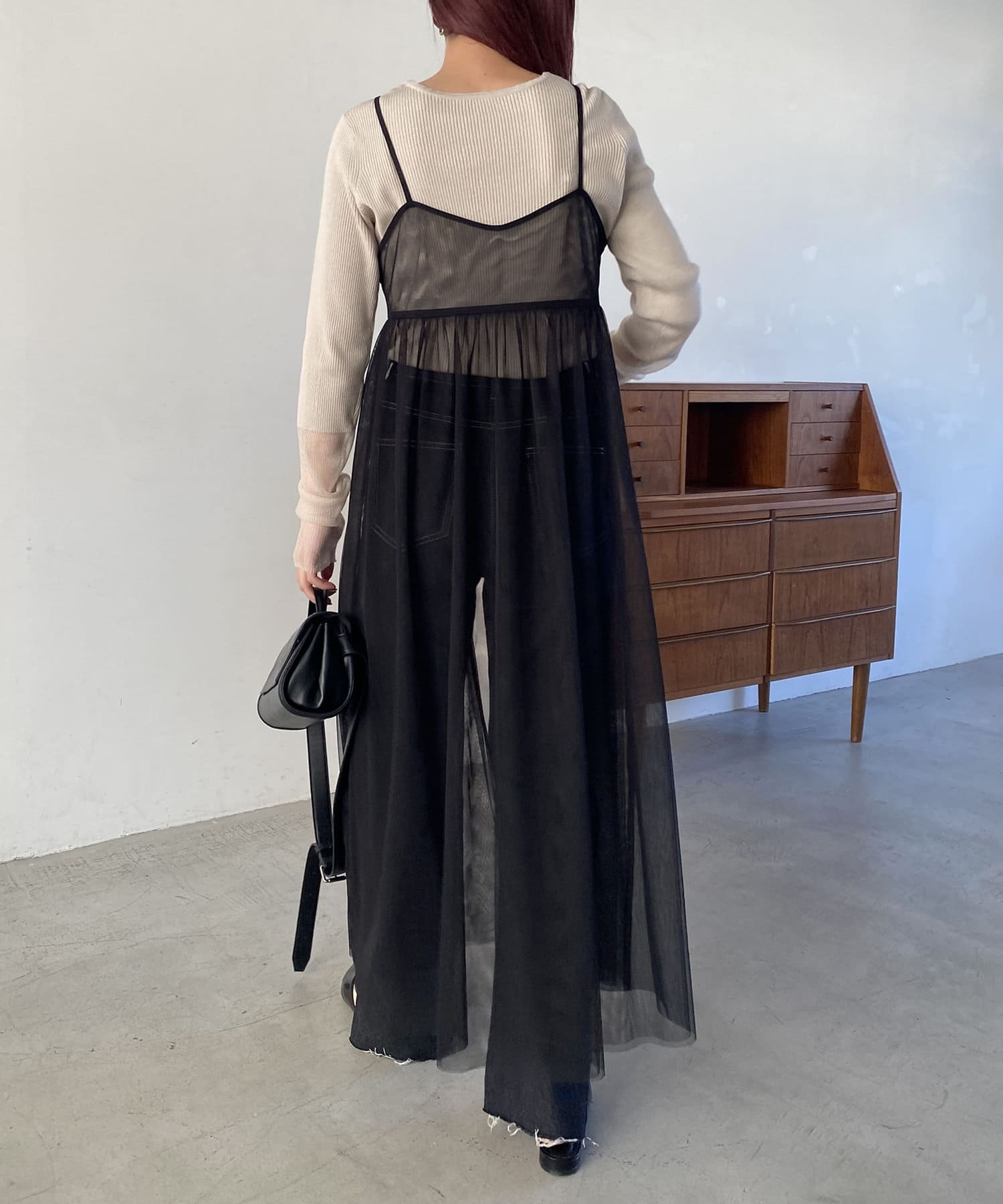 全体に透け感のあるレイヤードを楽しむキャミワンピース
