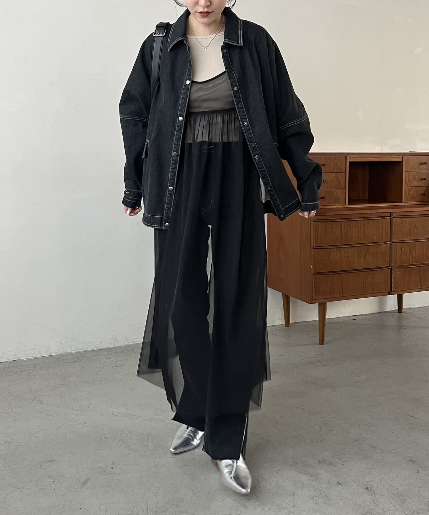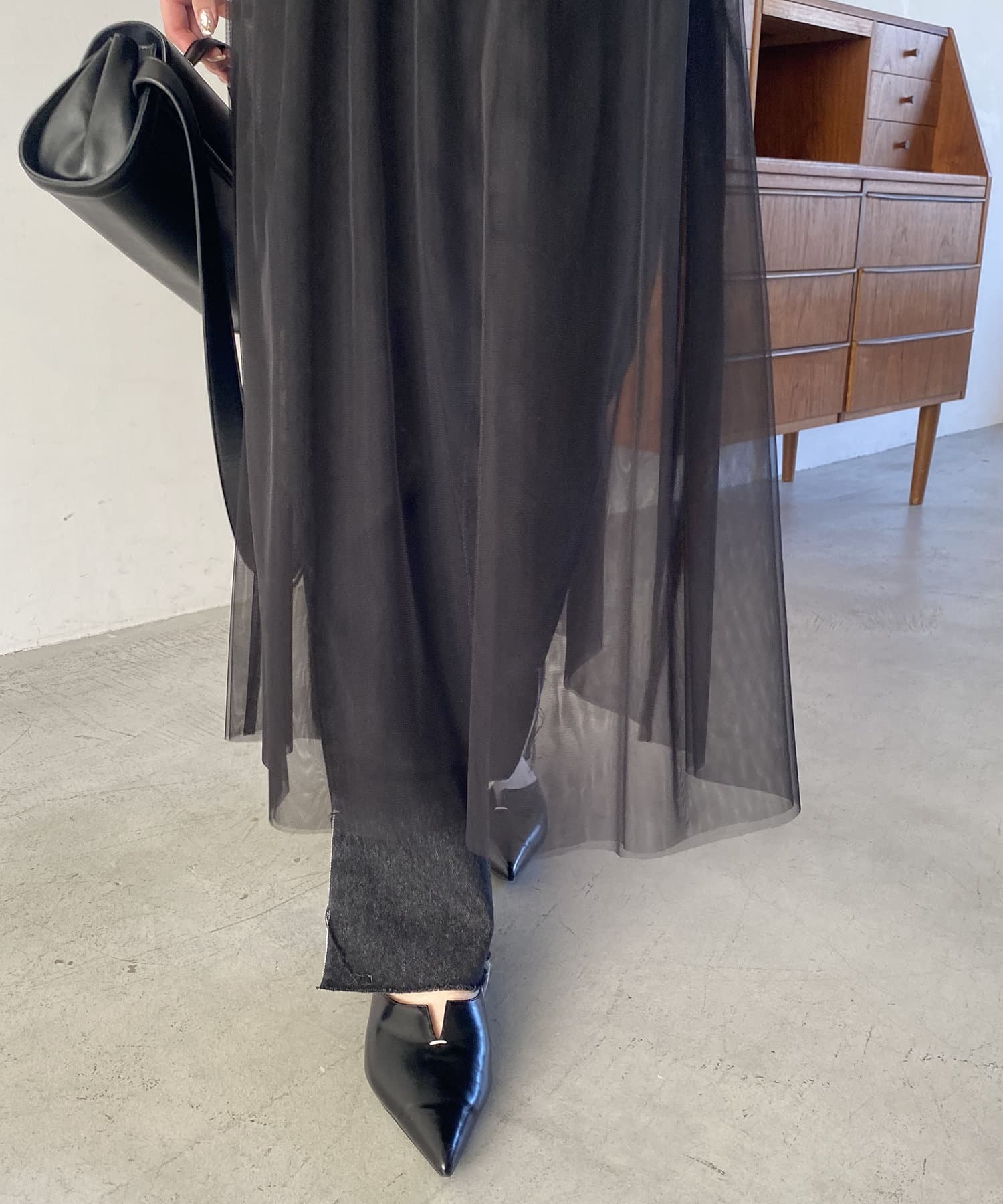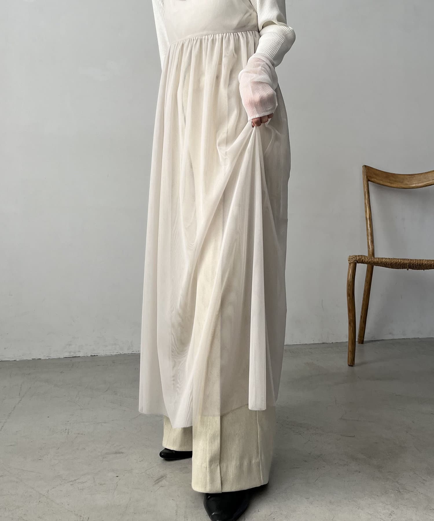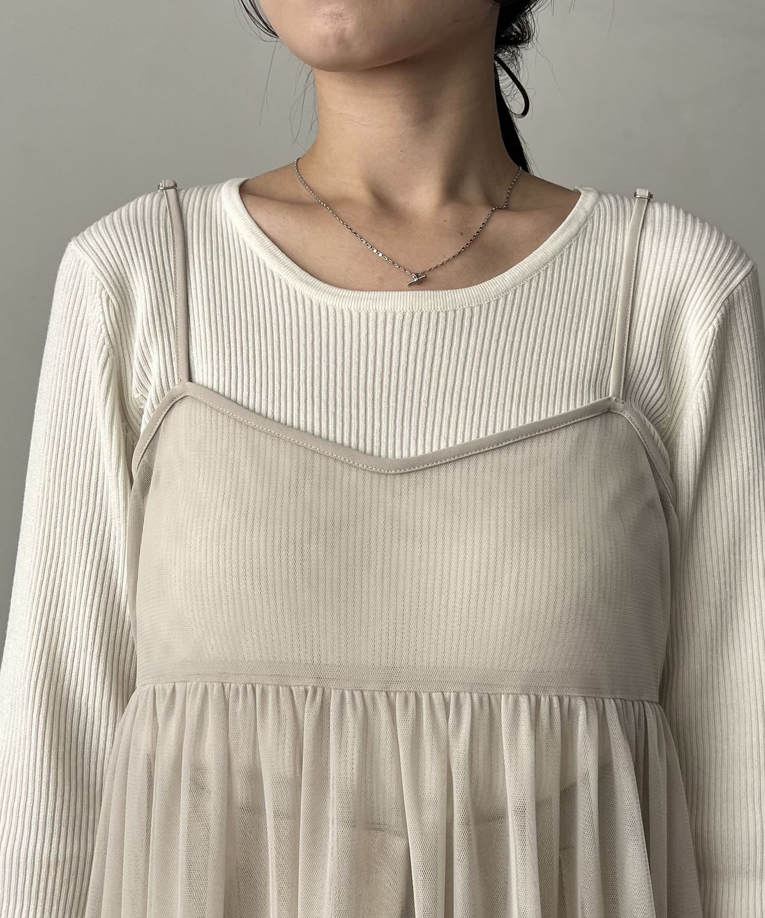 全体に透け感のあるレイヤードを楽しむキャミワンピース