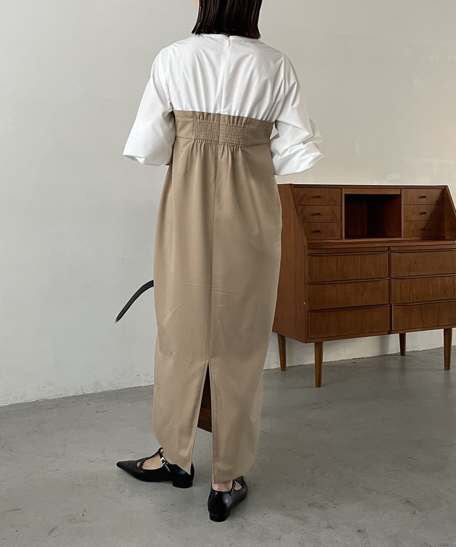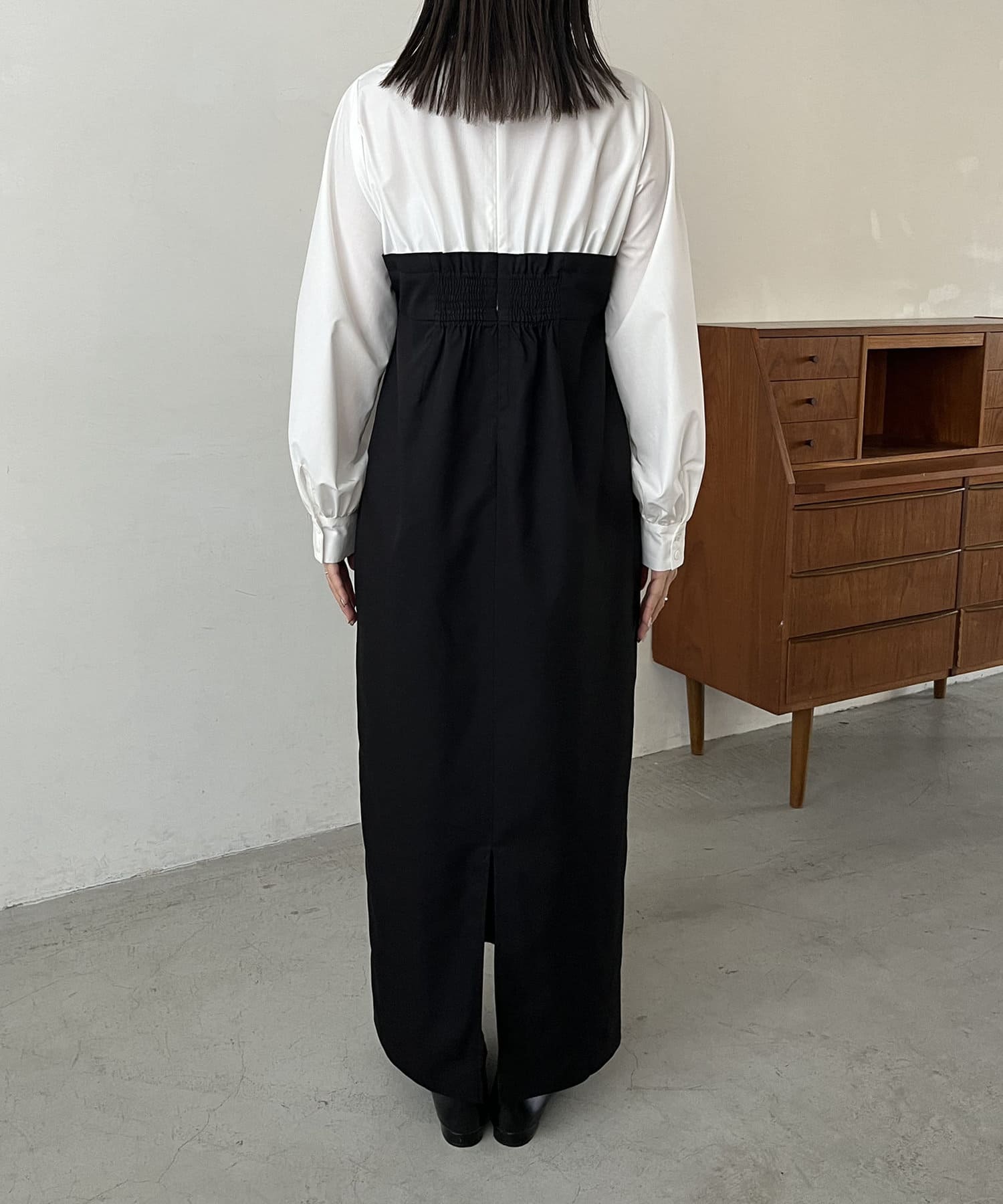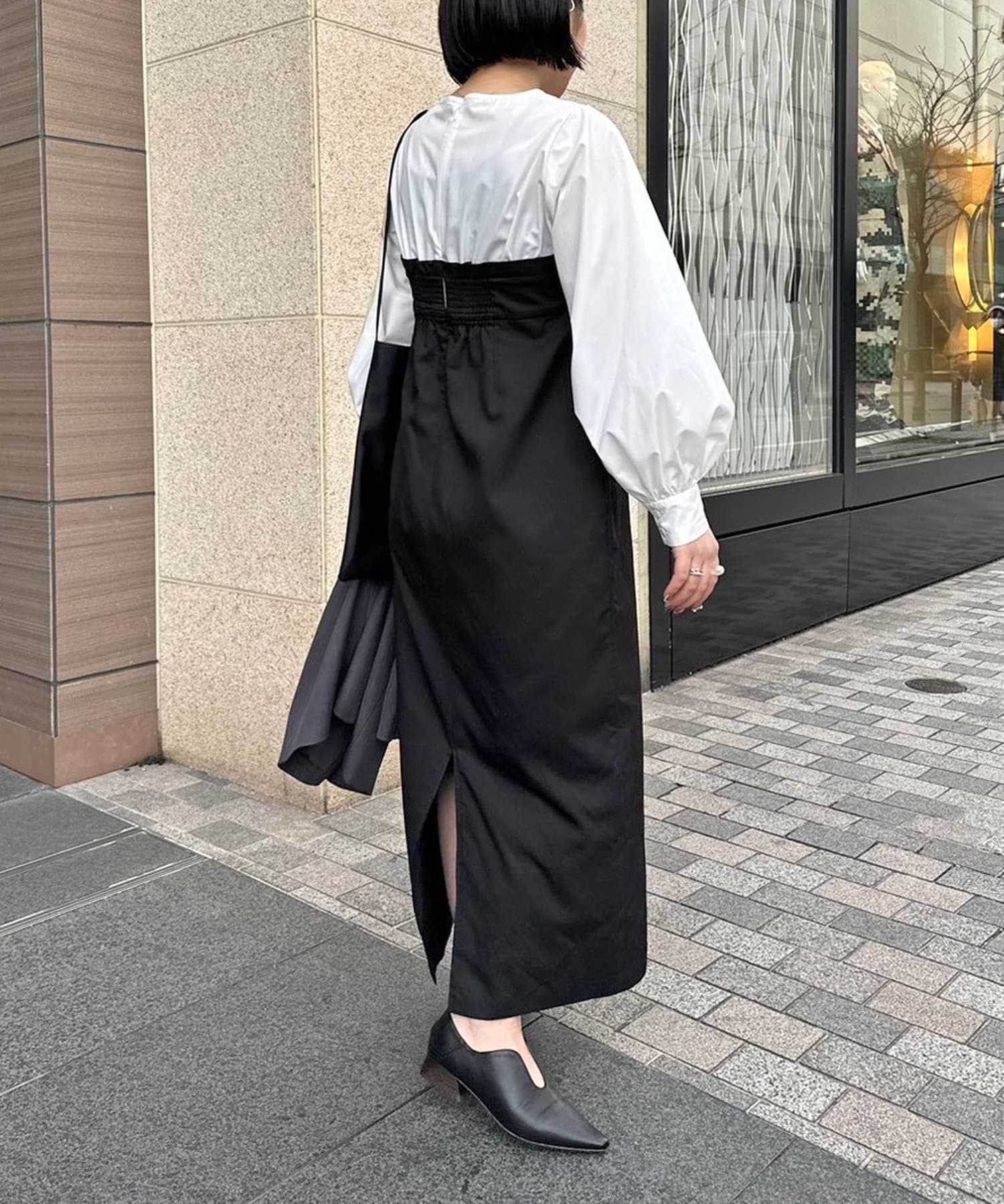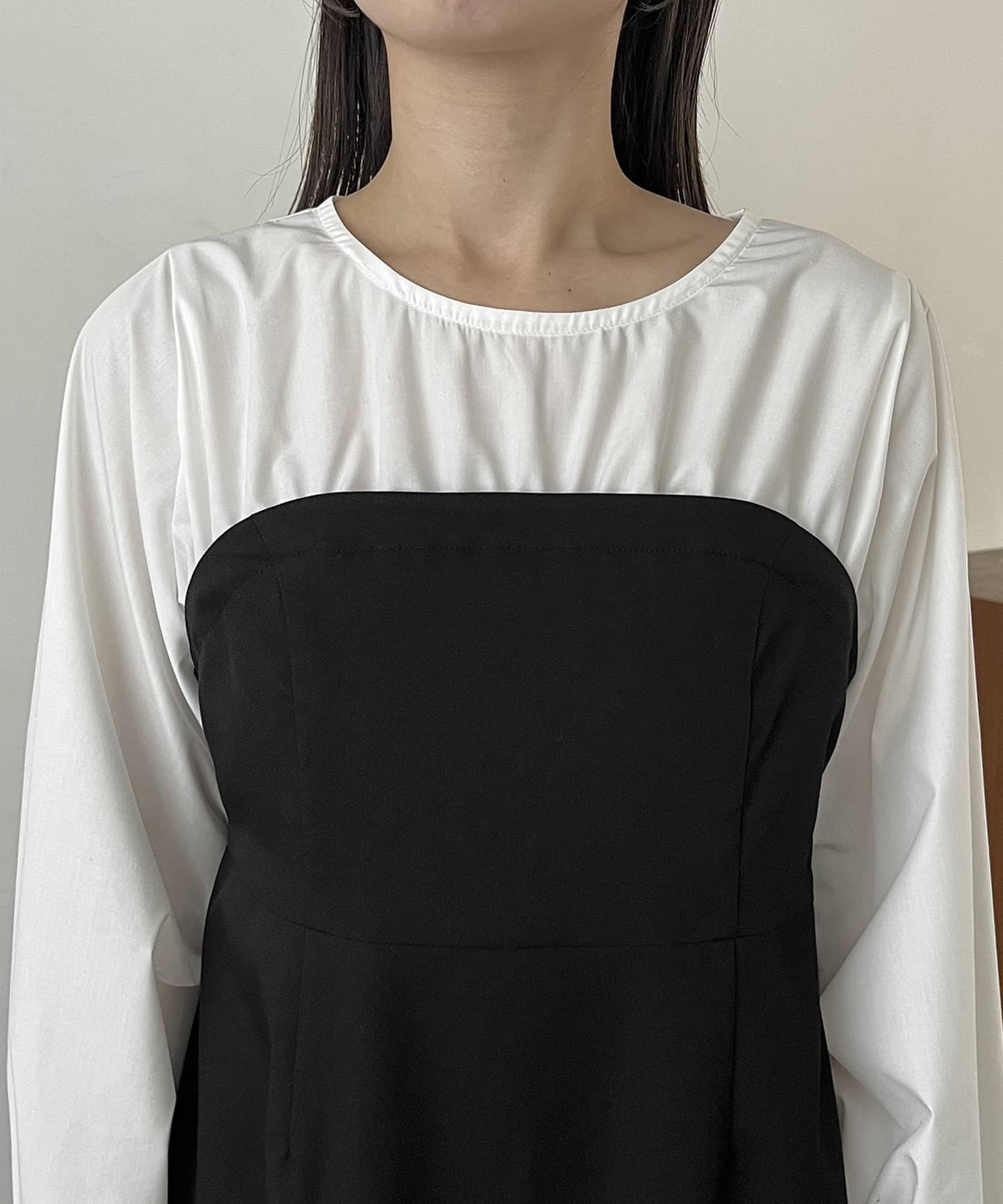 ・シャツ地のブラウスにベアのワンピースをレイヤードしたデザイン