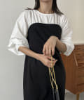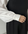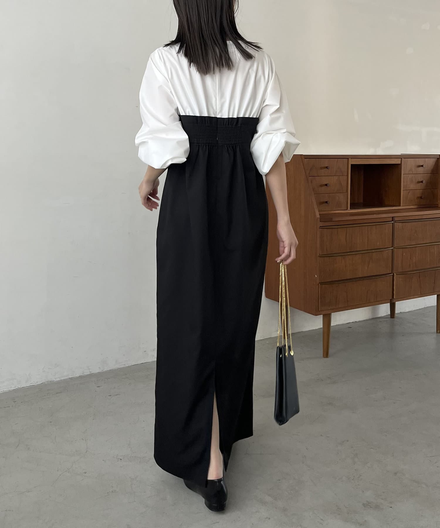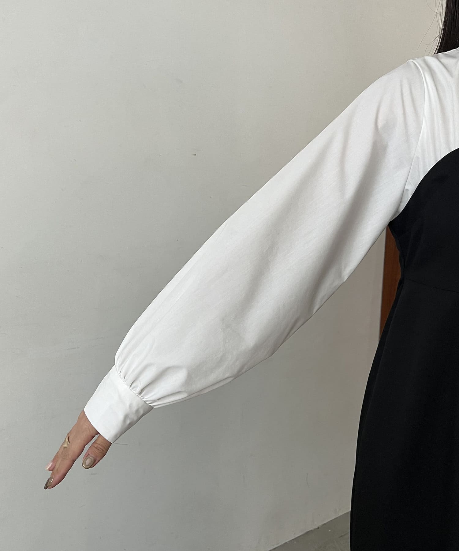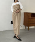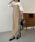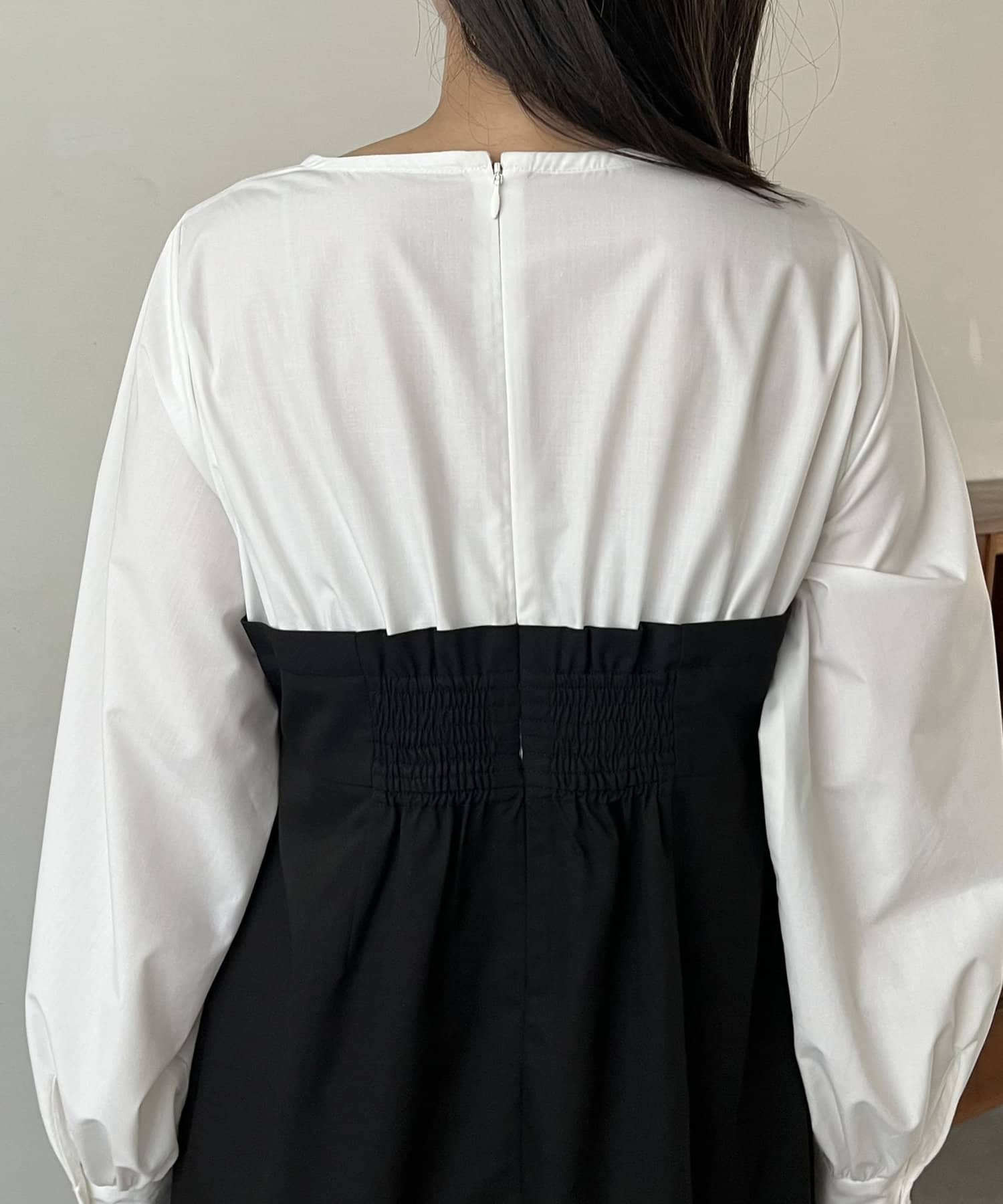 ・シャツ地のブラウスにベアのワンピースをレイヤードしたデザイン