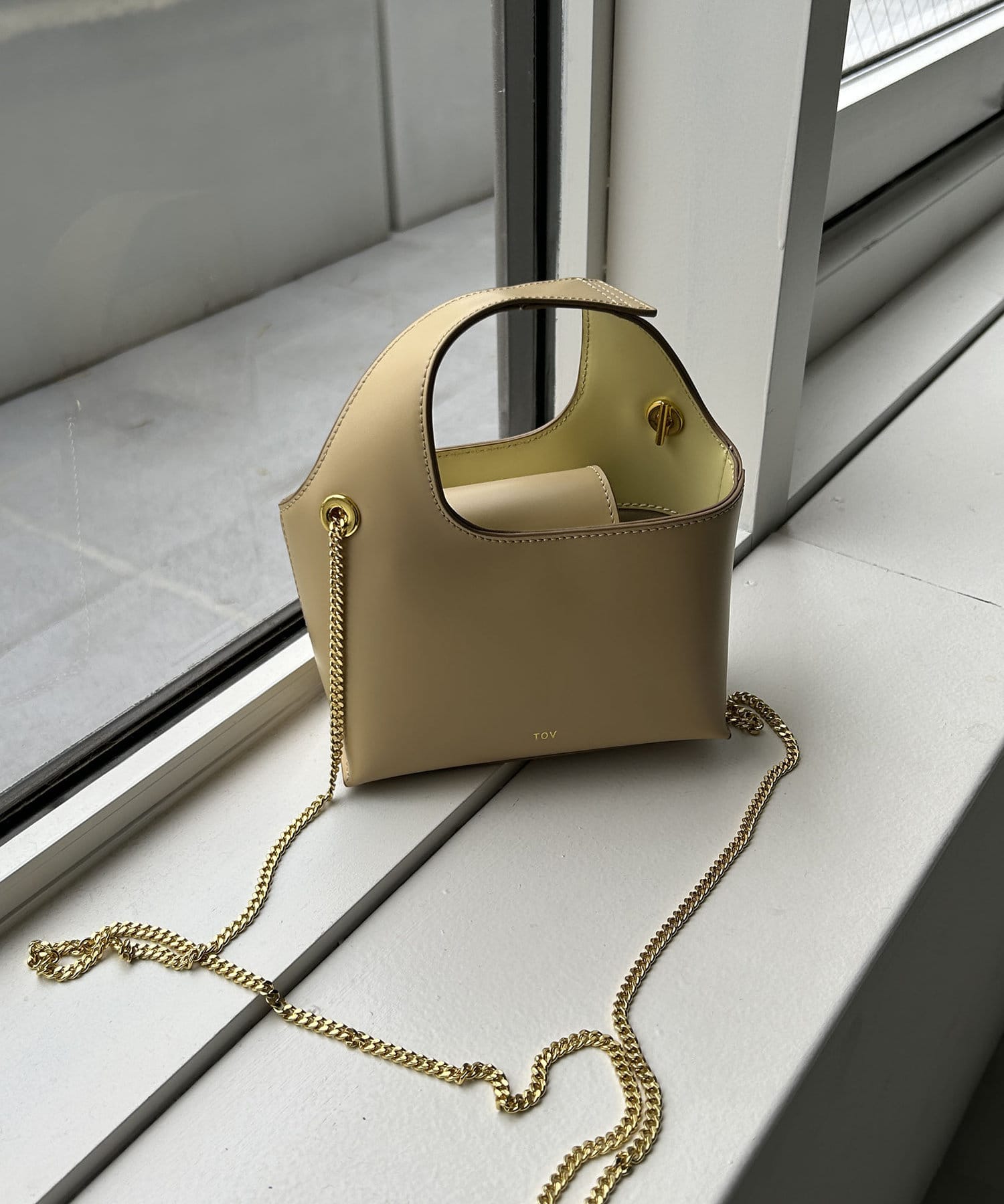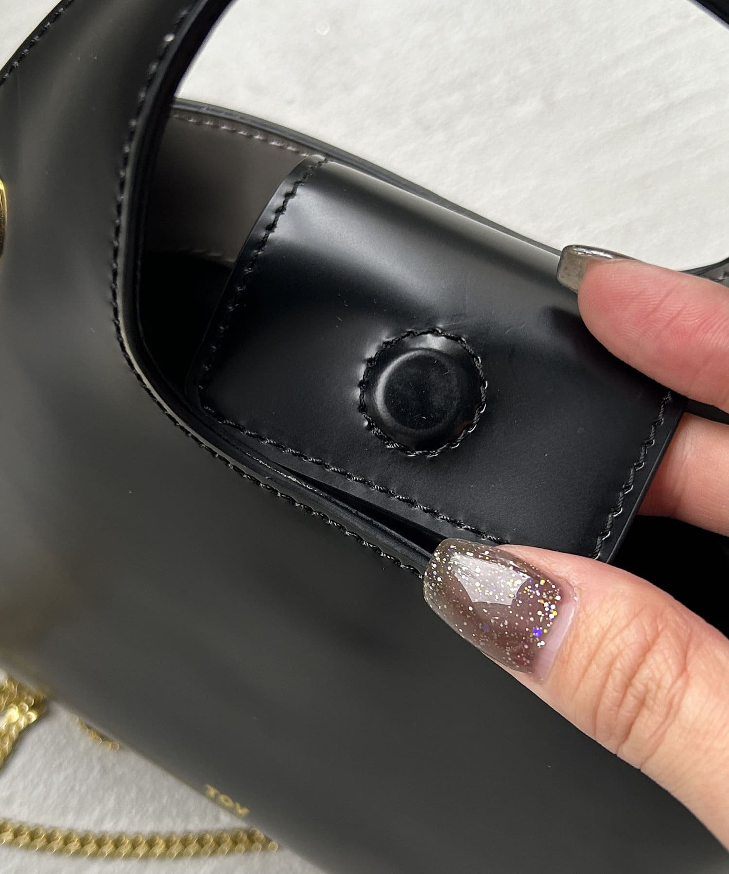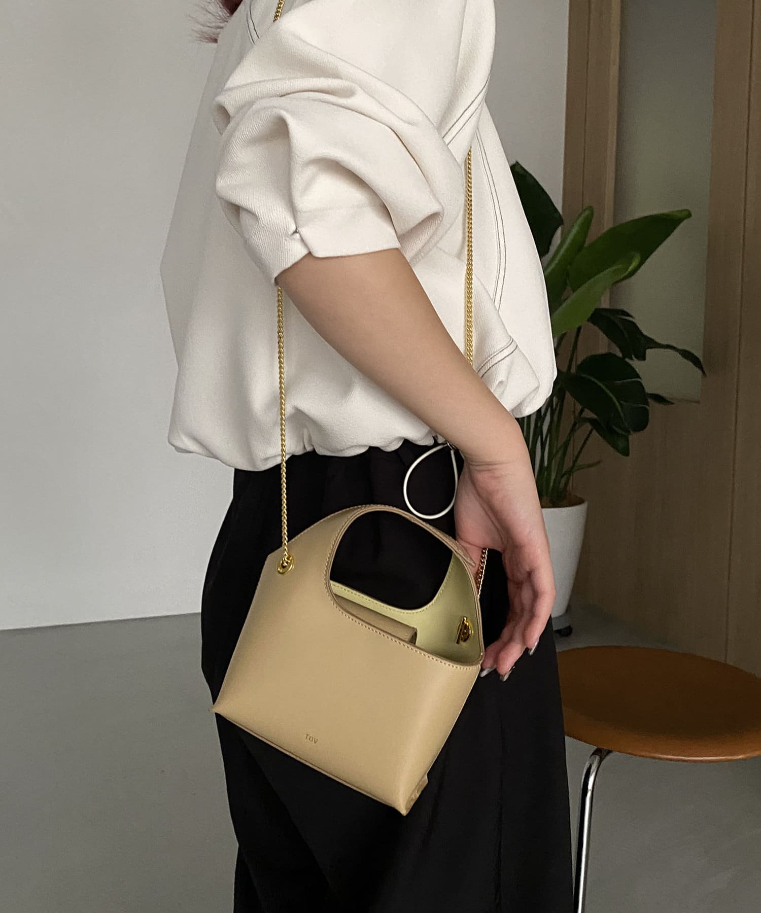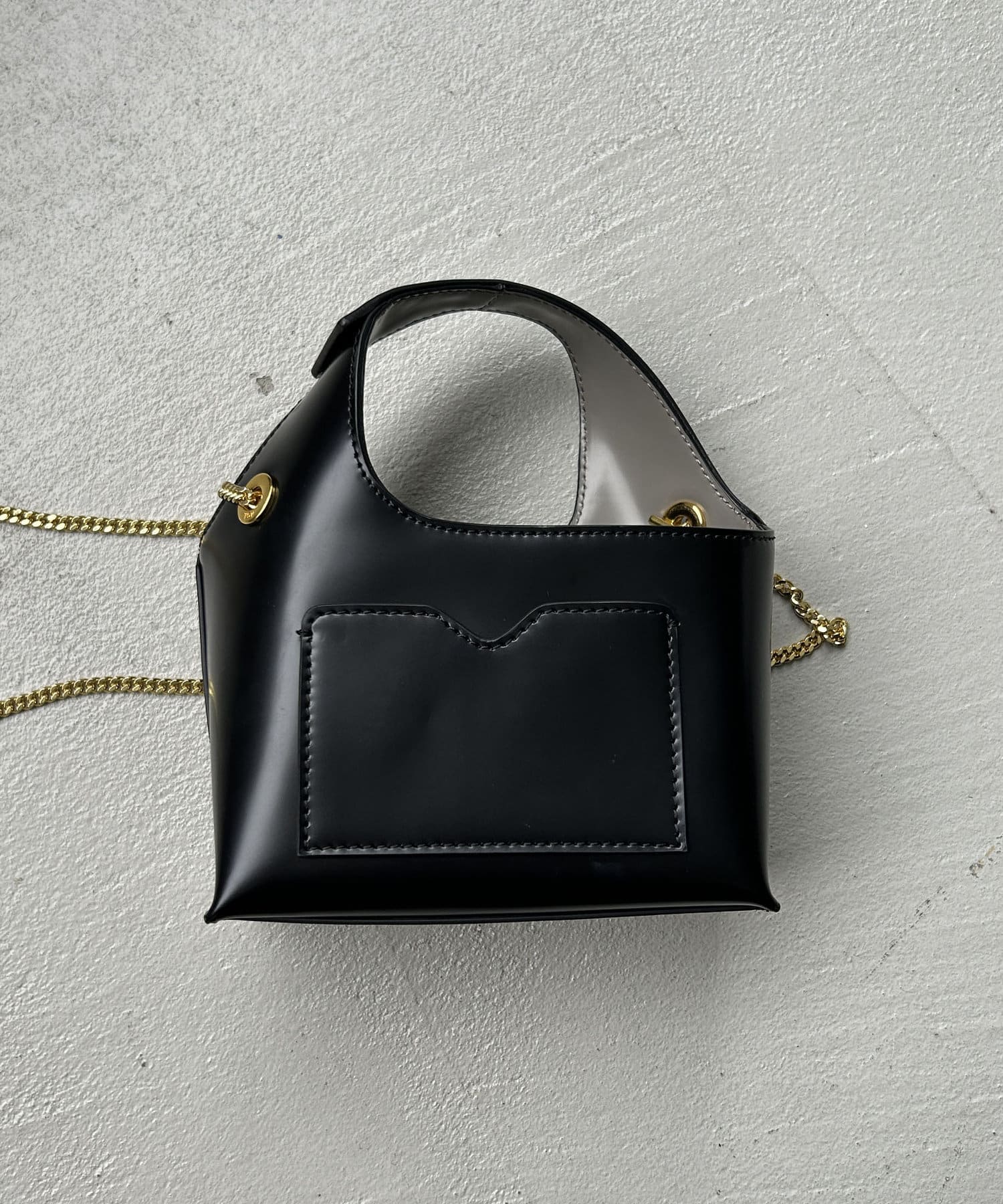 ・表地と裏地がバイカラーなのとチェーンストラップで女性らしさを加えたデザイン
