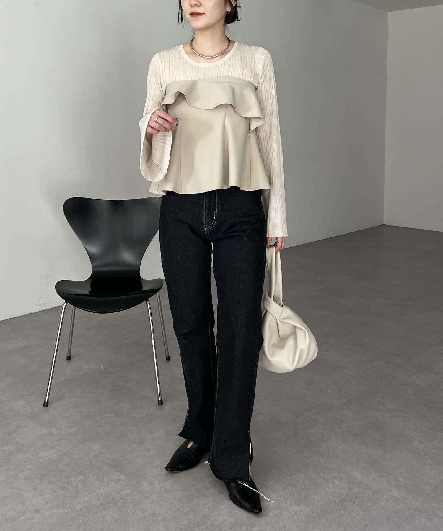 ・立体的なフリルがポイントのビスチェ