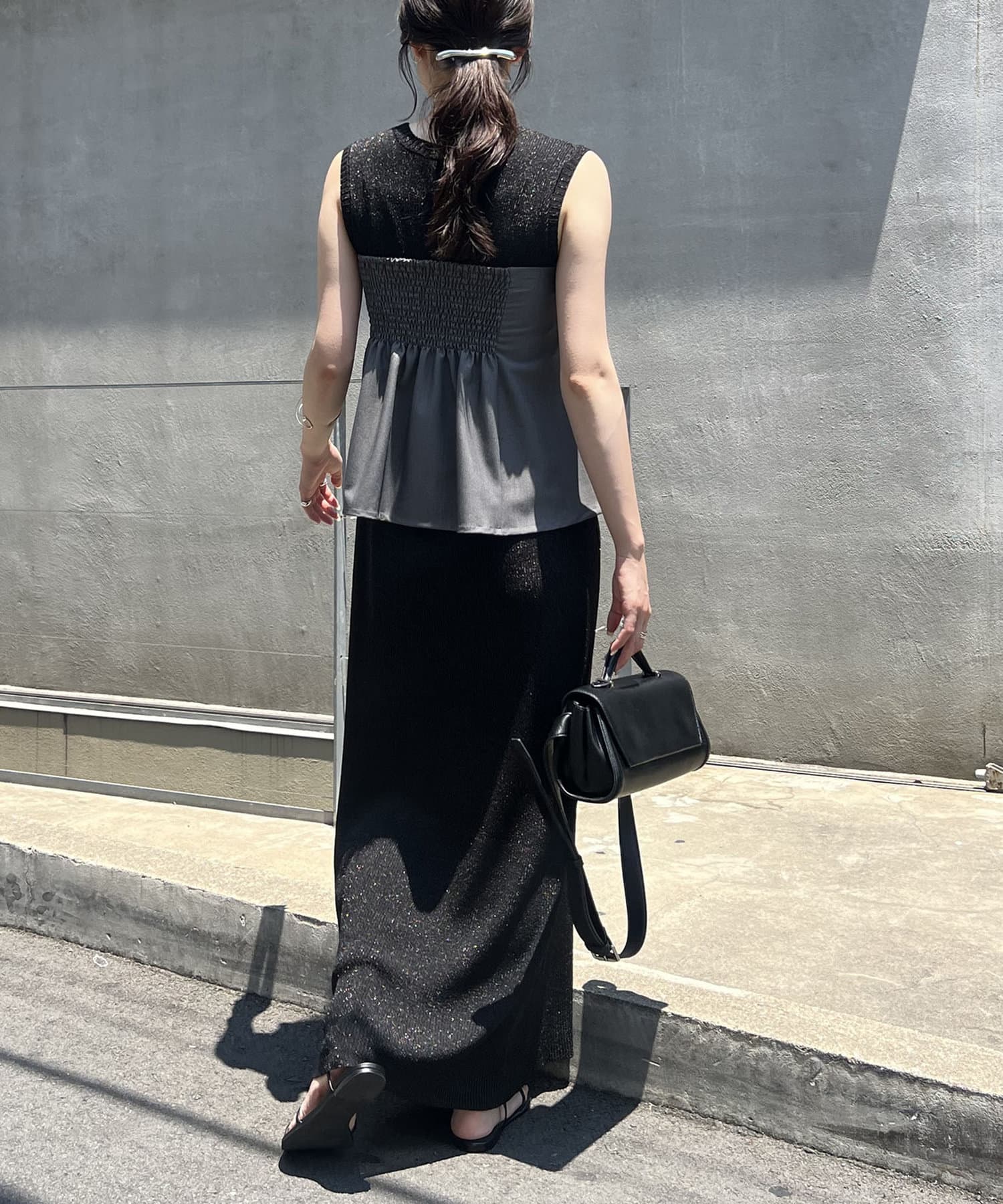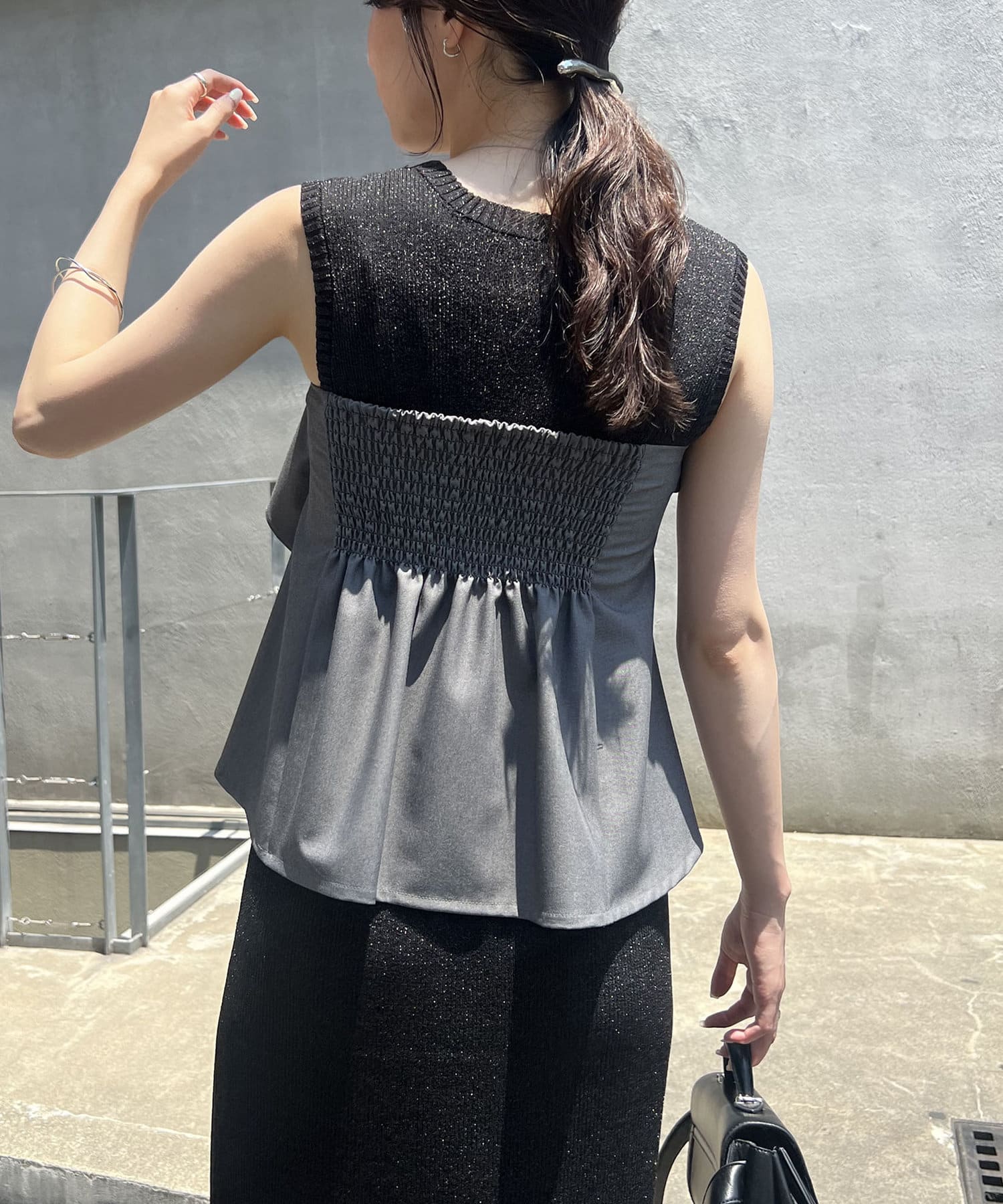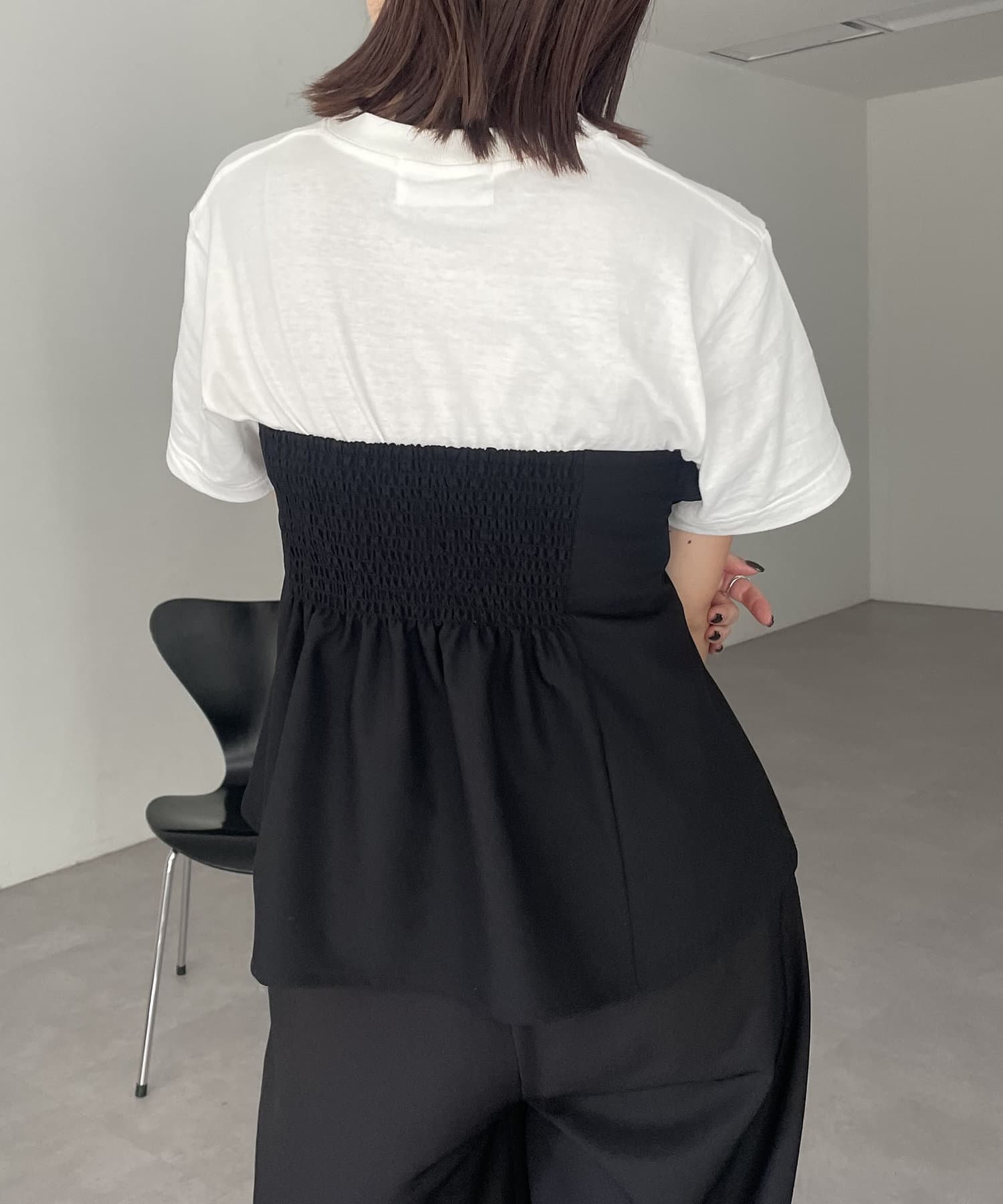 ・後ろは幅広のシャーリングでフィット感あり