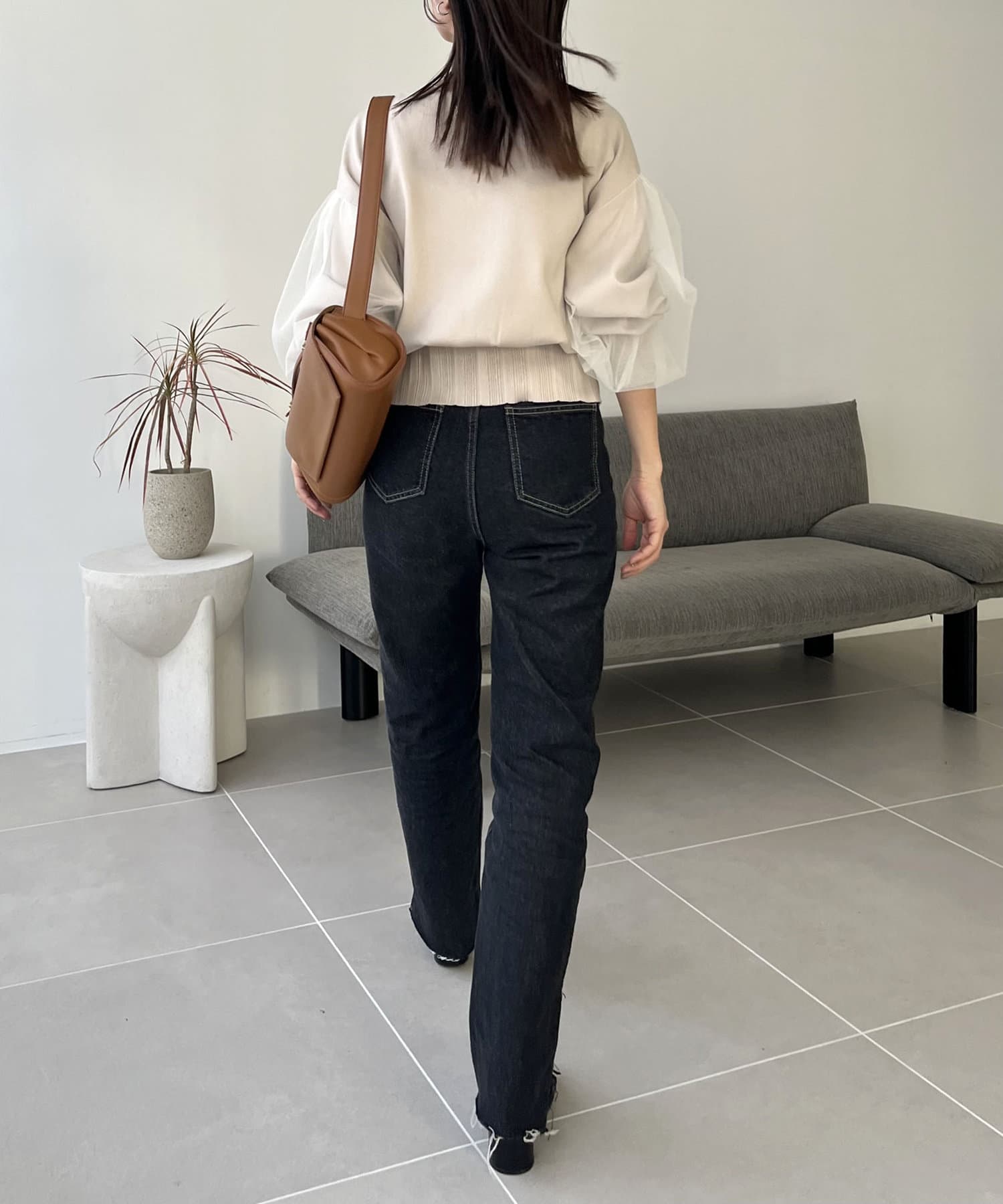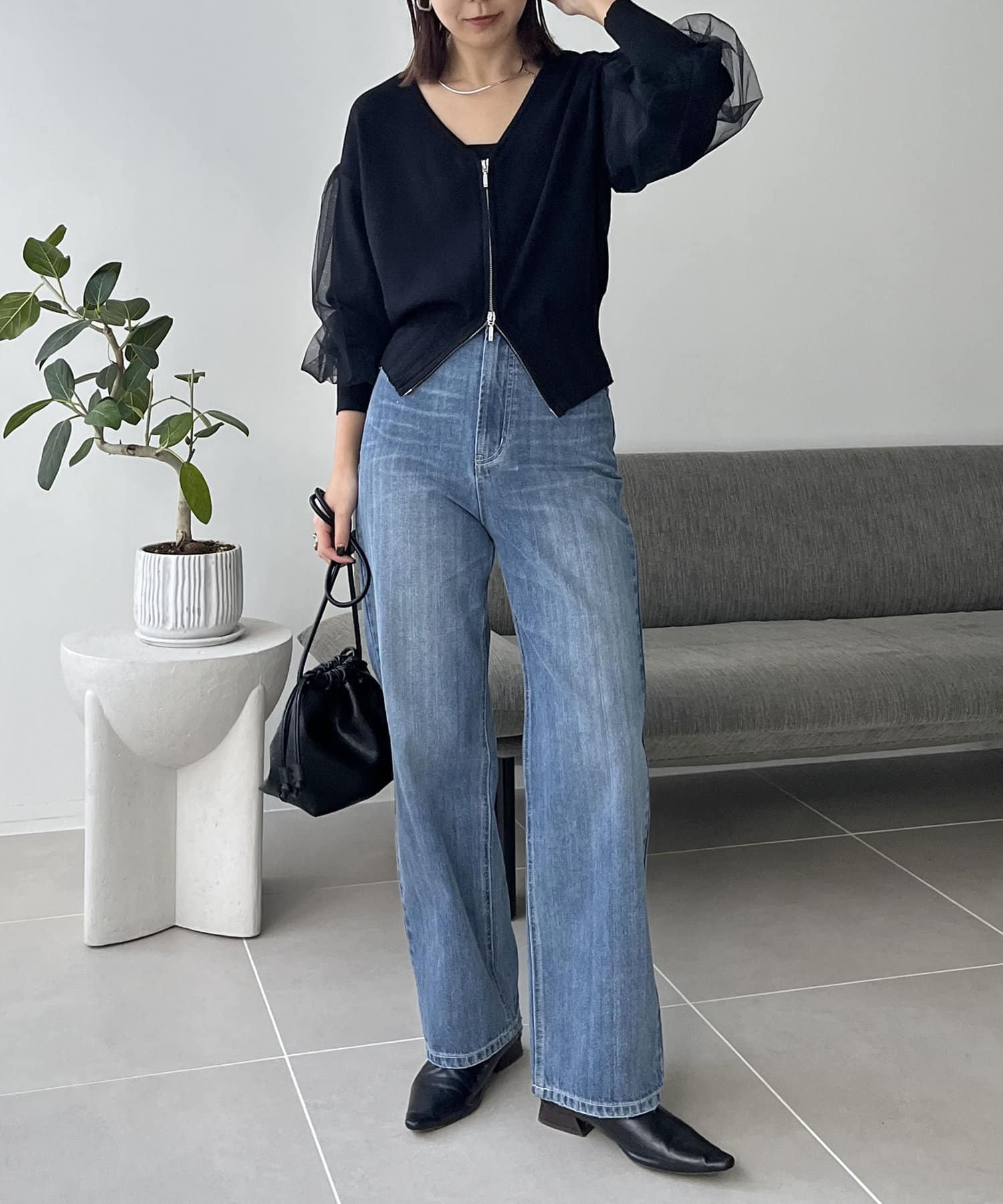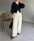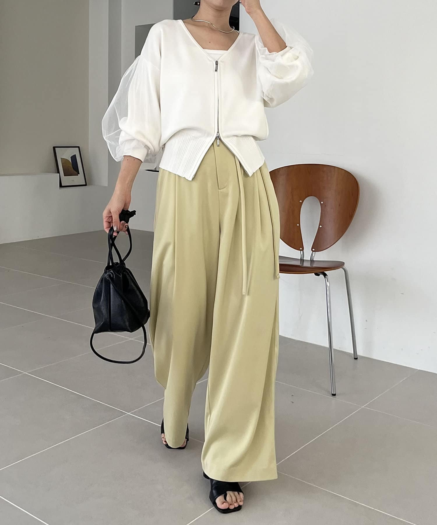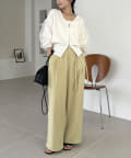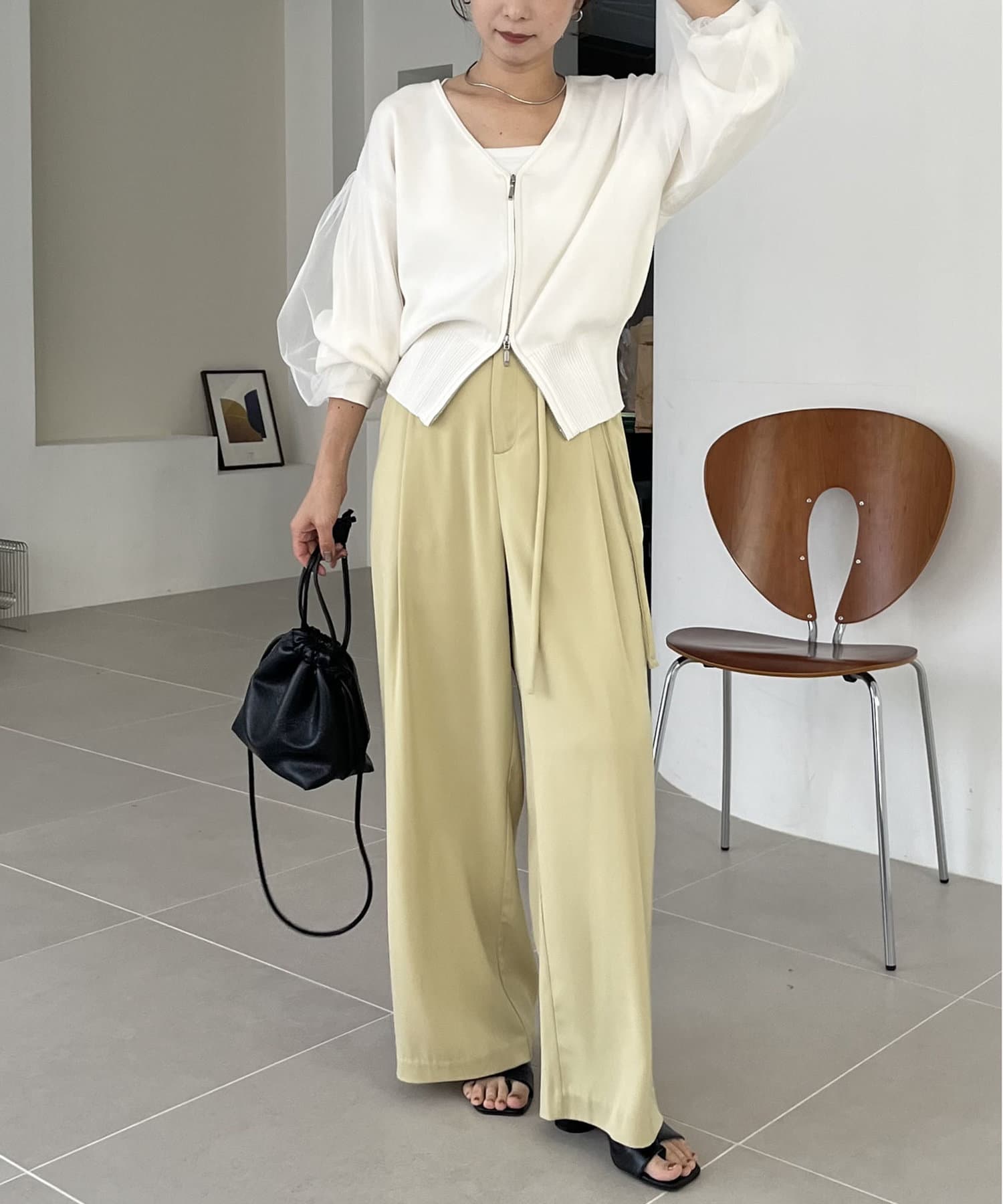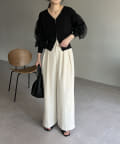 ・ワイドパンツに合わせてメリハリのあるスタイリングに