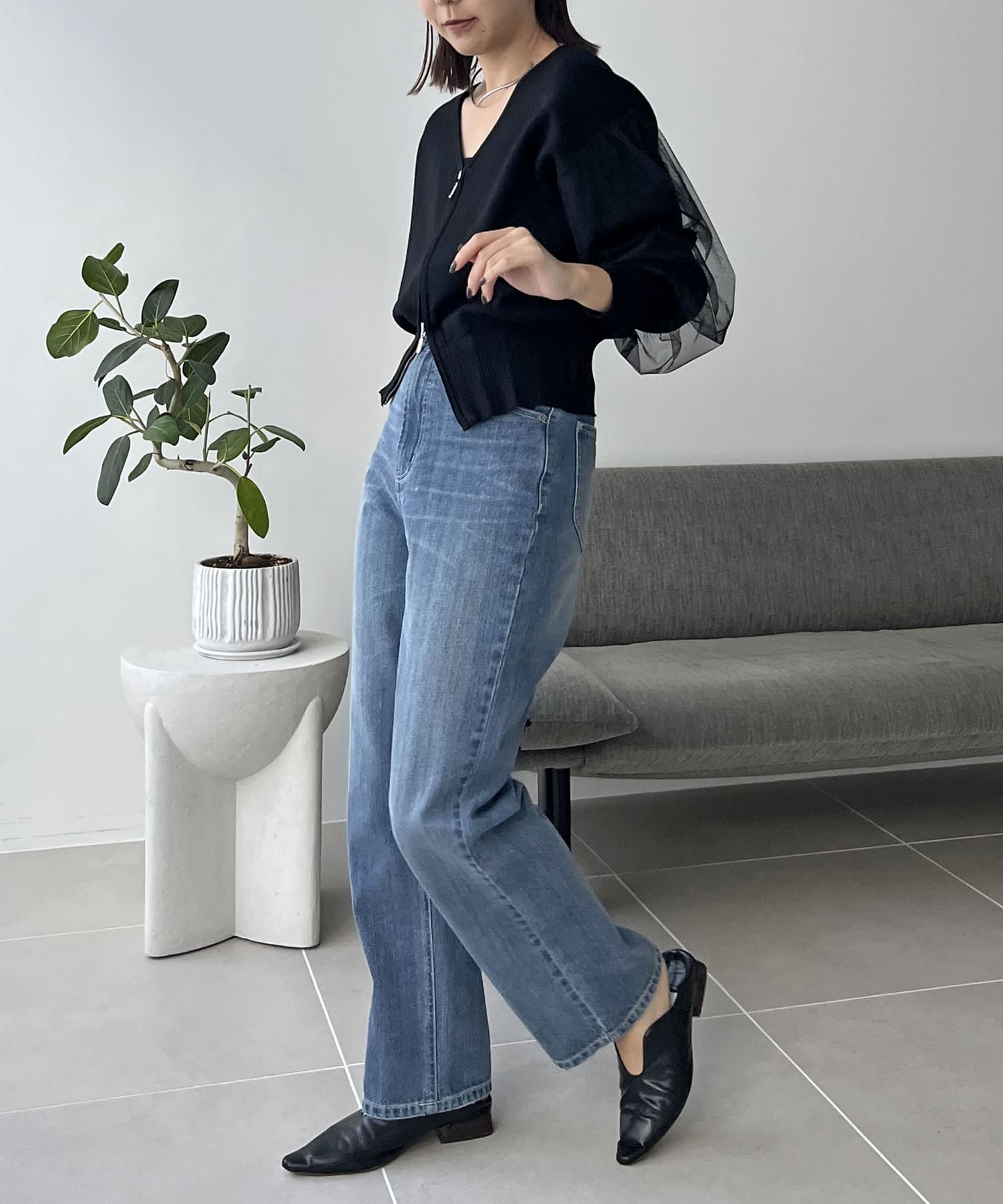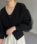 袖にチュールが重なった着映えするカーディガン