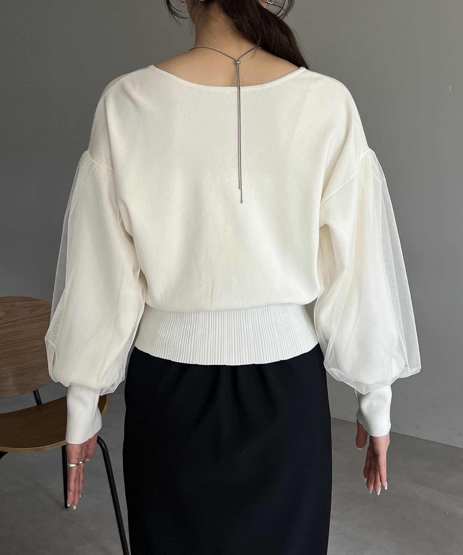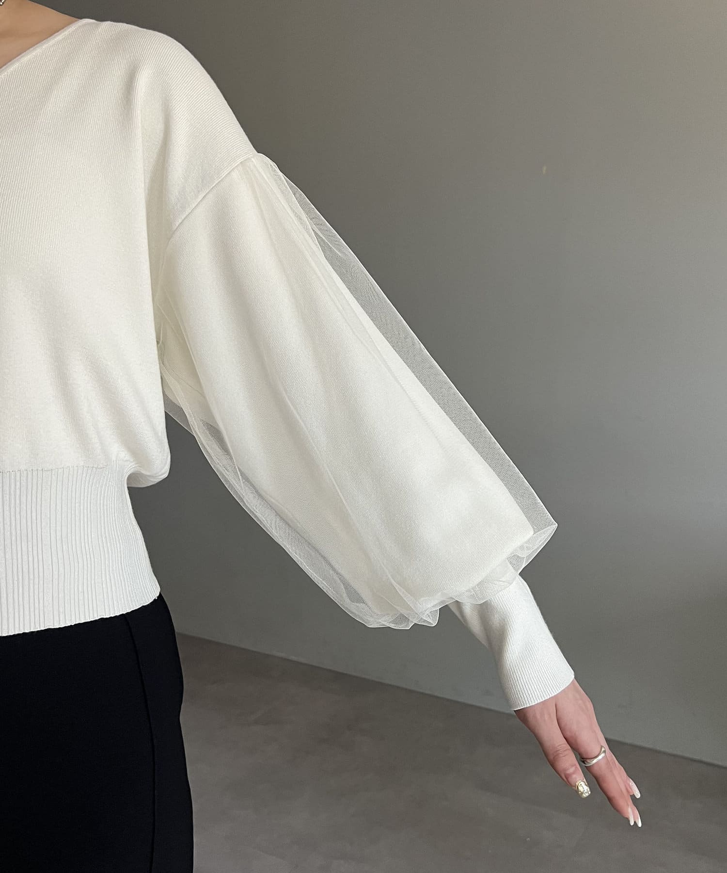 ・袖部分にチュールがレイヤードされた他にはないデザイン