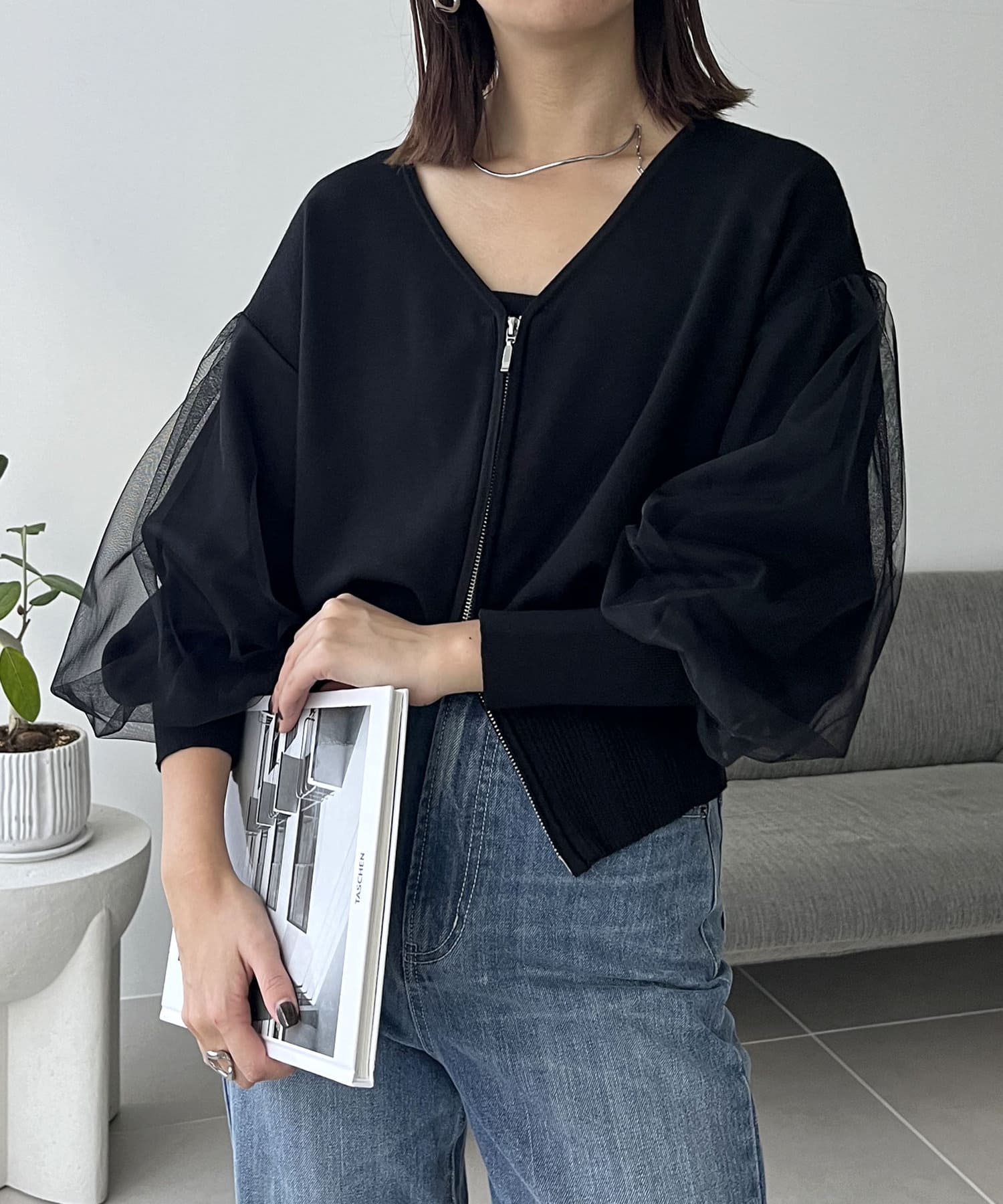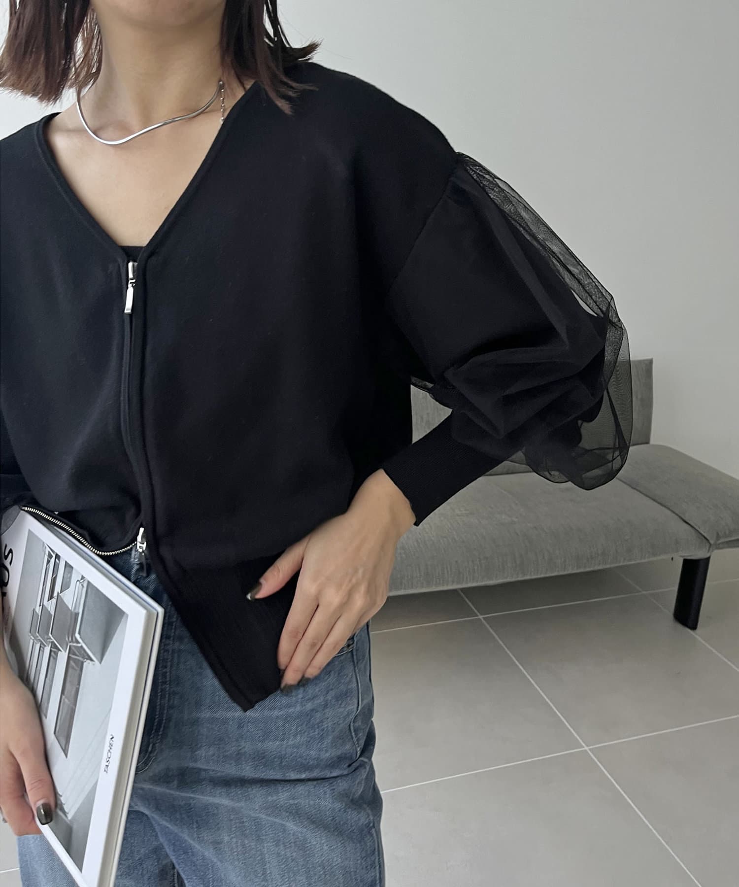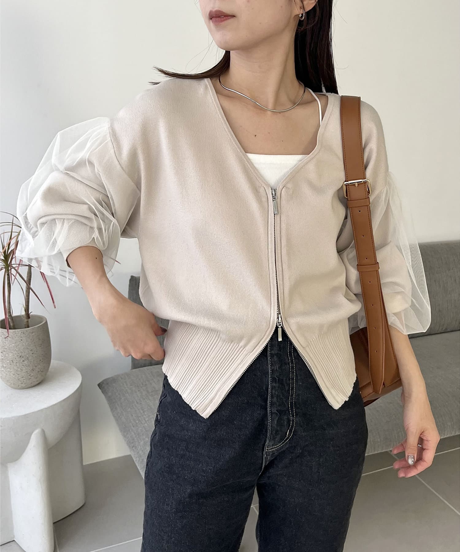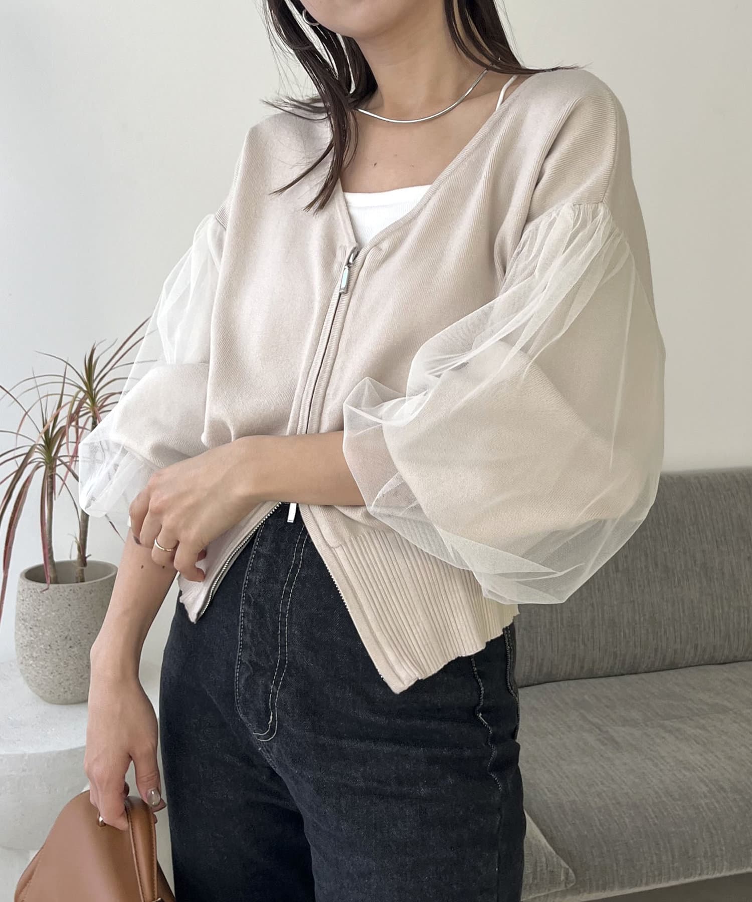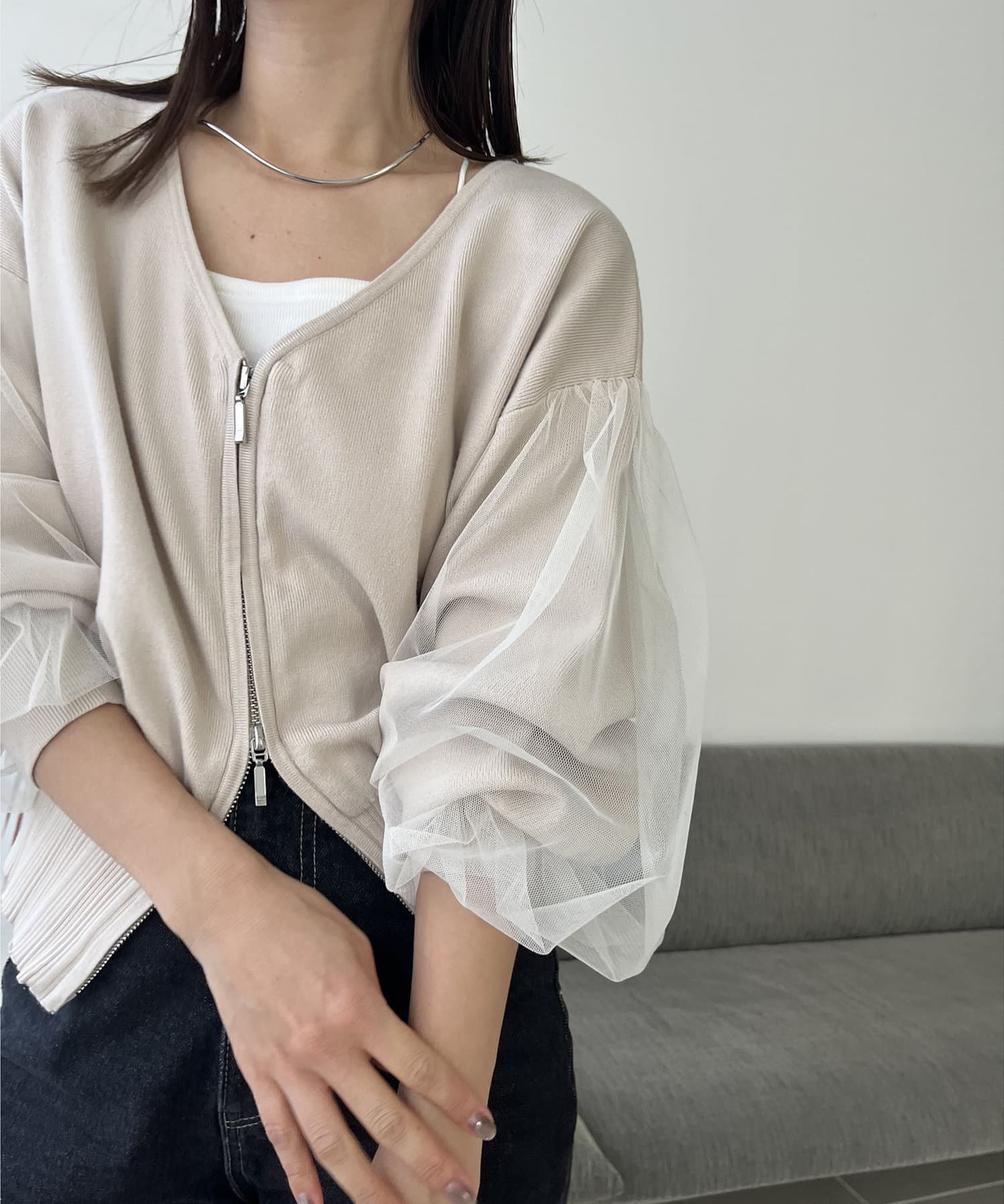チュールZIPカーディガン