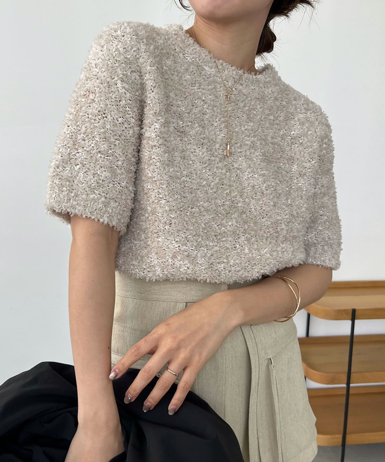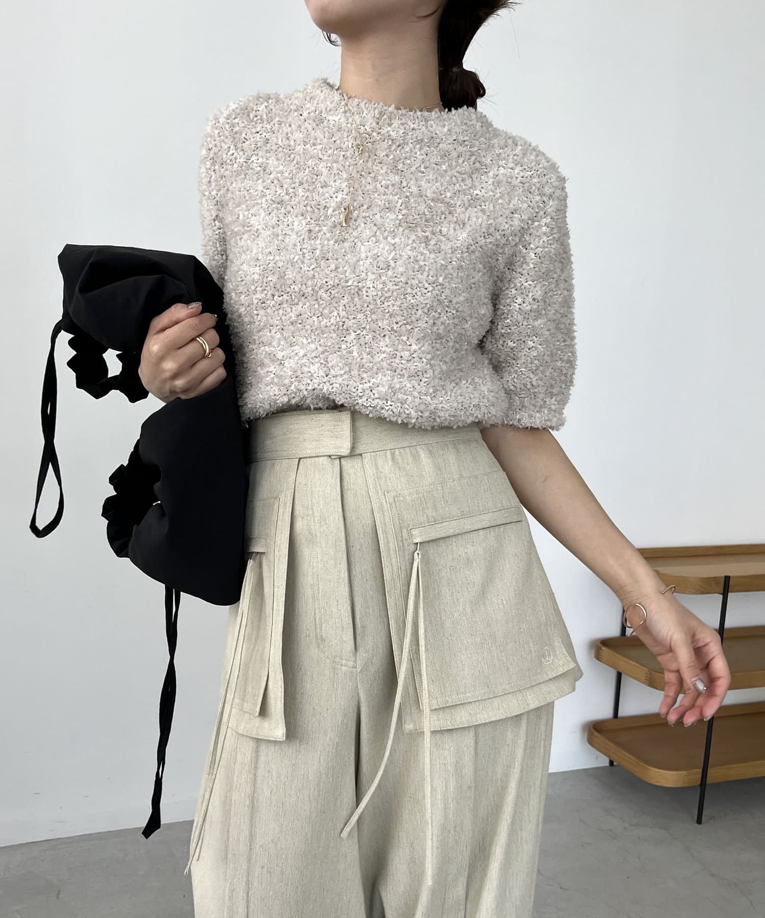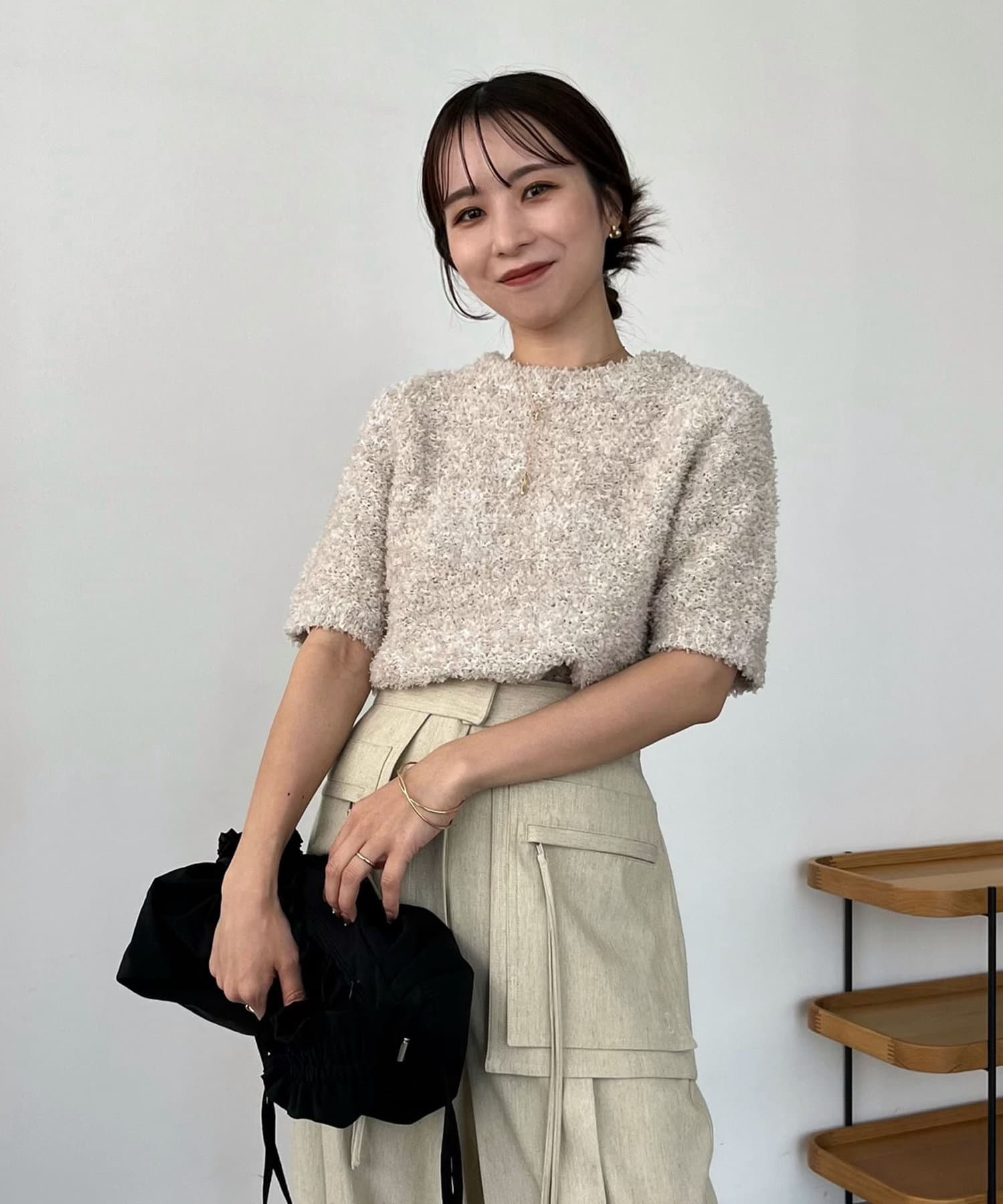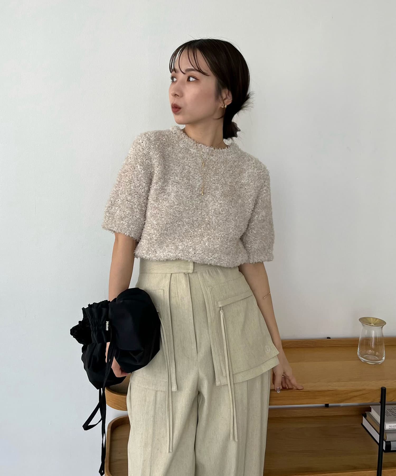 【shio&yuzuコラボ企画】リボンヤーンハーフスリーブプルオーバー