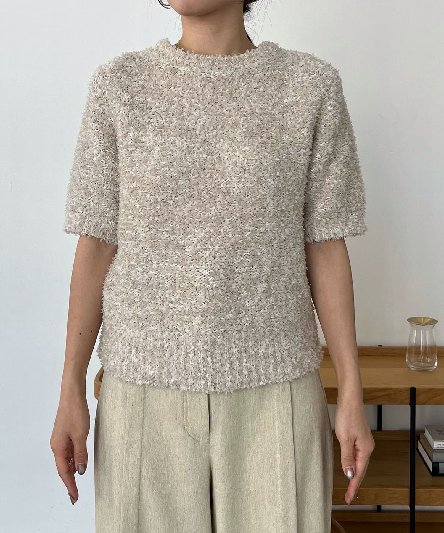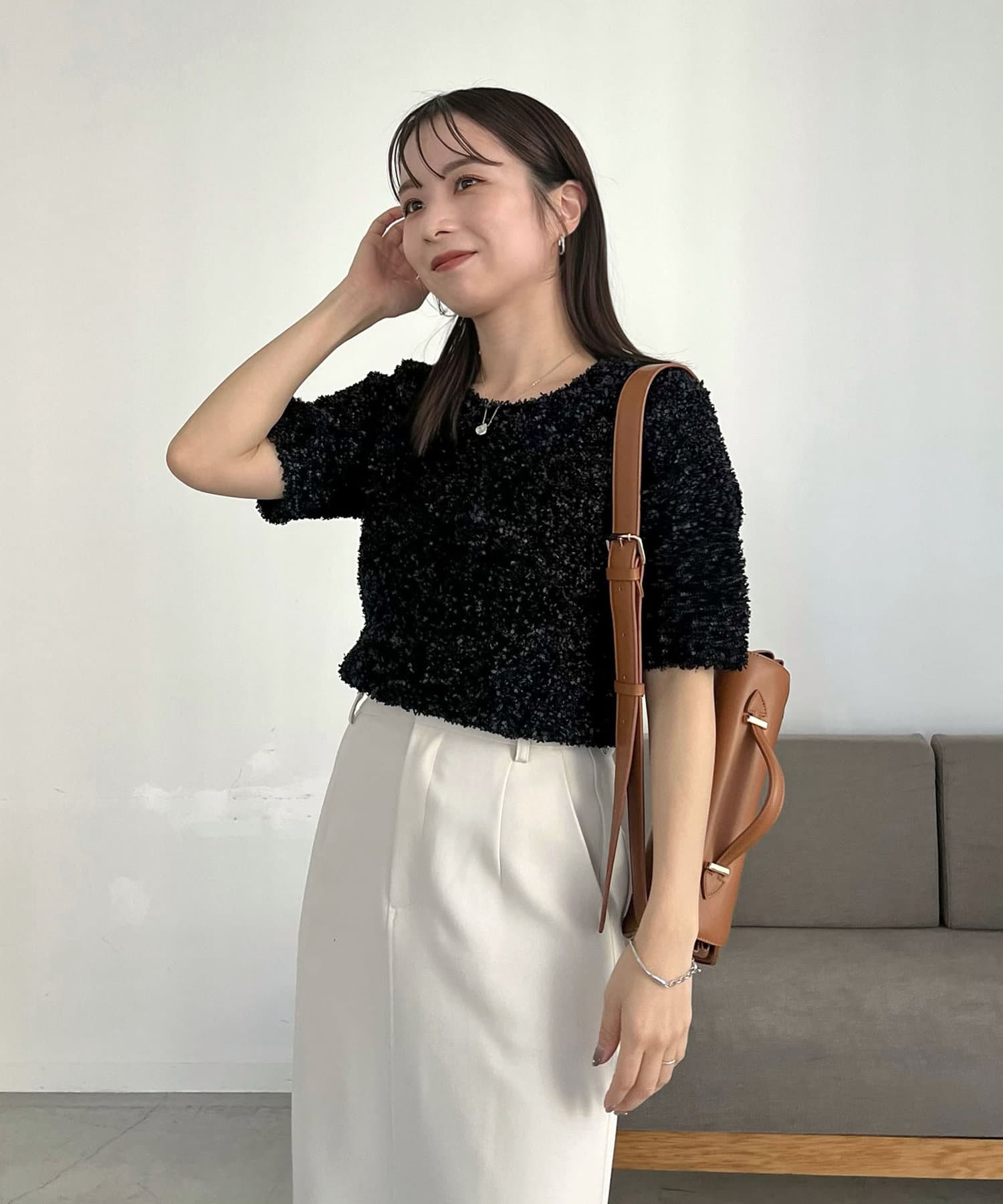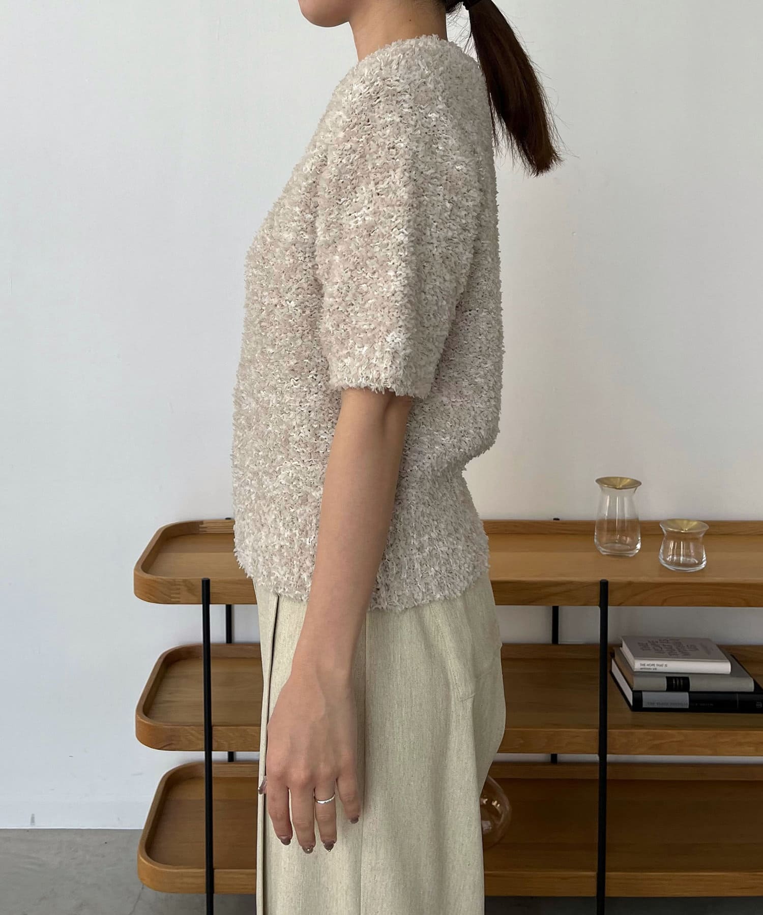 【shio&yuzuコラボ企画】リボンヤーンハーフスリーブプルオーバー