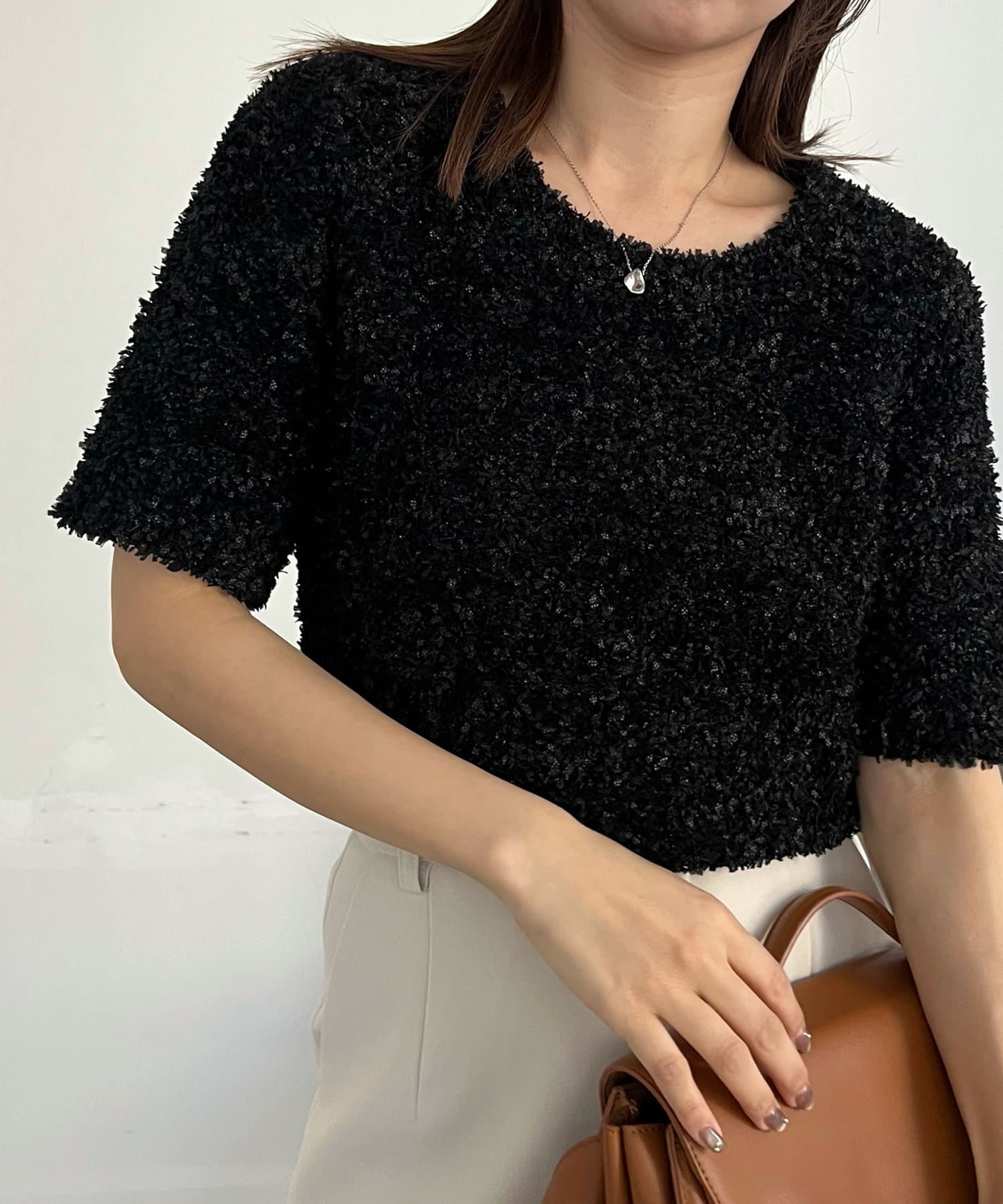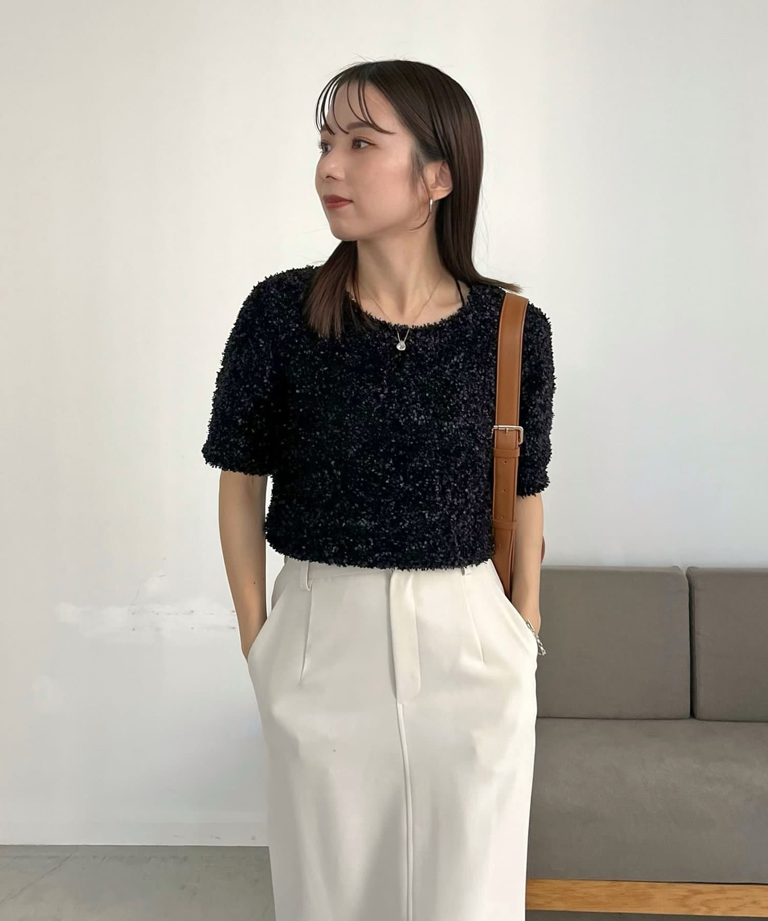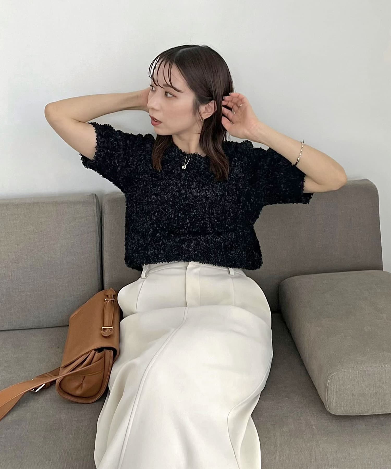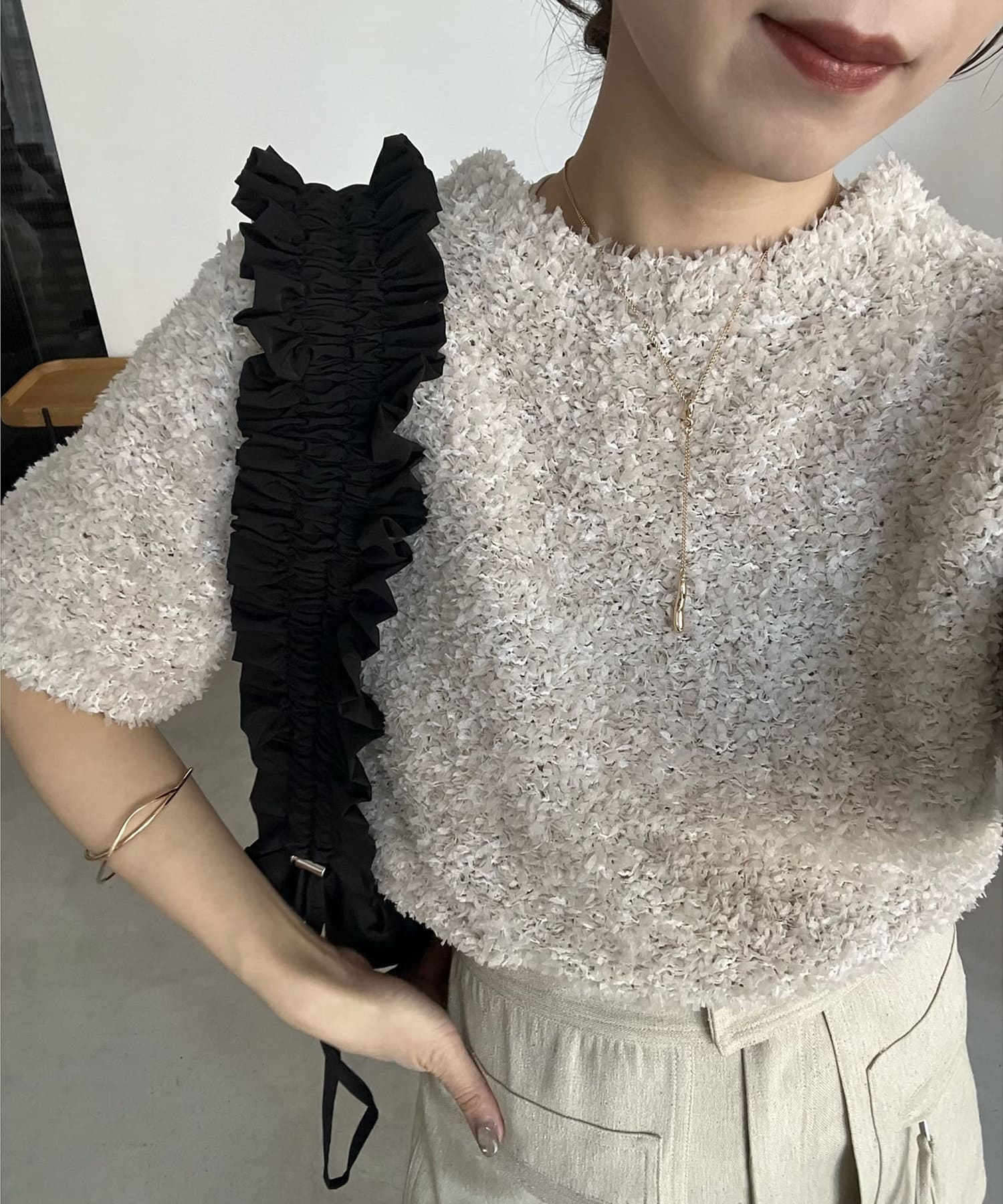 【shio&yuzuコラボ企画】リボンヤーンハーフスリーブプルオーバー