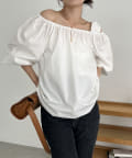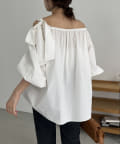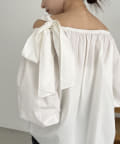 片側にトレンドのリボンストラップが付いたデザイン性のあるブラウス