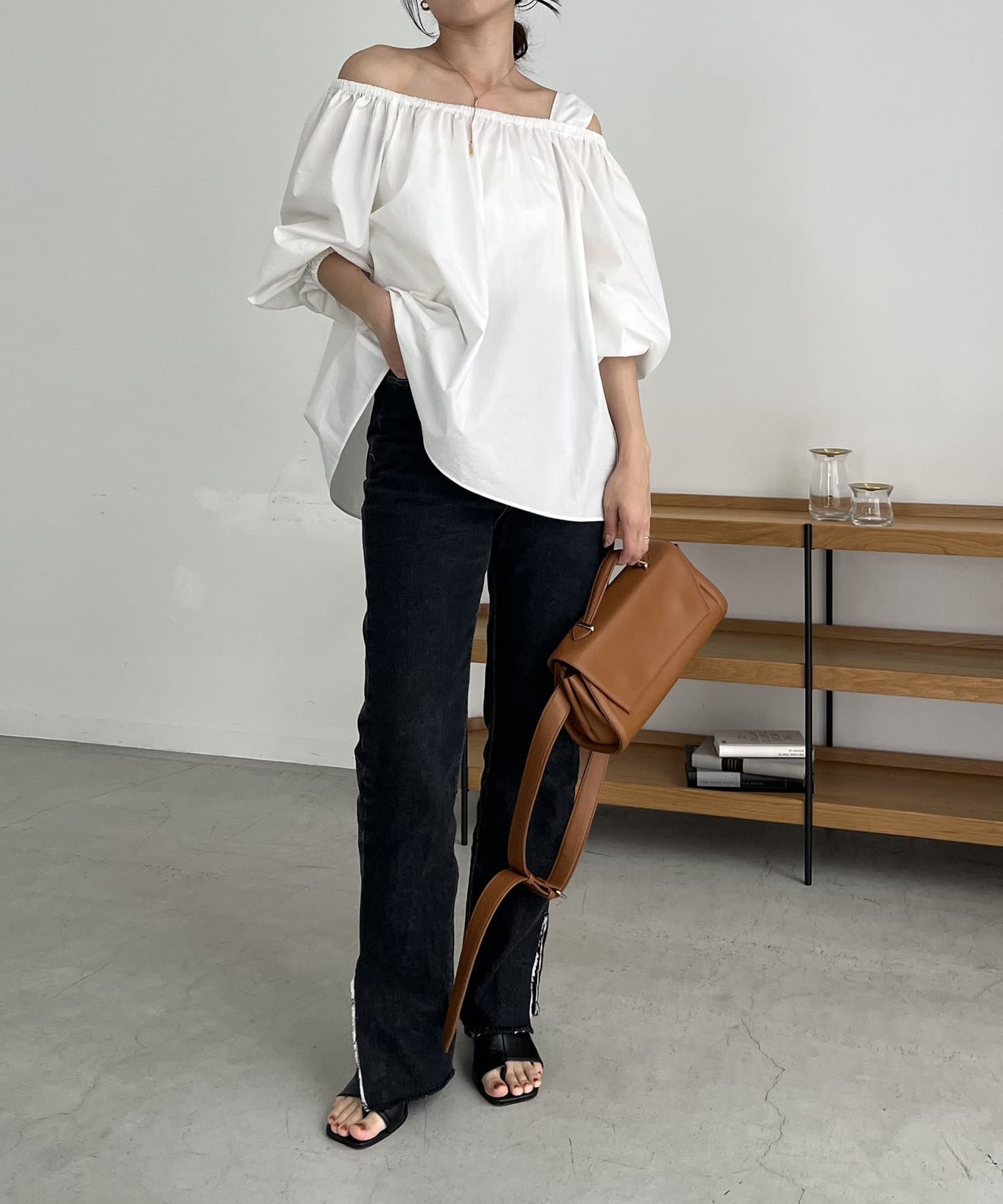 ・首回りがゴムになっており、ワンショルやオフショルとしても着られる