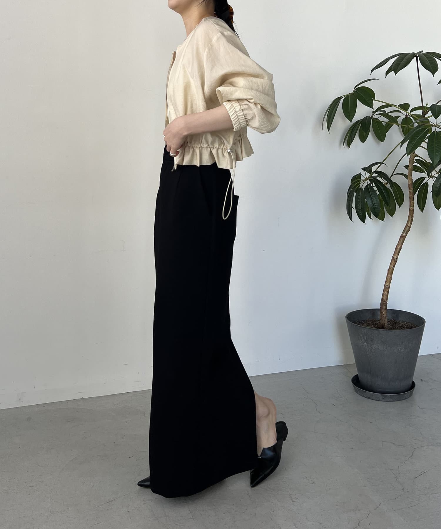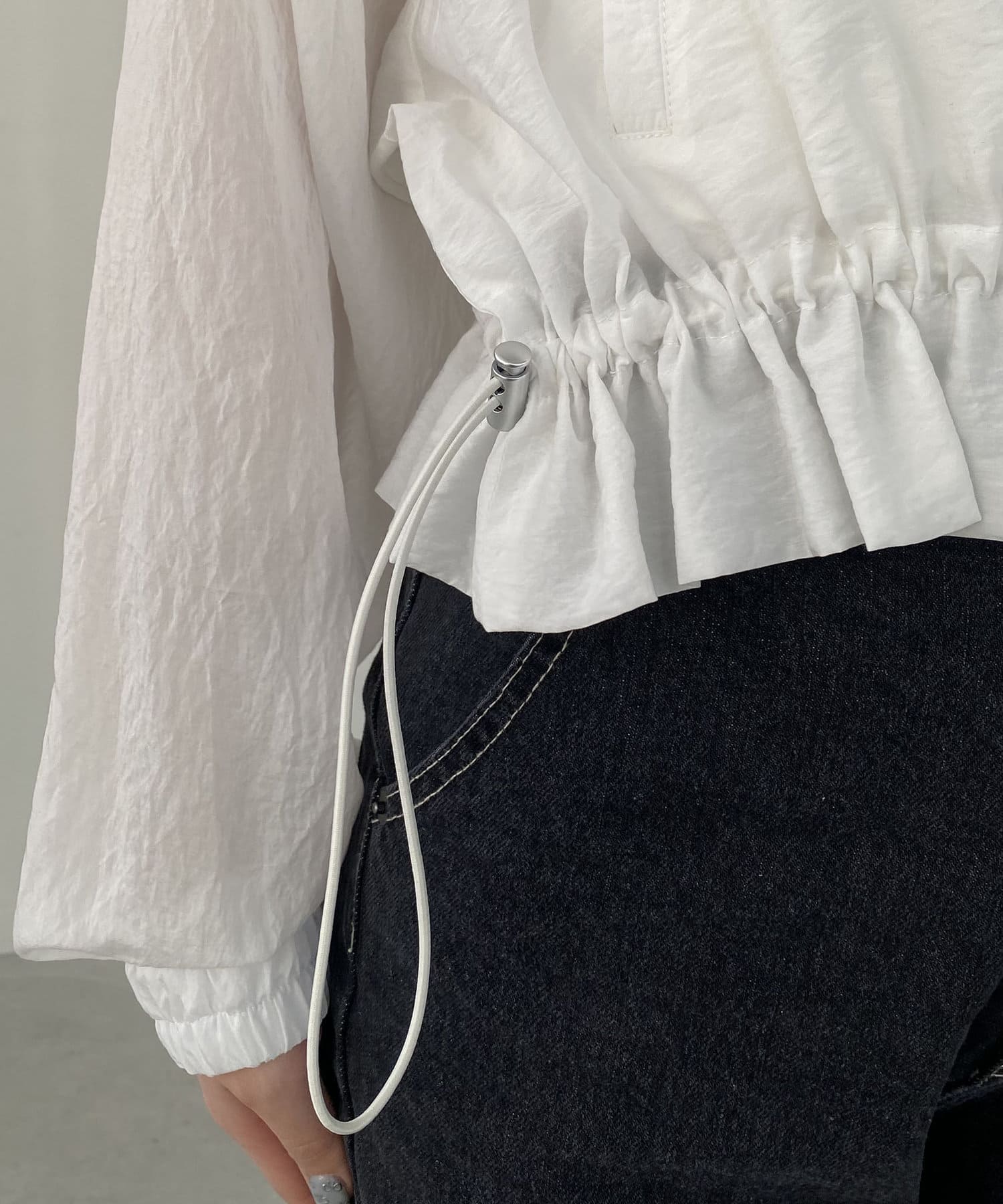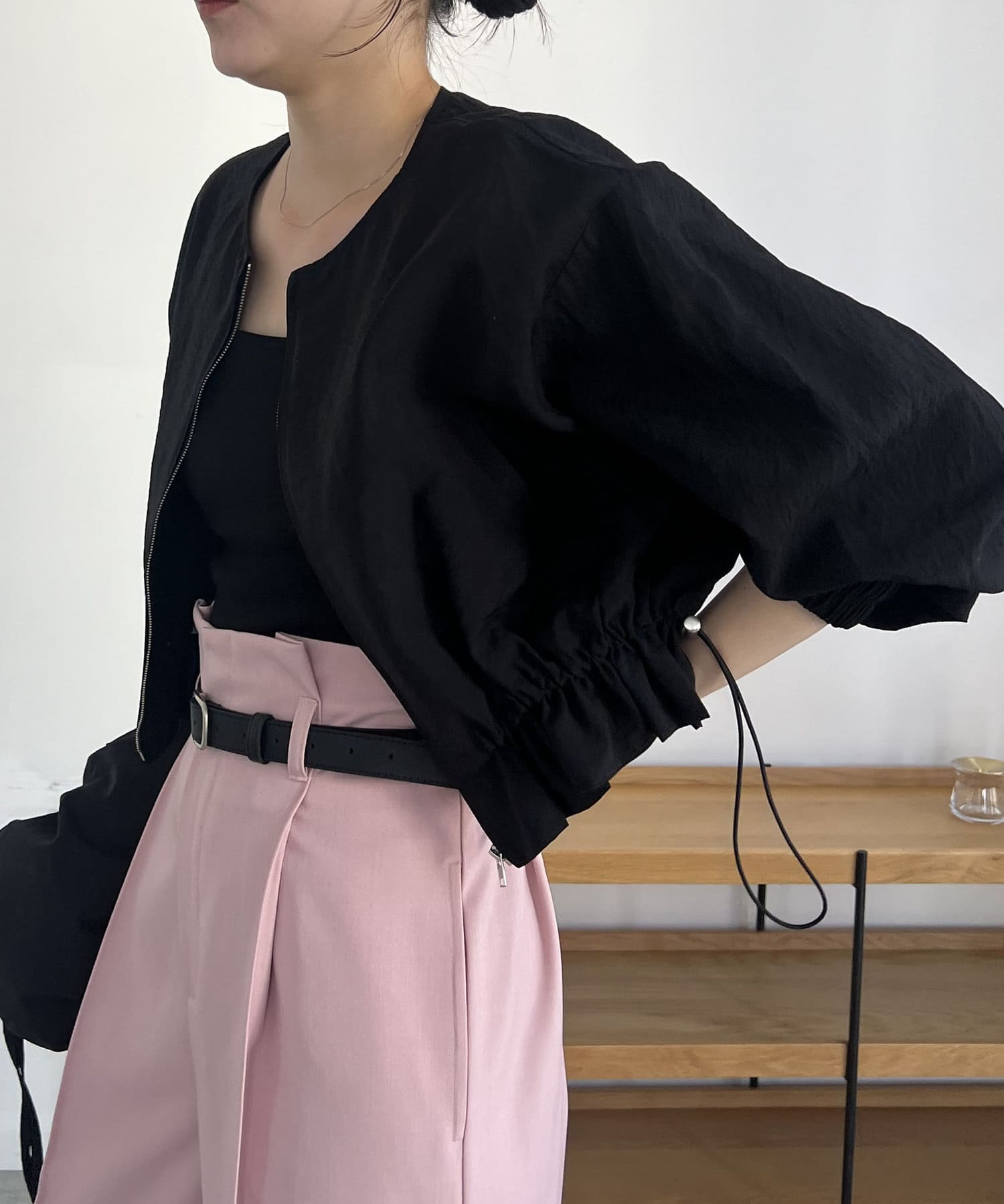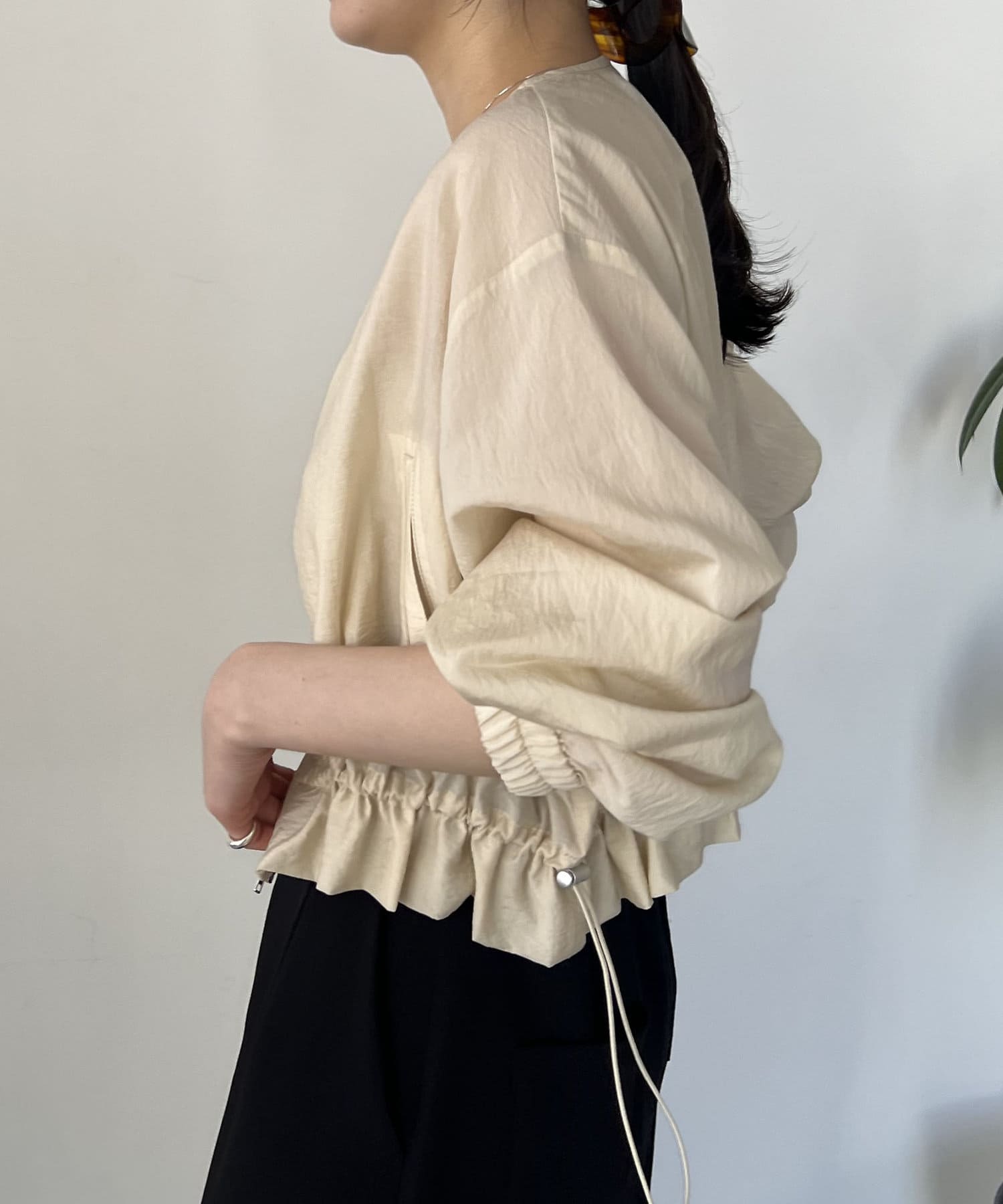 ・ウエスト部分にドロストコードが入っており女性らしいシルエットに