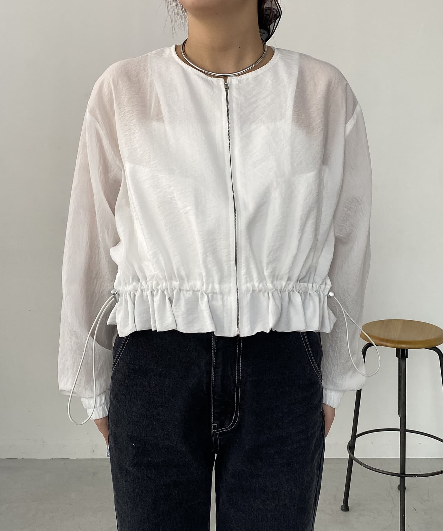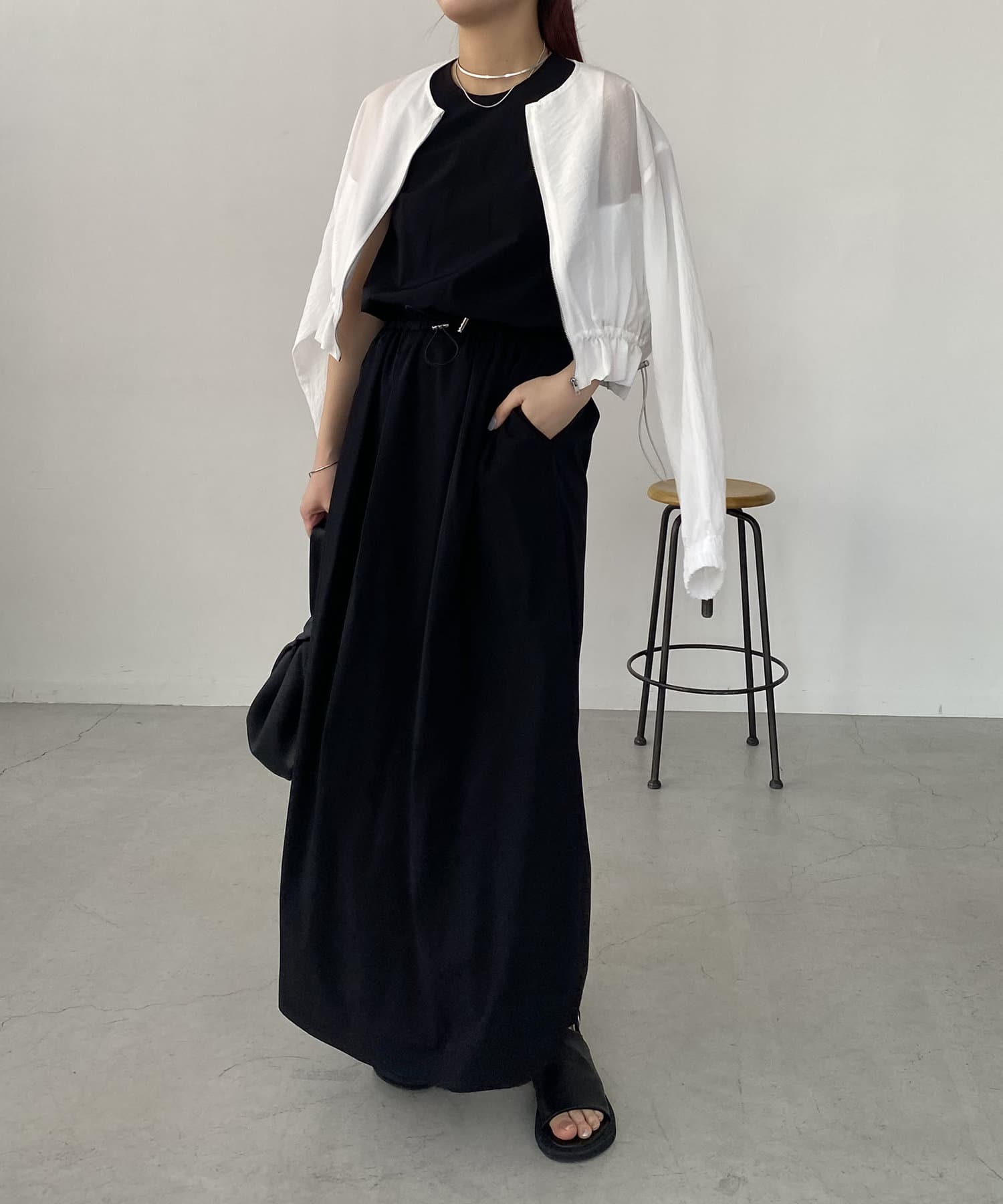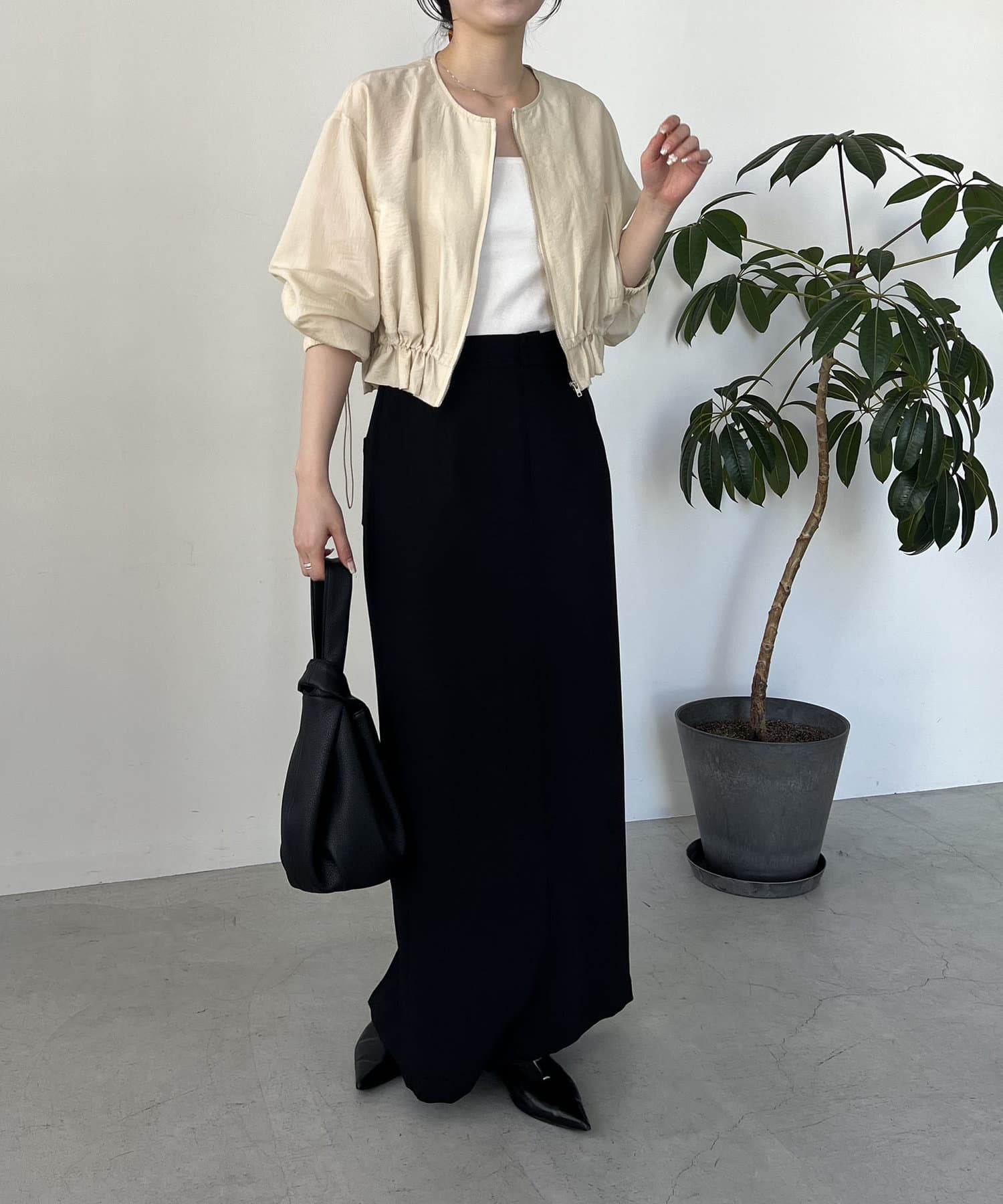 ・ウエスト部分にドロストコードが入っており女性らしいシルエットに