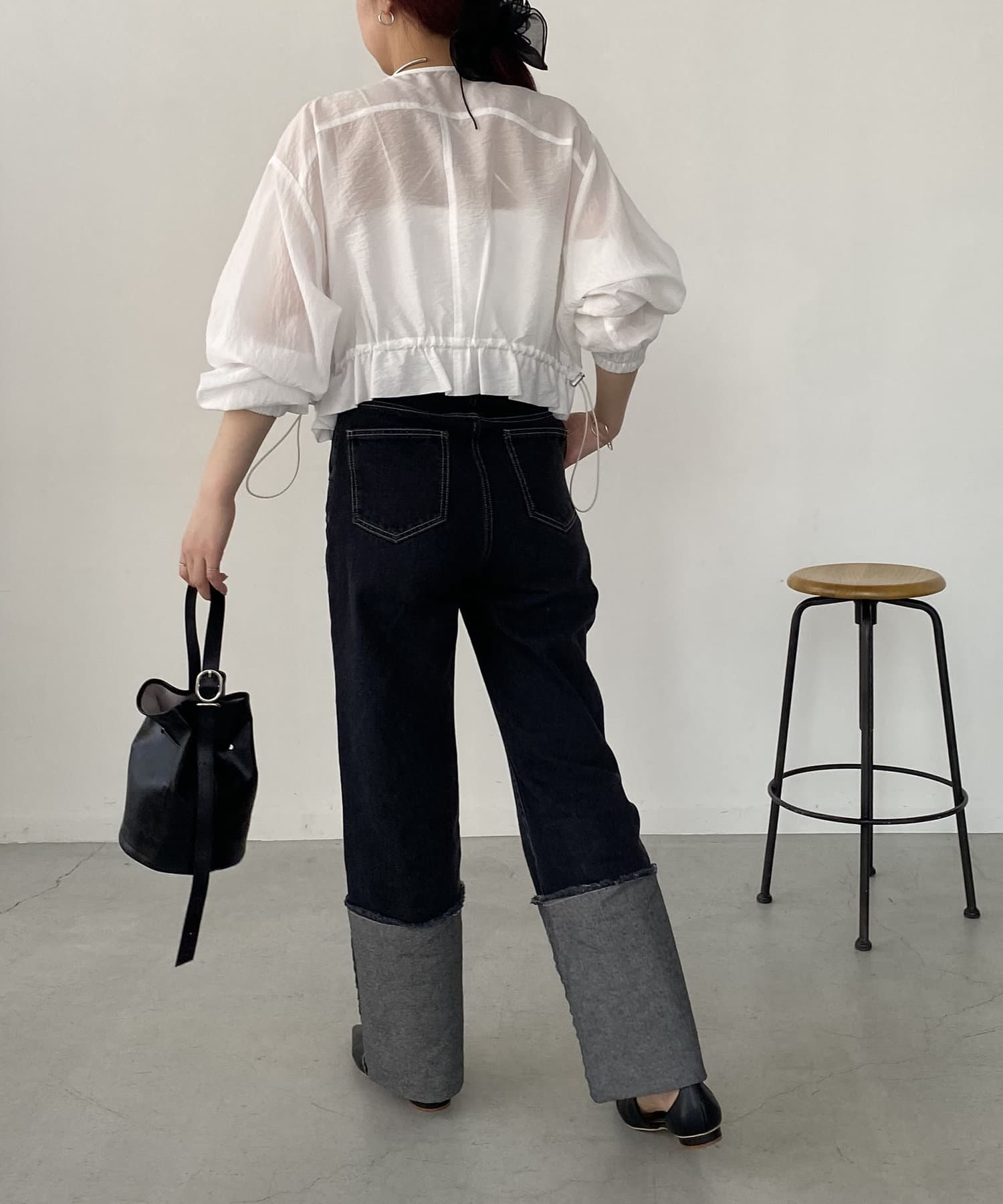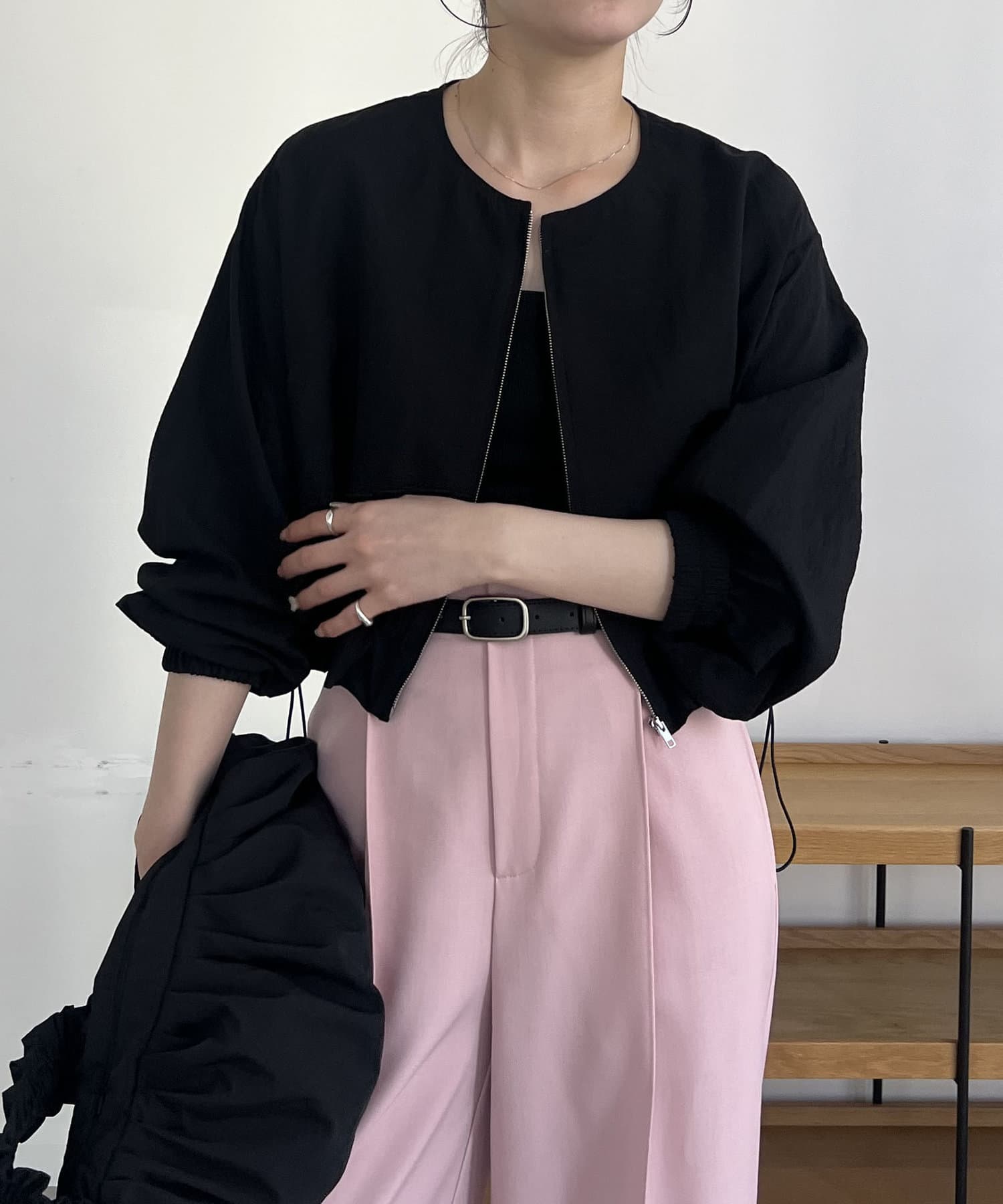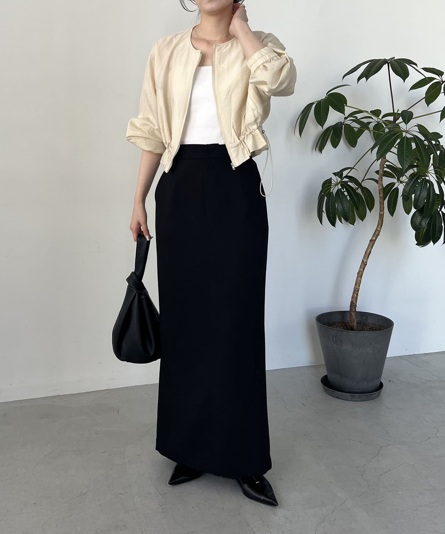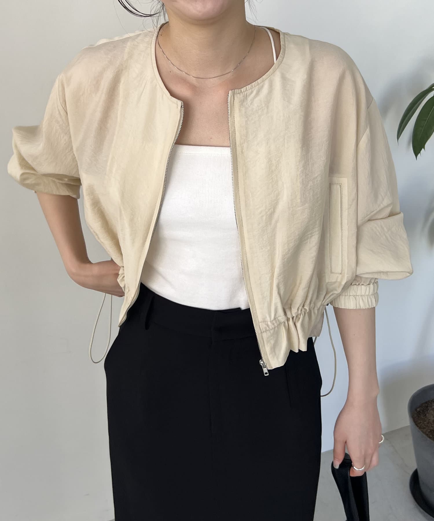 ・ウエスト部分にドロストコードが入っており女性らしいシルエットに