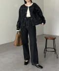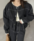 【ブラック着用アイテム②】【セットアップ対応】デニムノーカラージャケット