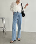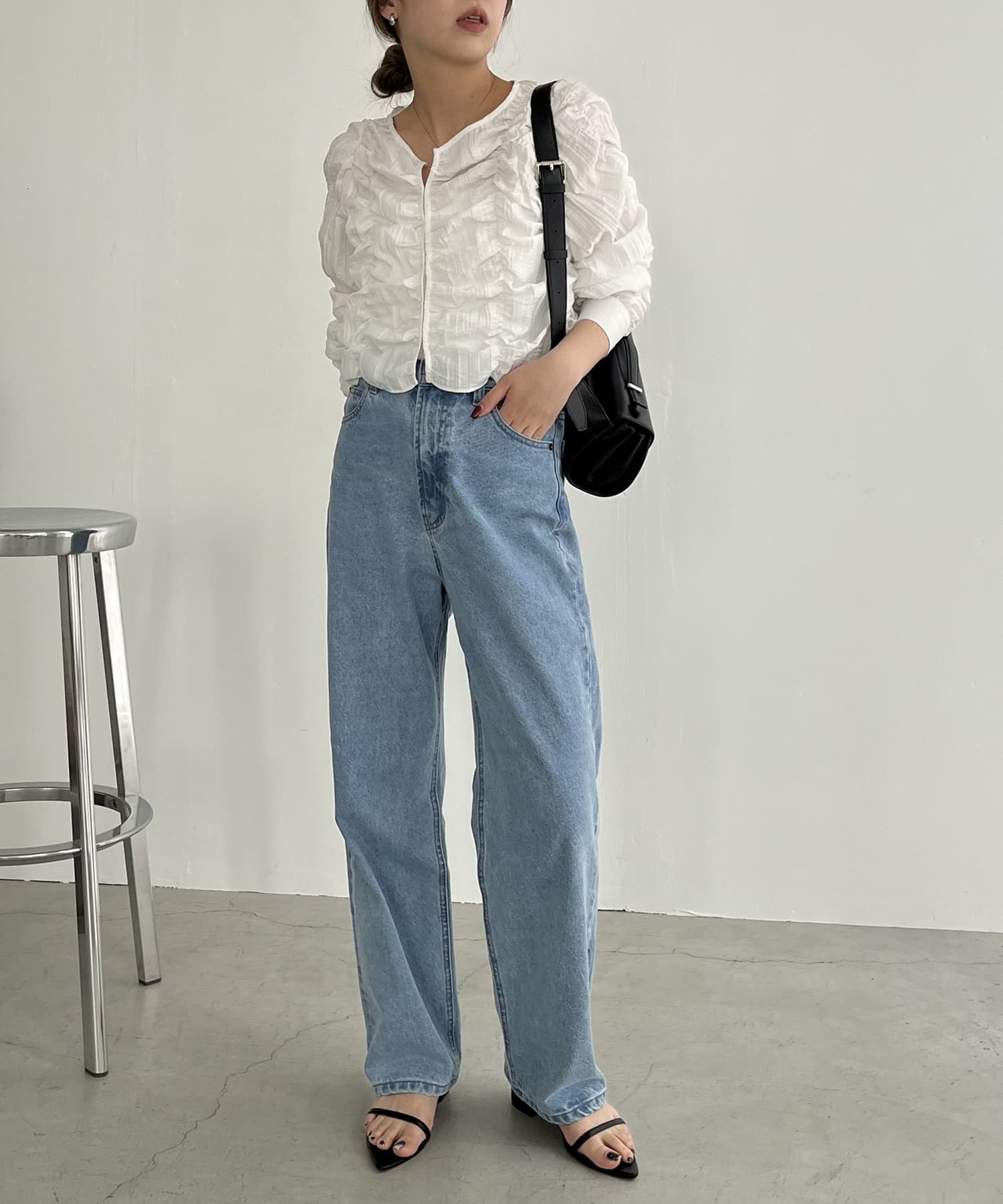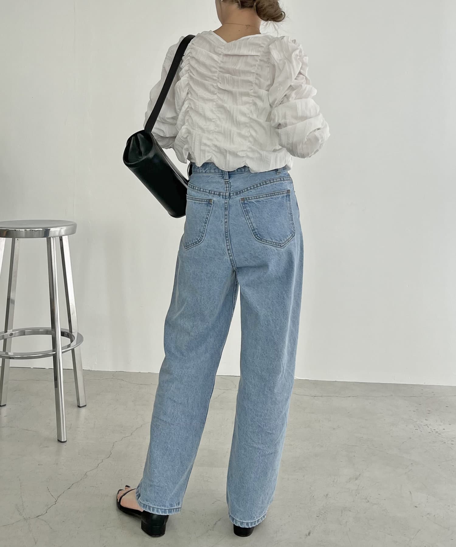 【ライトブルー着用アイテム①】シャーリングブラウス