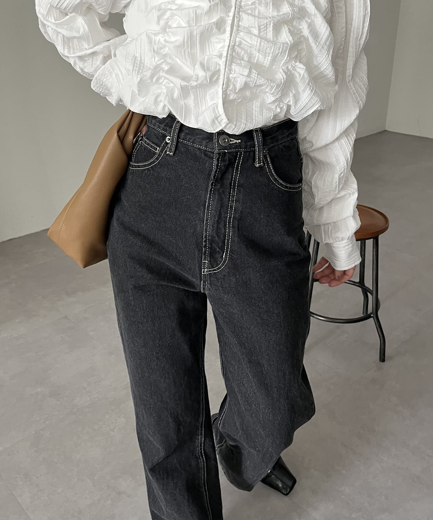 【新色追加/ライトブルー】13ozハイウエストストレートデニム