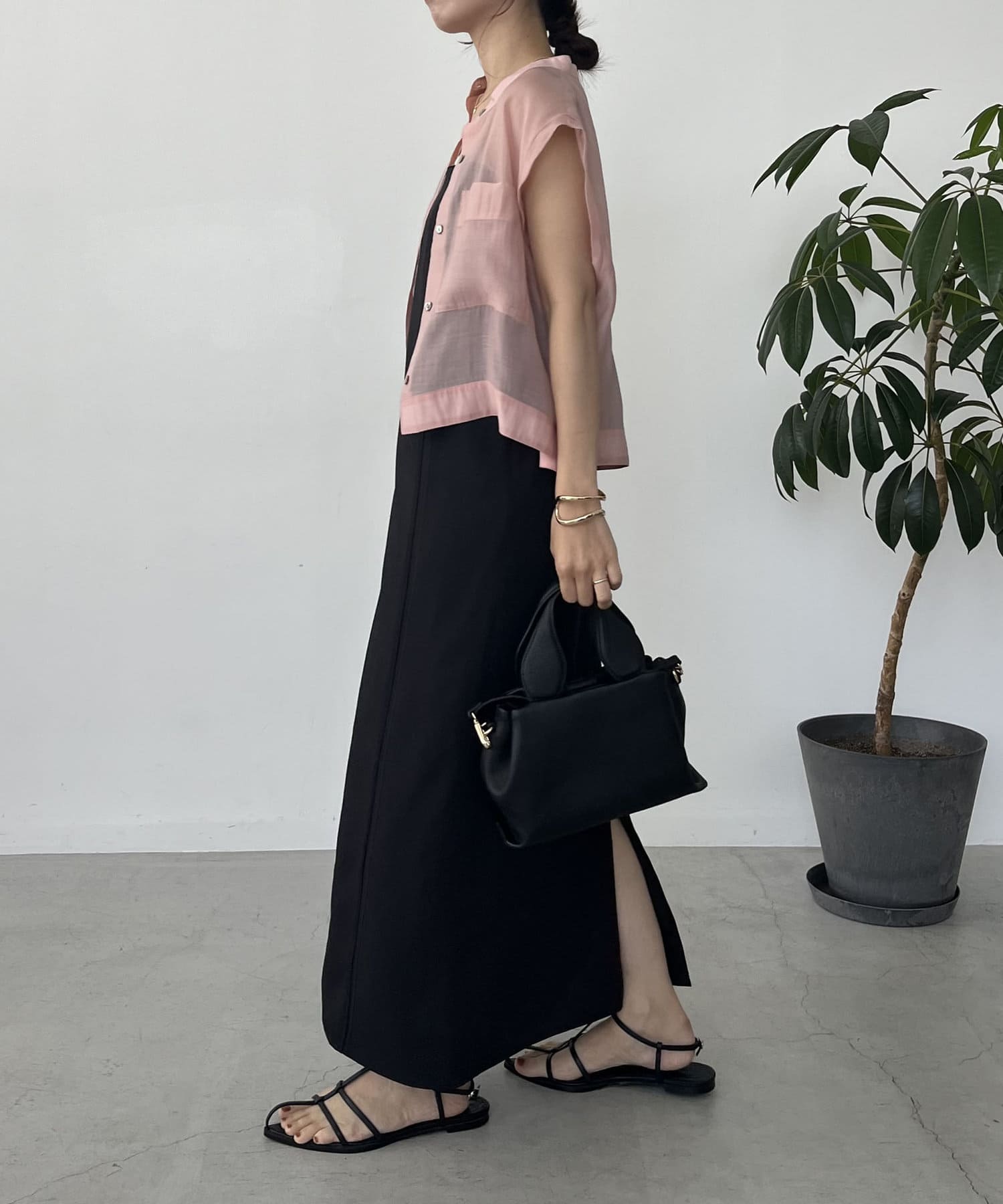 ・長すぎない骨盤くらいの丈でワンピースやマキシ丈のスカートにもバランスよく合わせられる