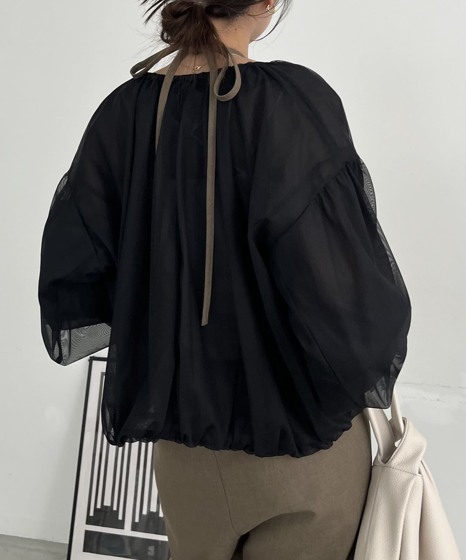 ・首元や袖口、裾にギャザーが入っており、丸みのある立体的なシルエットに