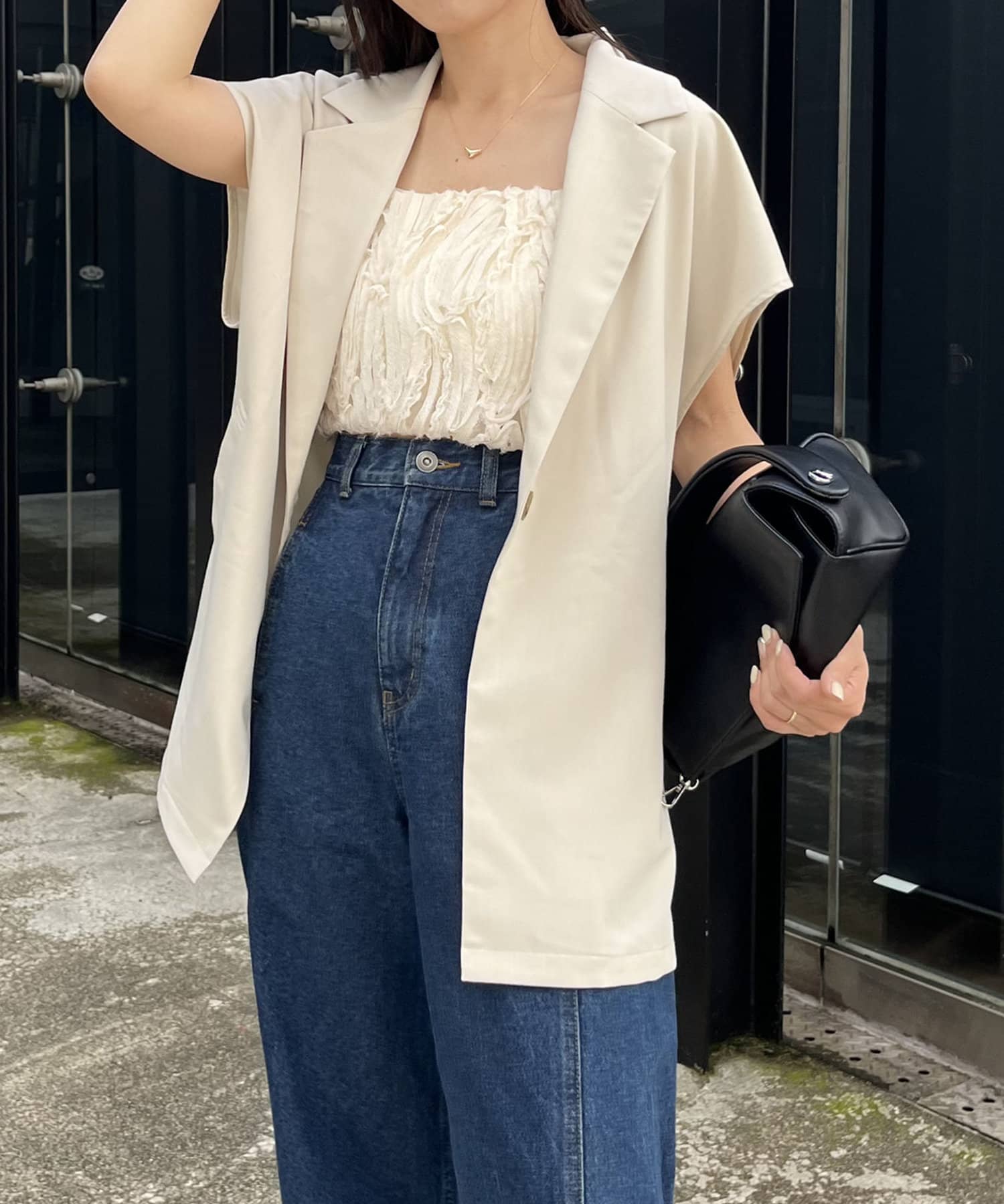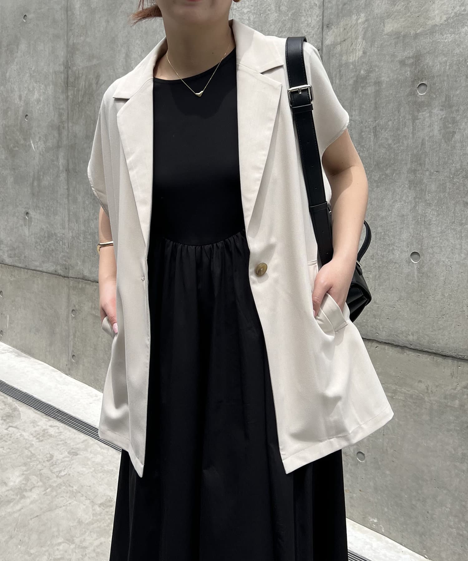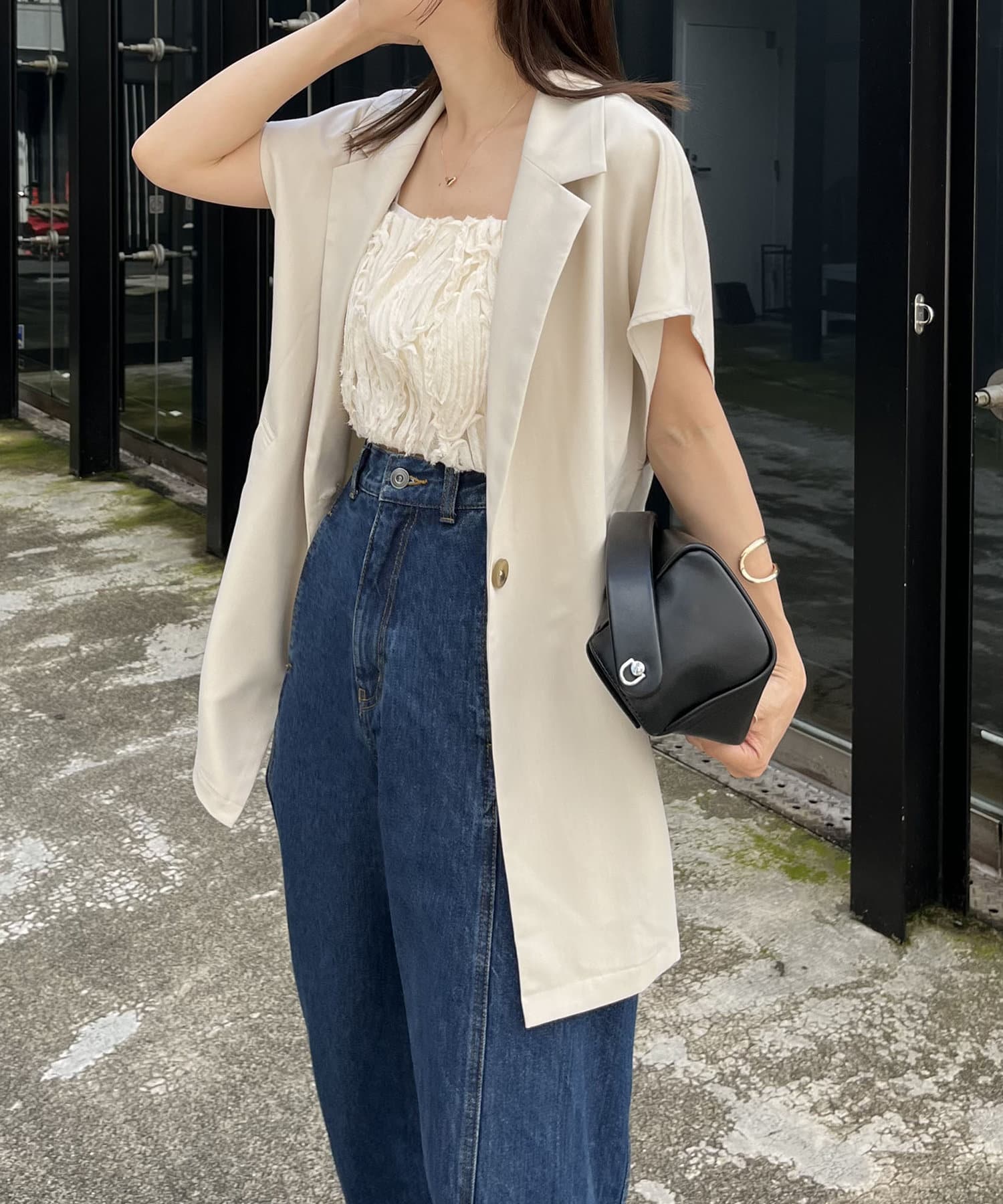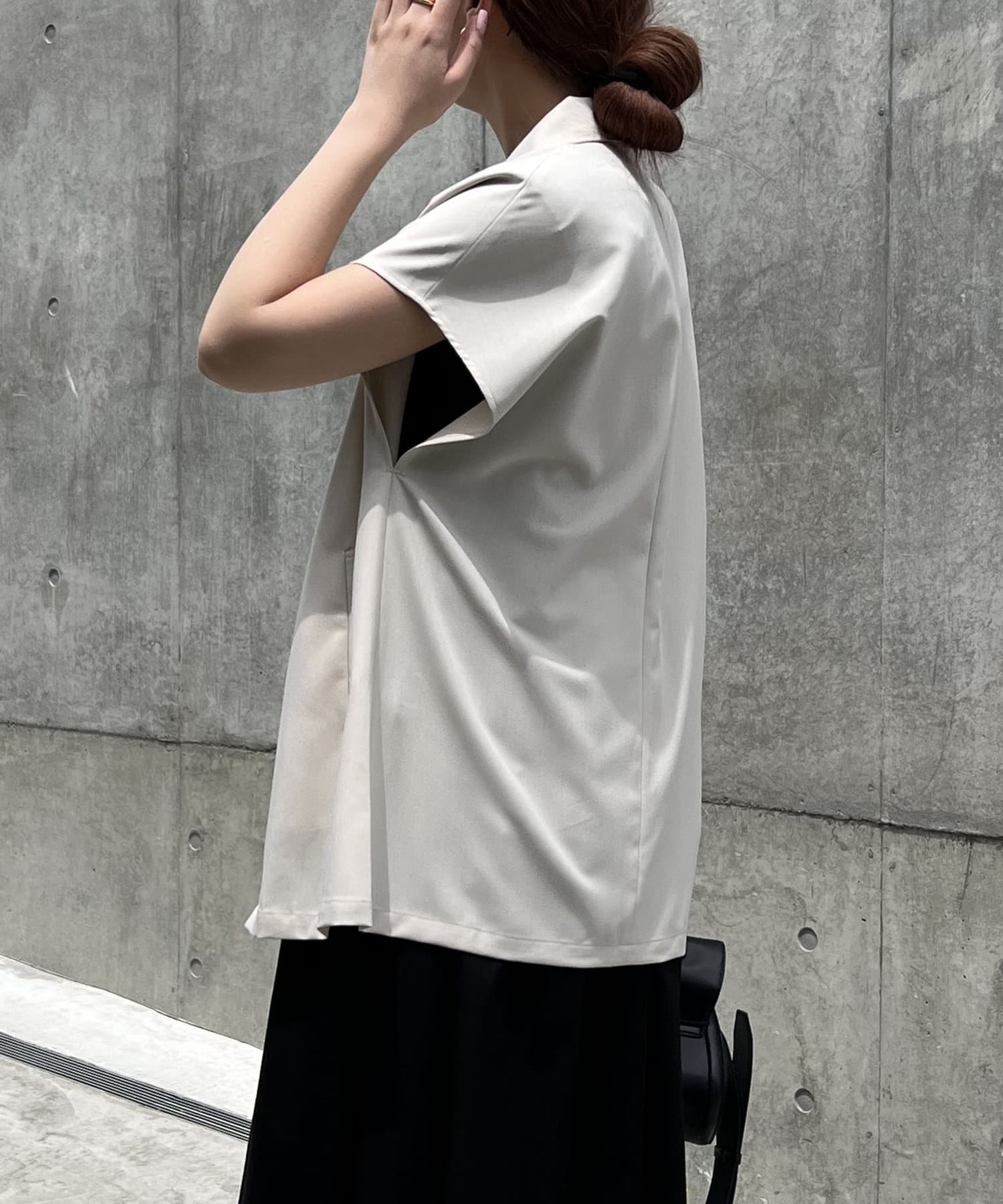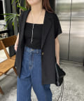 ・ジャケット型ながらも生地感が軽く、夏も涼しく着られる1枚