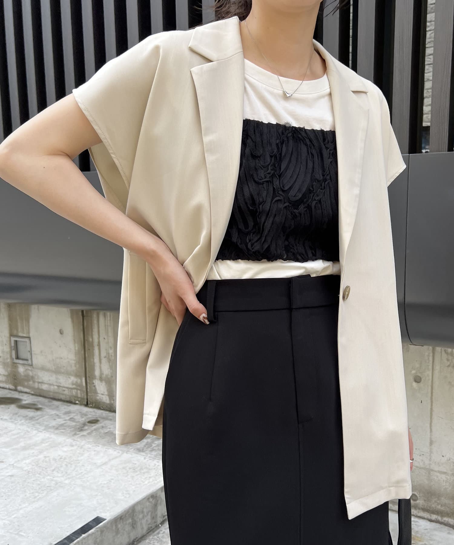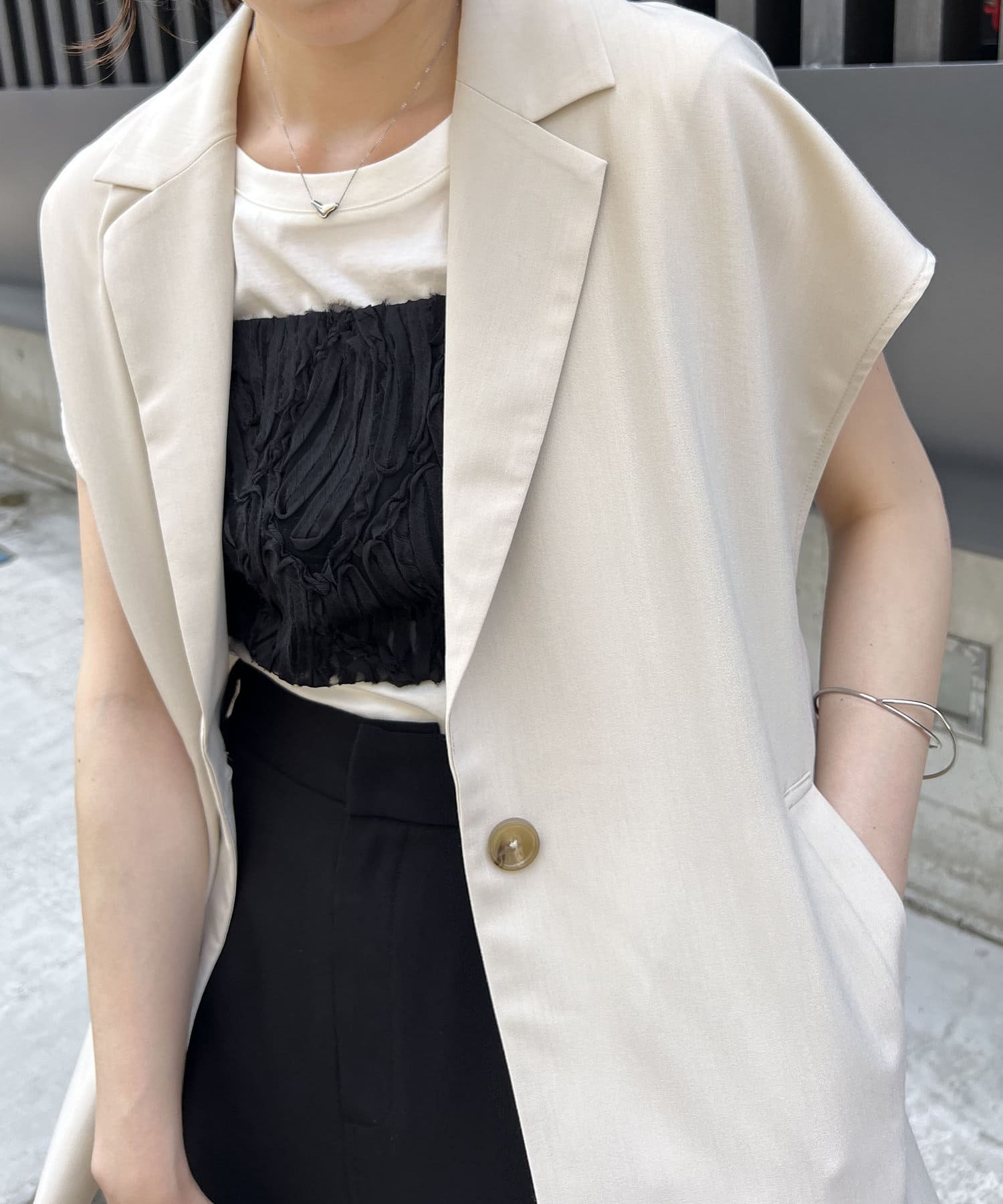・バンドゥSETネップノースリニットを中に着るスタイリングがおすすめ