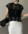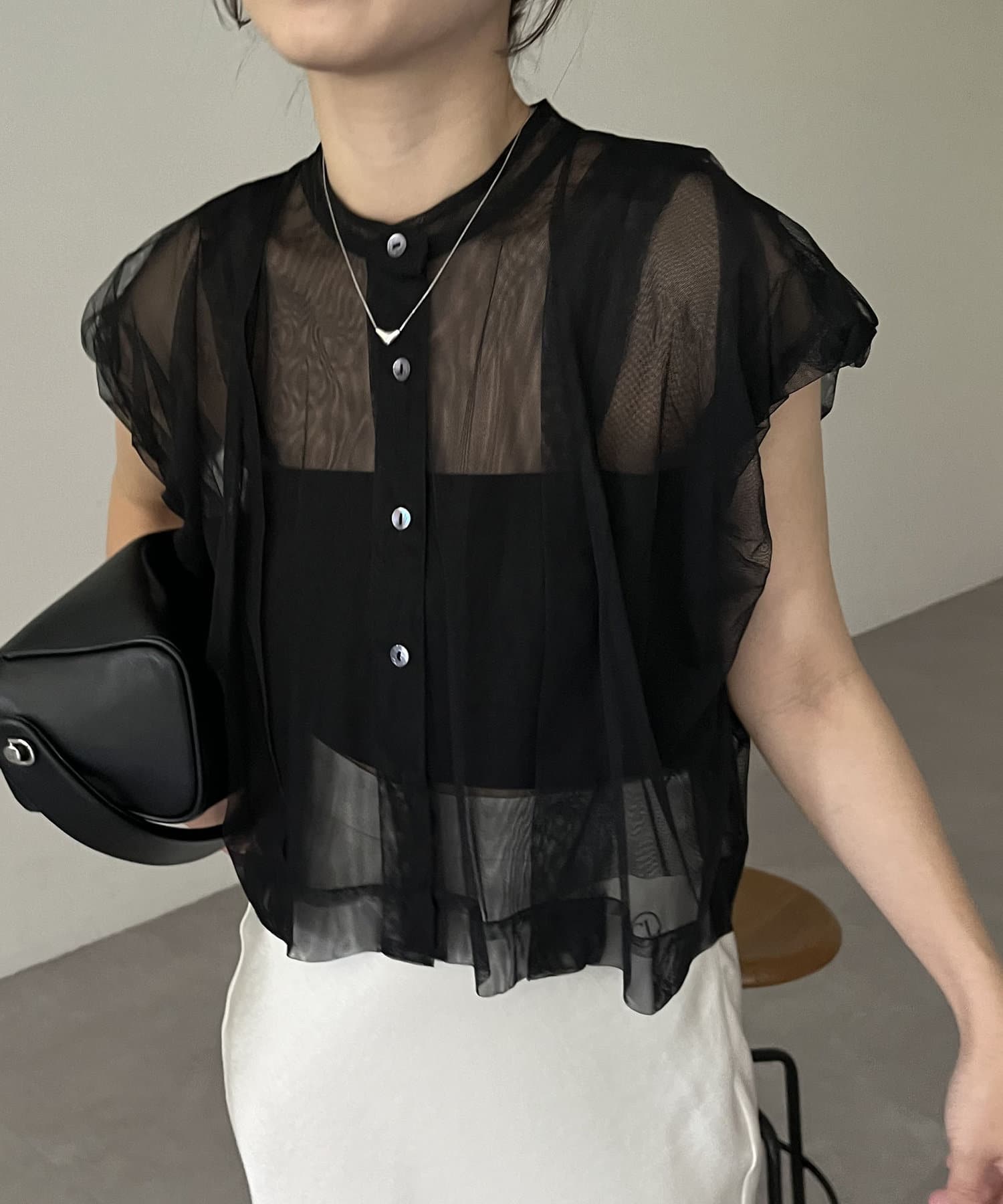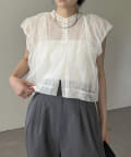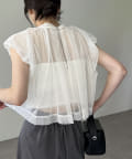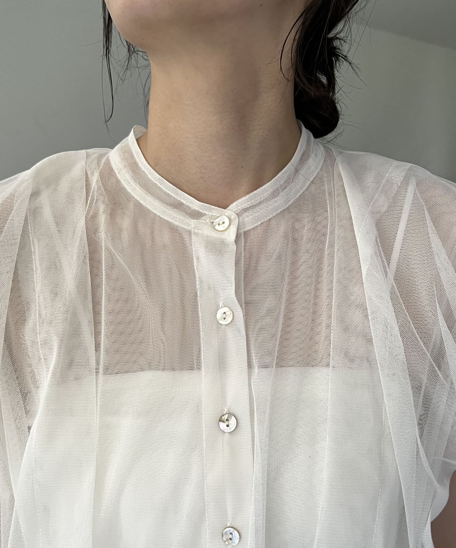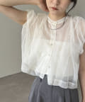 ・二の腕に少しかかるくらいのバルーン袖が特徴のシャツ