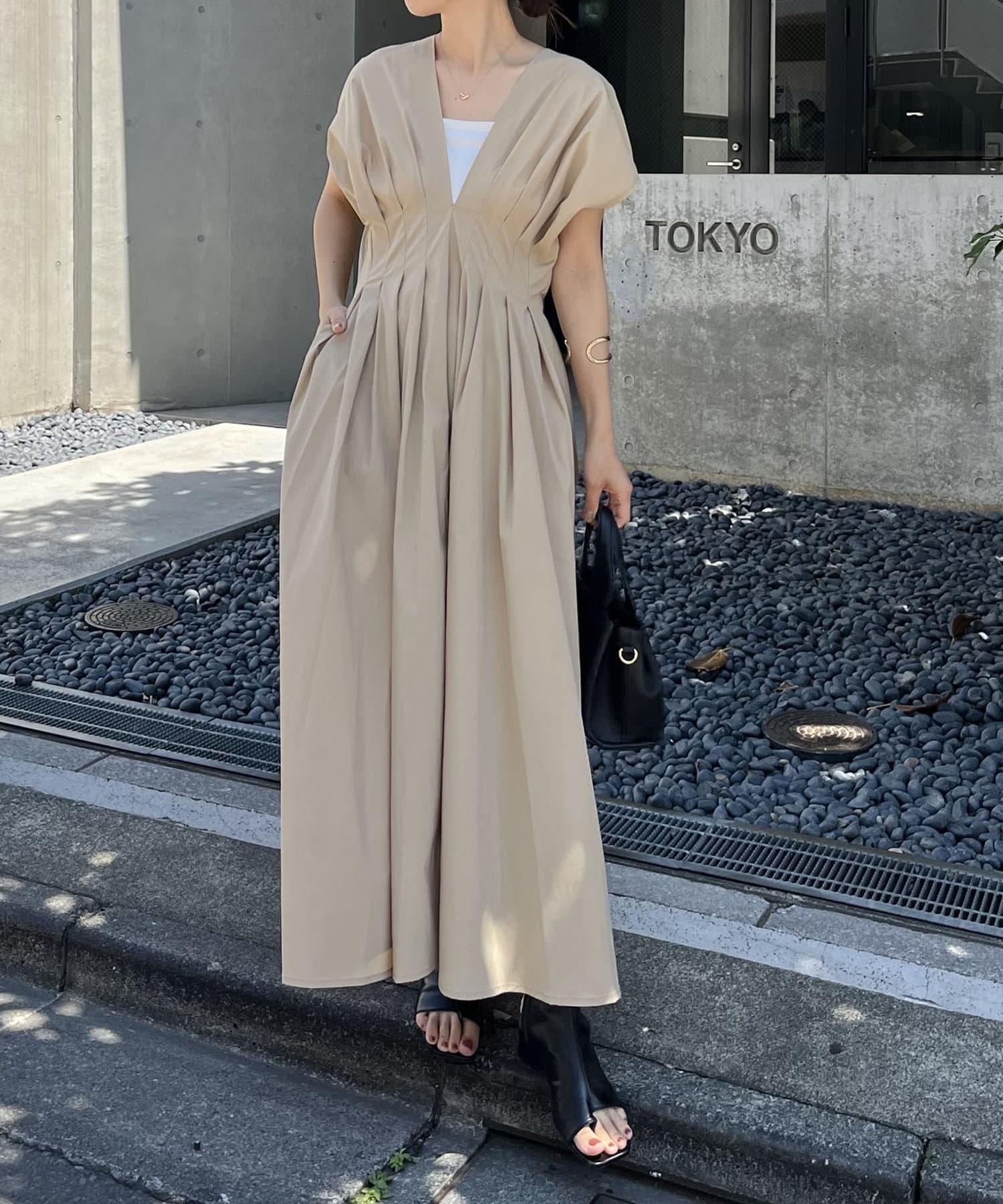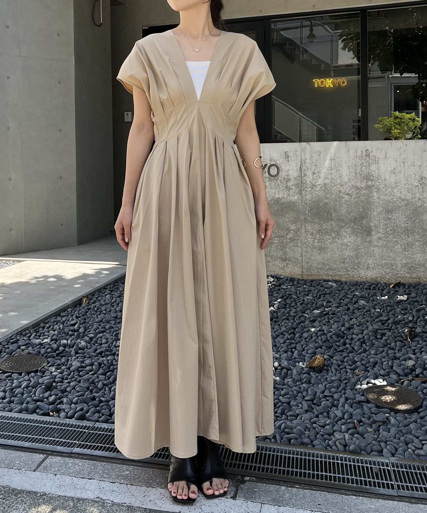 ・足元は華奢なサンダルで女性らしく合わせるのがおすすめ