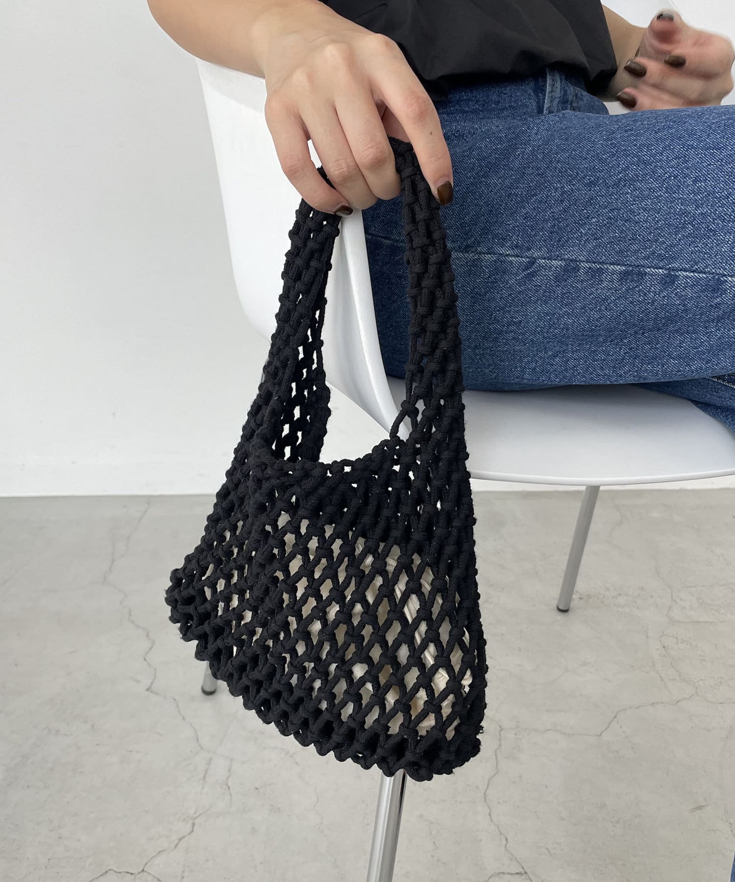 コットンの紐を編み込んだコードバッグ
