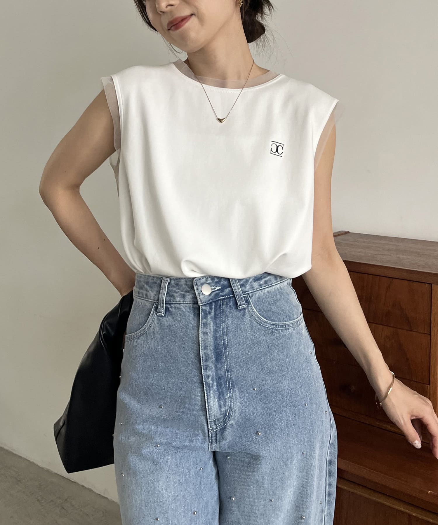 ・胸元の1ポイント刺繍がシンプルな中にもアクセントに