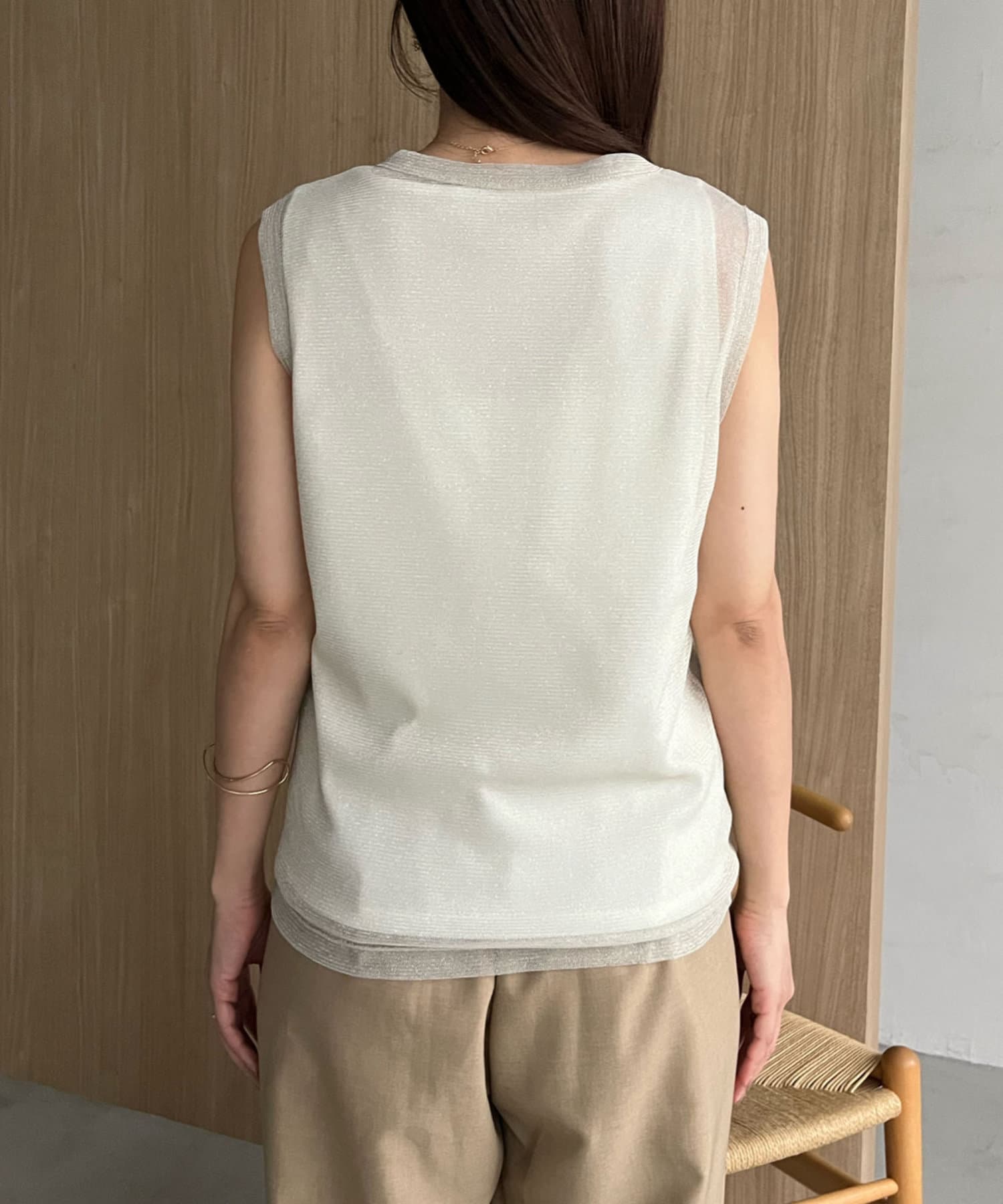 ・ラメのメッシュ素材のタンクトップとカットソー素材のインナーのセットアイテム