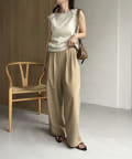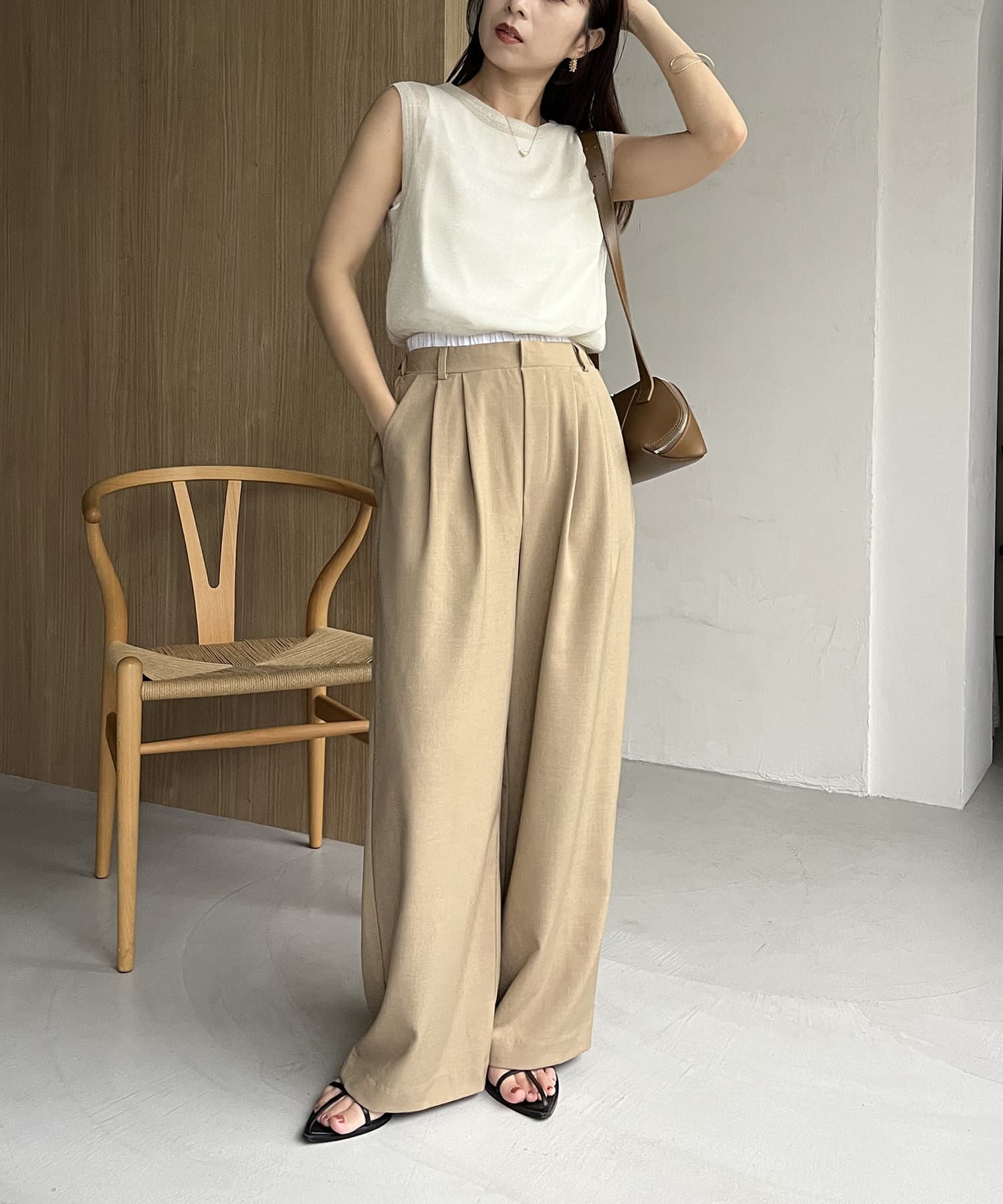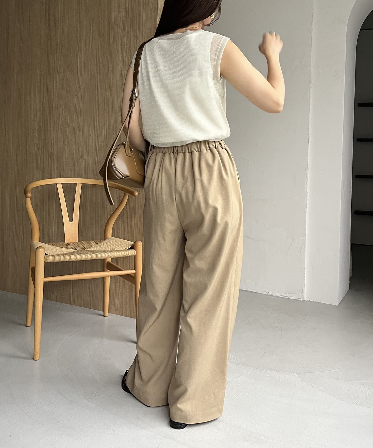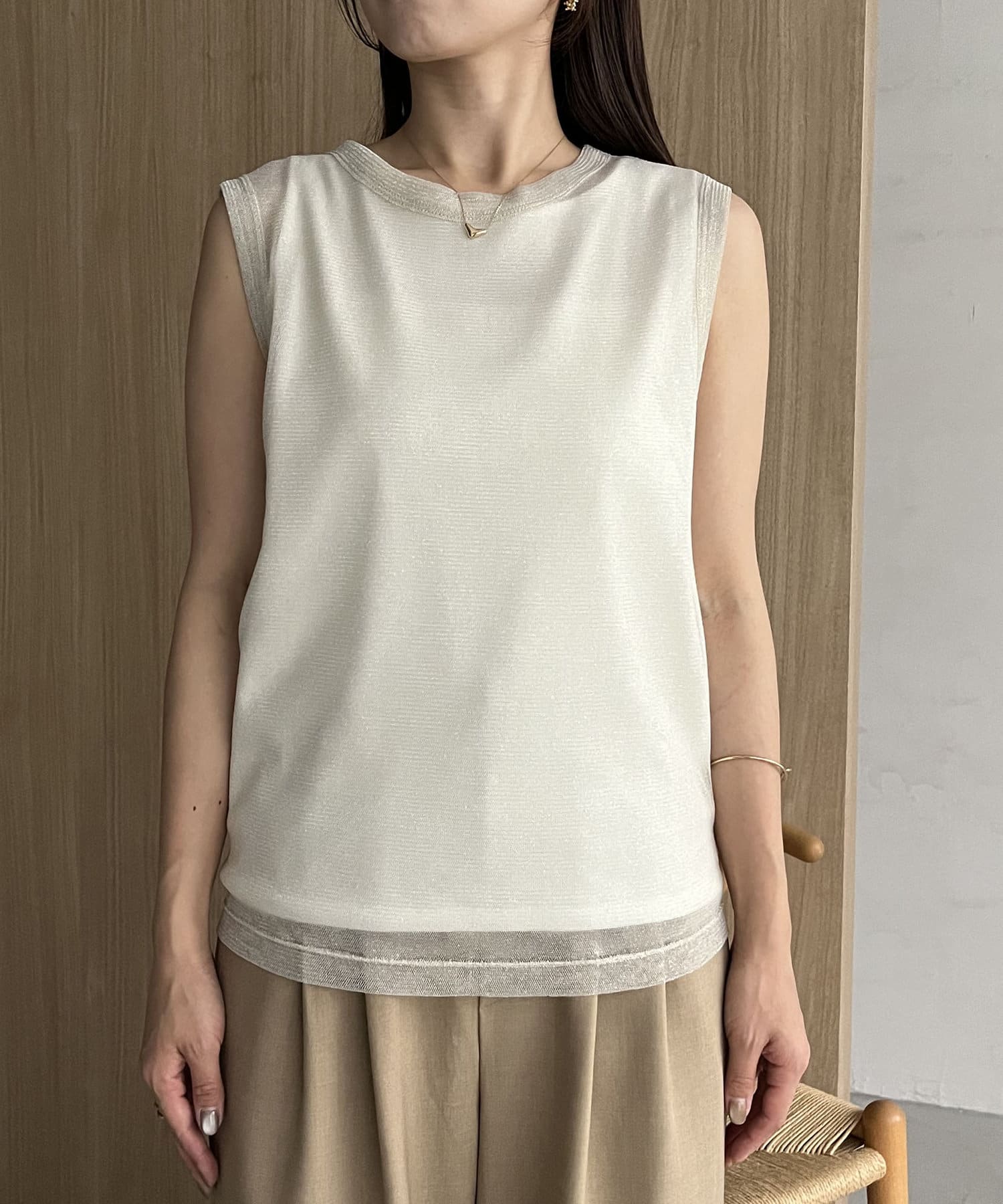 ・透け感があるけど中のタンクトップと形を合わせ、インナーを考えなくてもスタイリングが完成