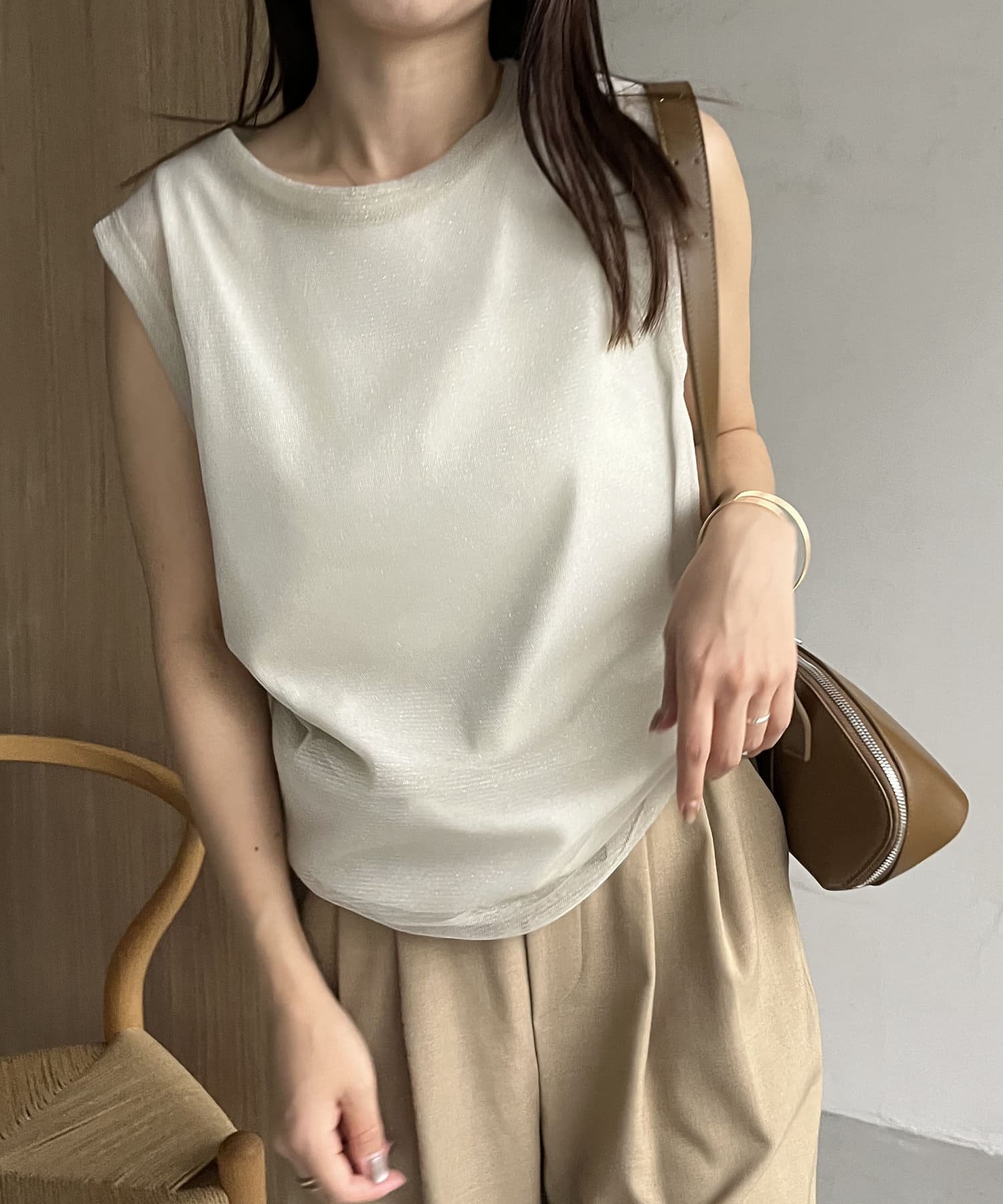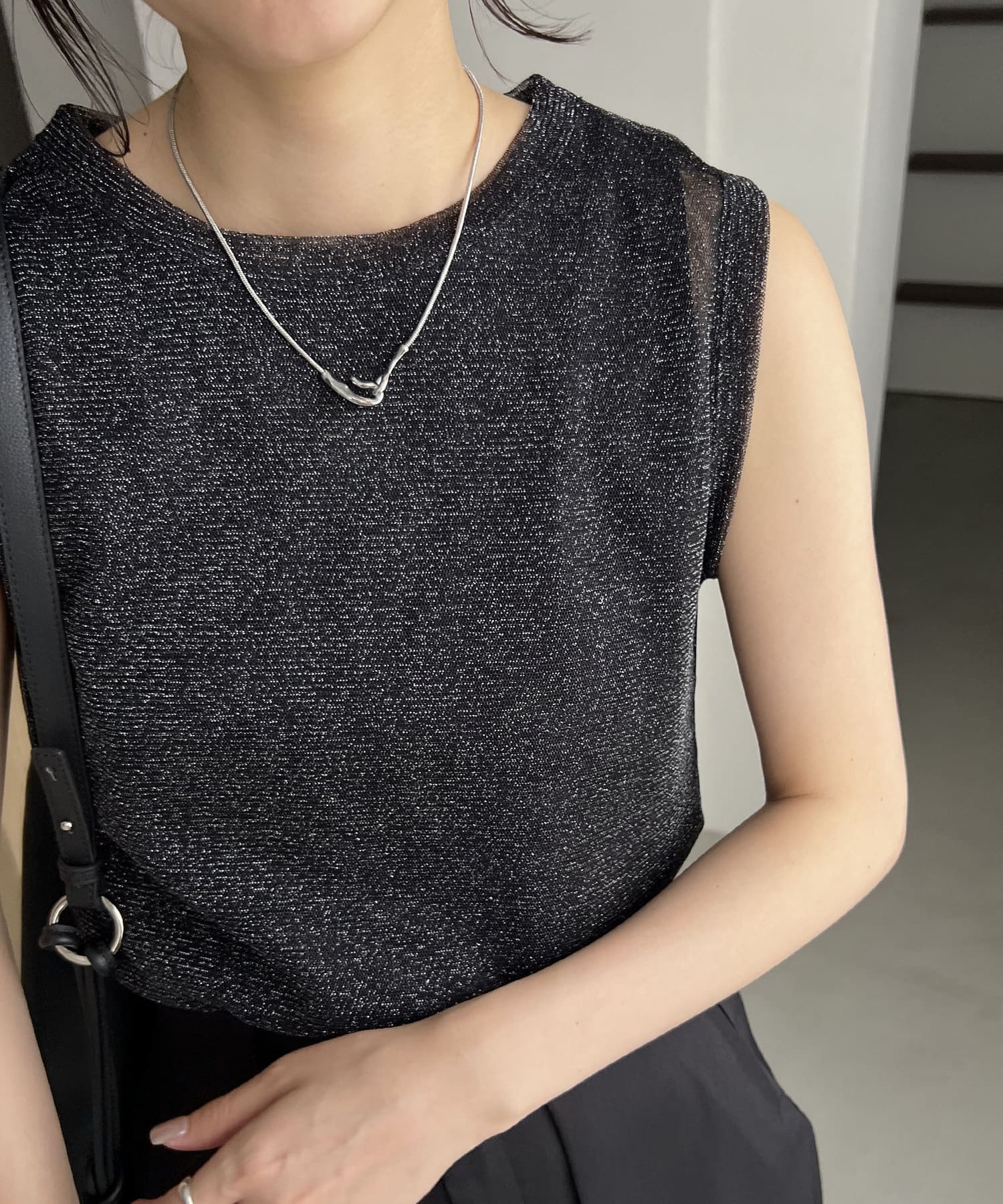 ・ラメのメッシュ素材のタンクトップとカットソー素材のインナーのセットアイテム