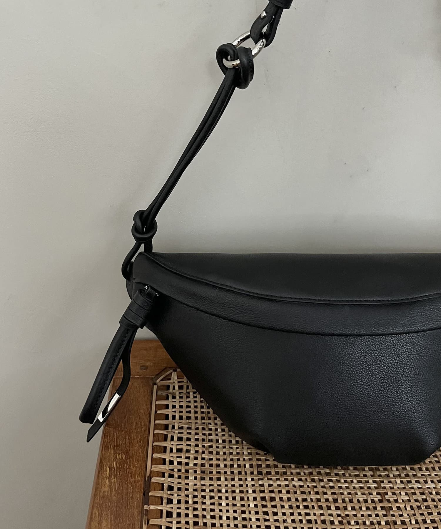 ・カジュアルなイメージのボディバッグも、牛革素材で上品な印象に