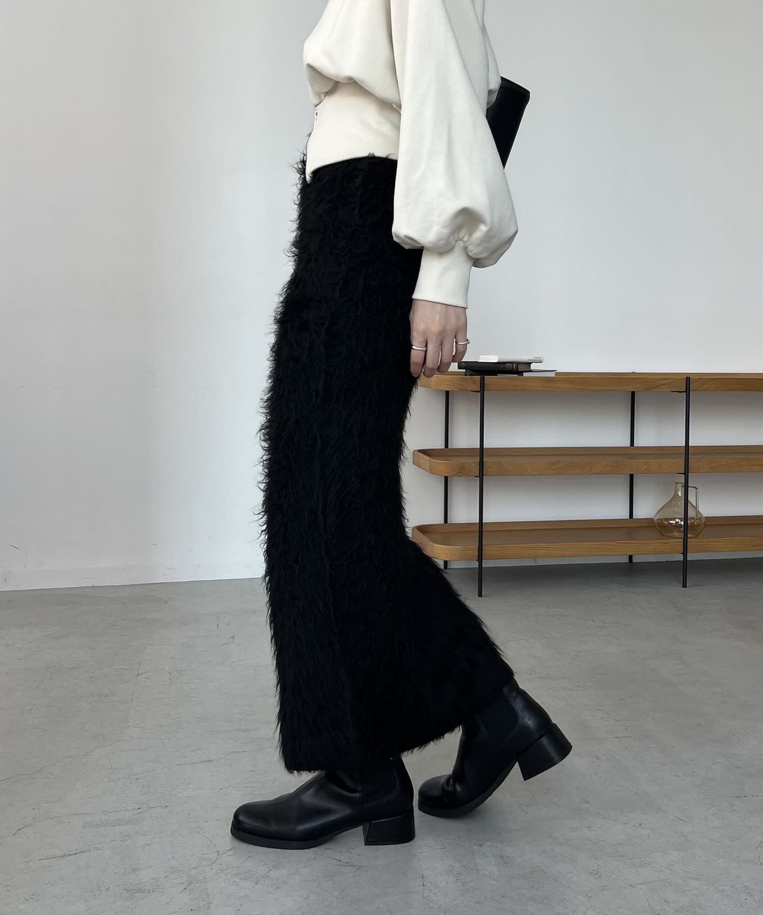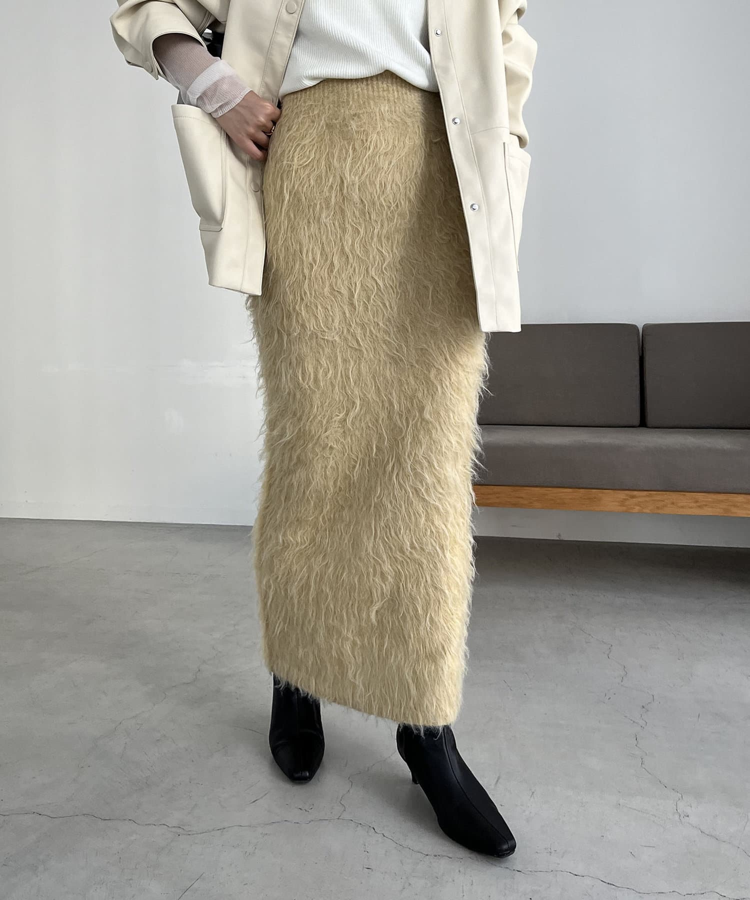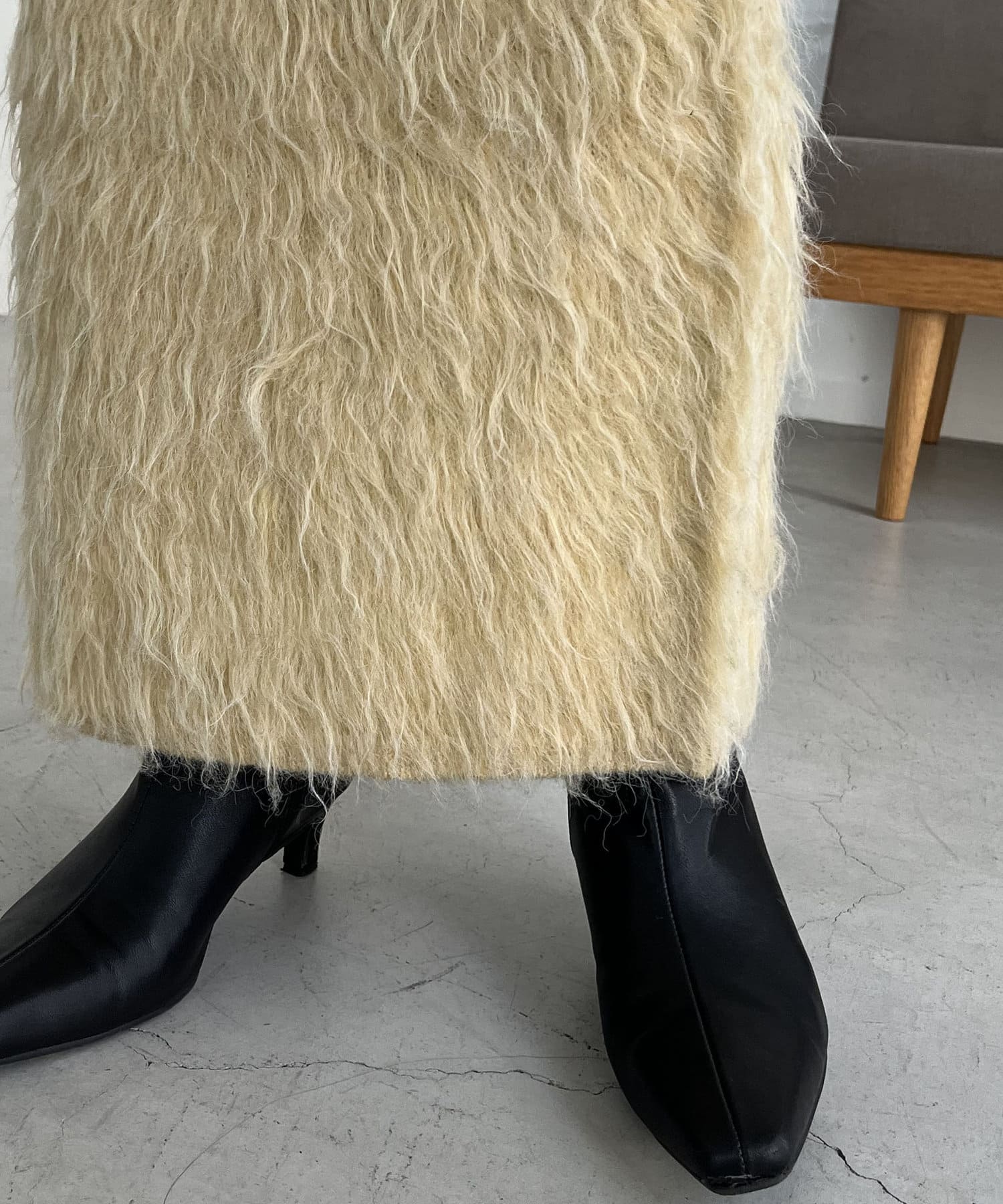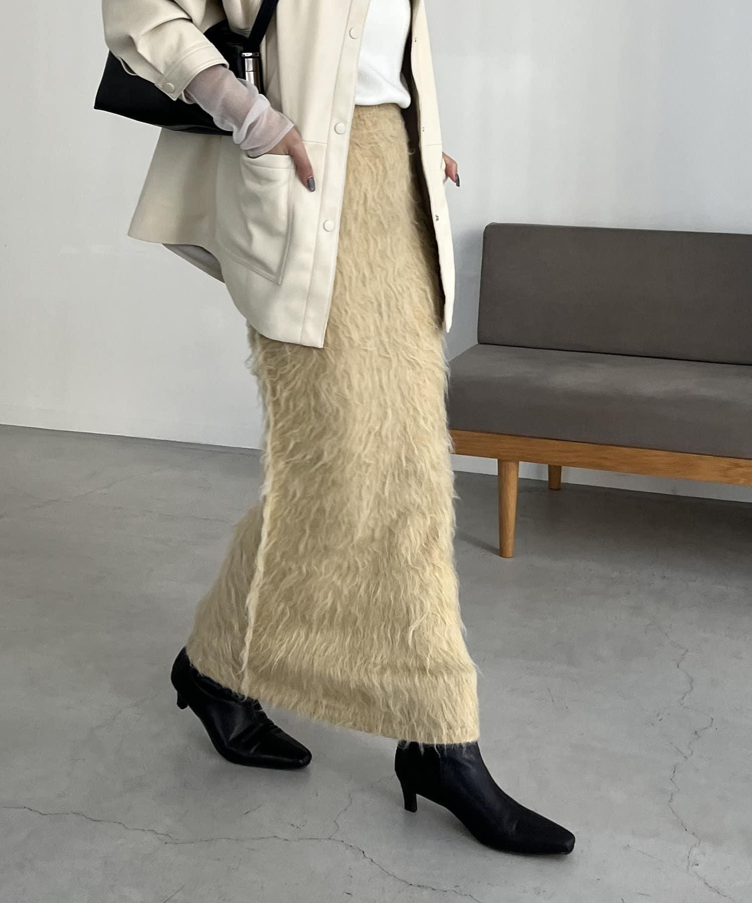 ・ブラッシング加工でファーのような毛足のある素材に仕上げたスカート