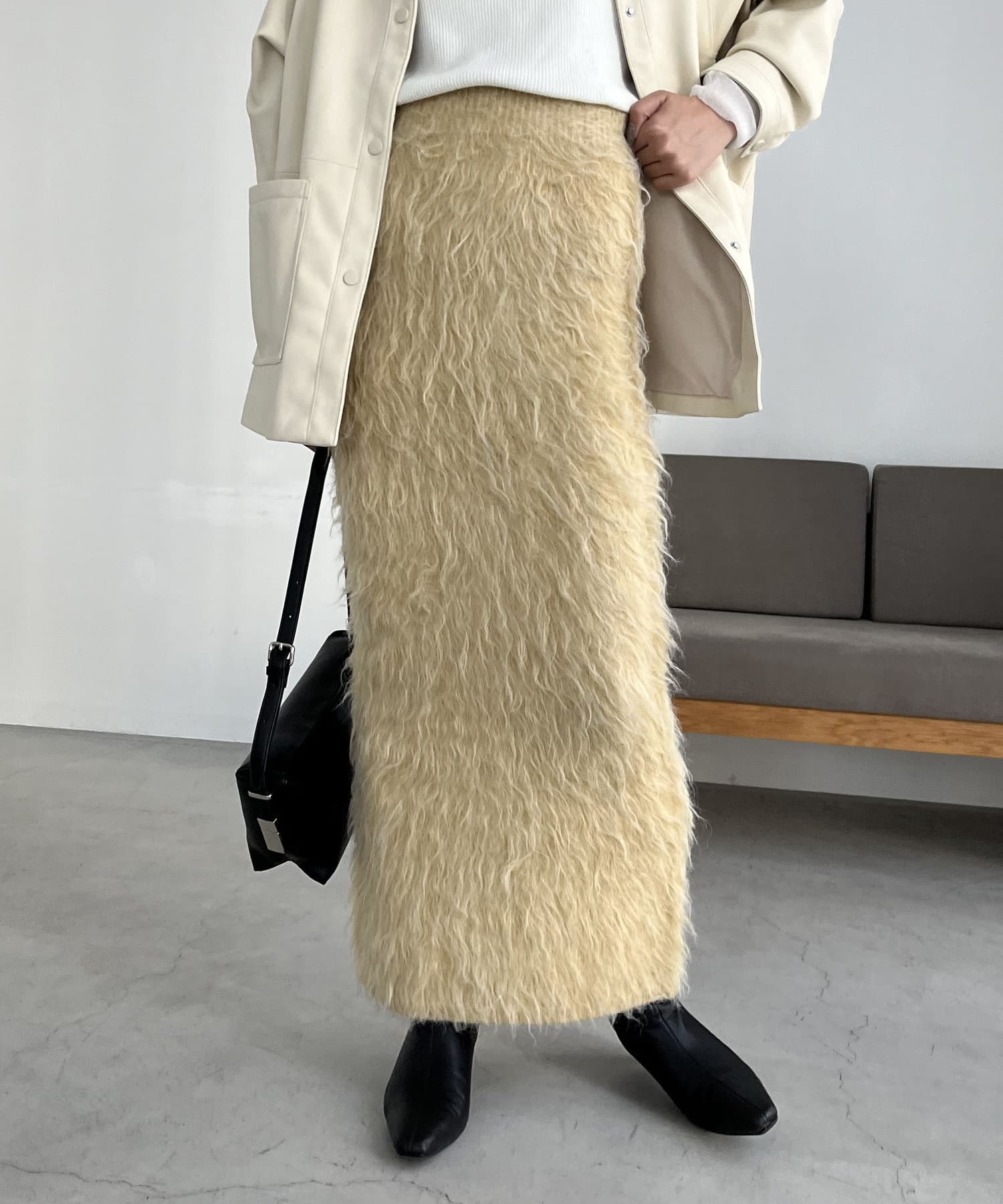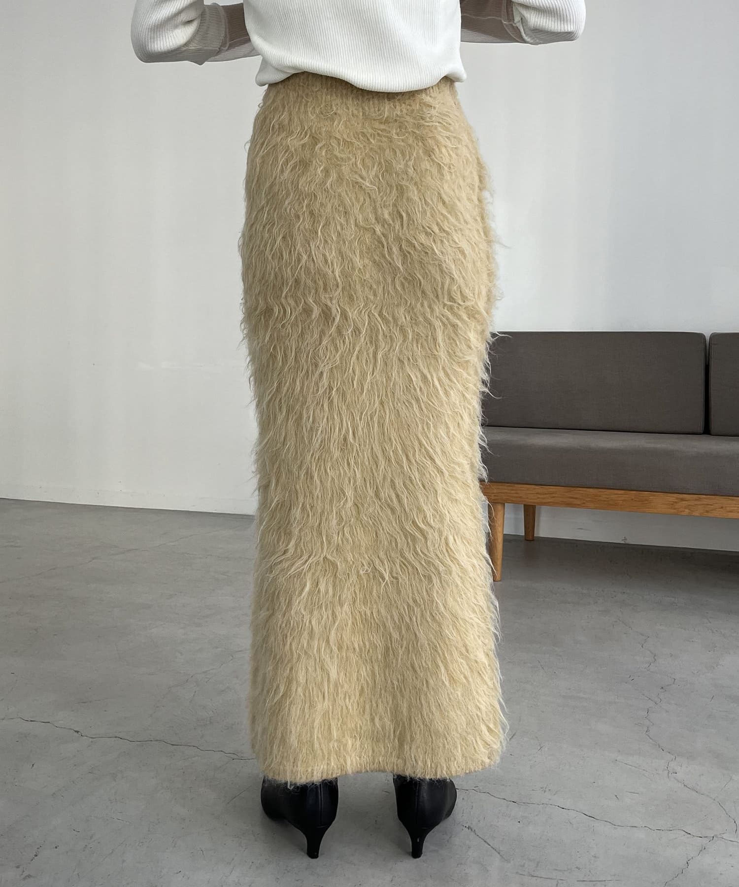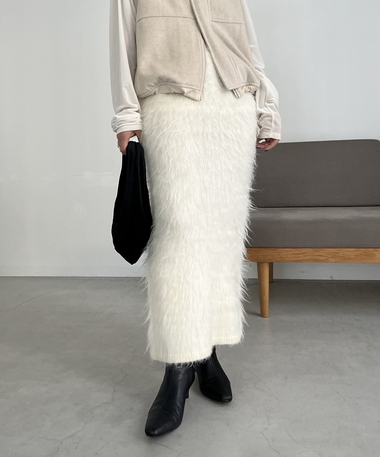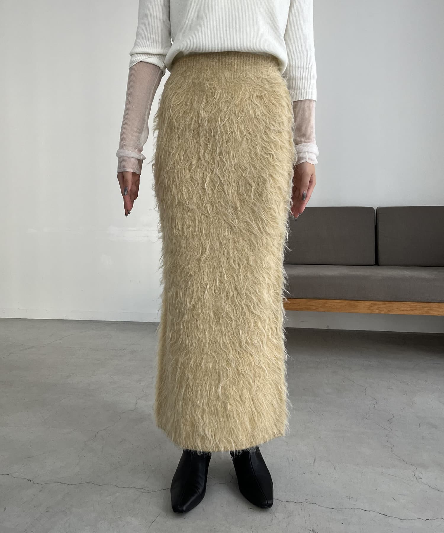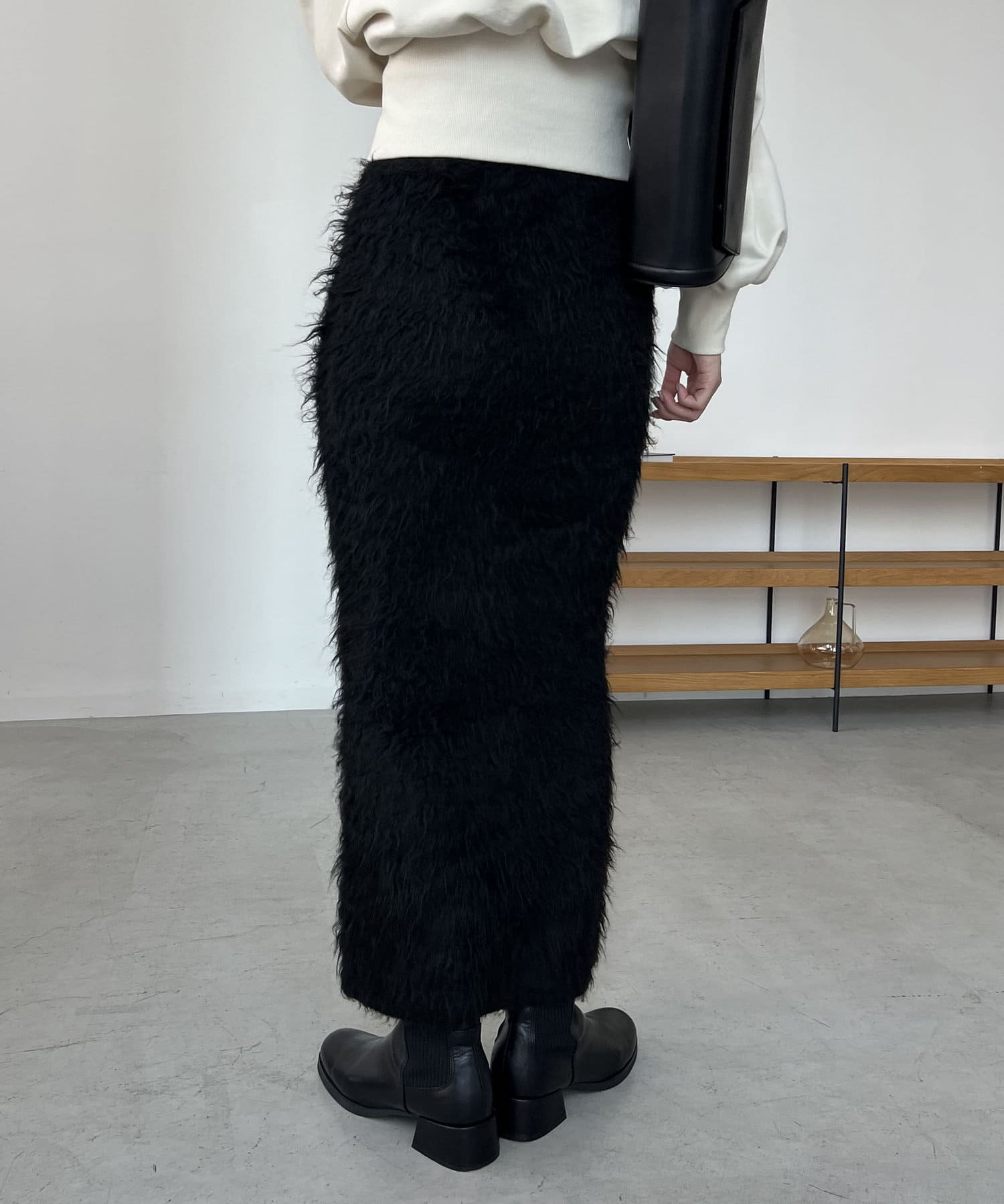 ・ブラッシング加工でファーのような毛足のある素材に仕上げたスカート