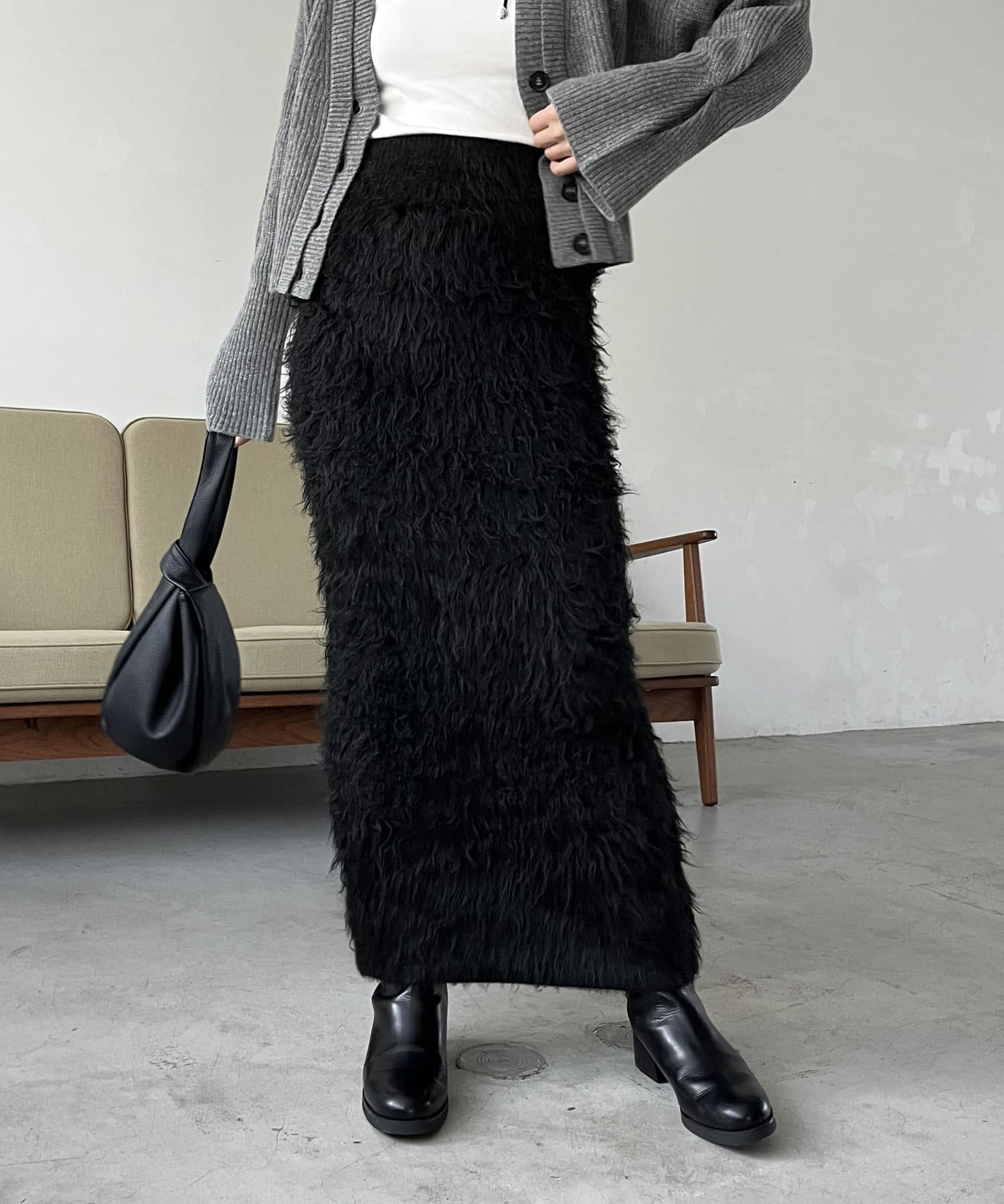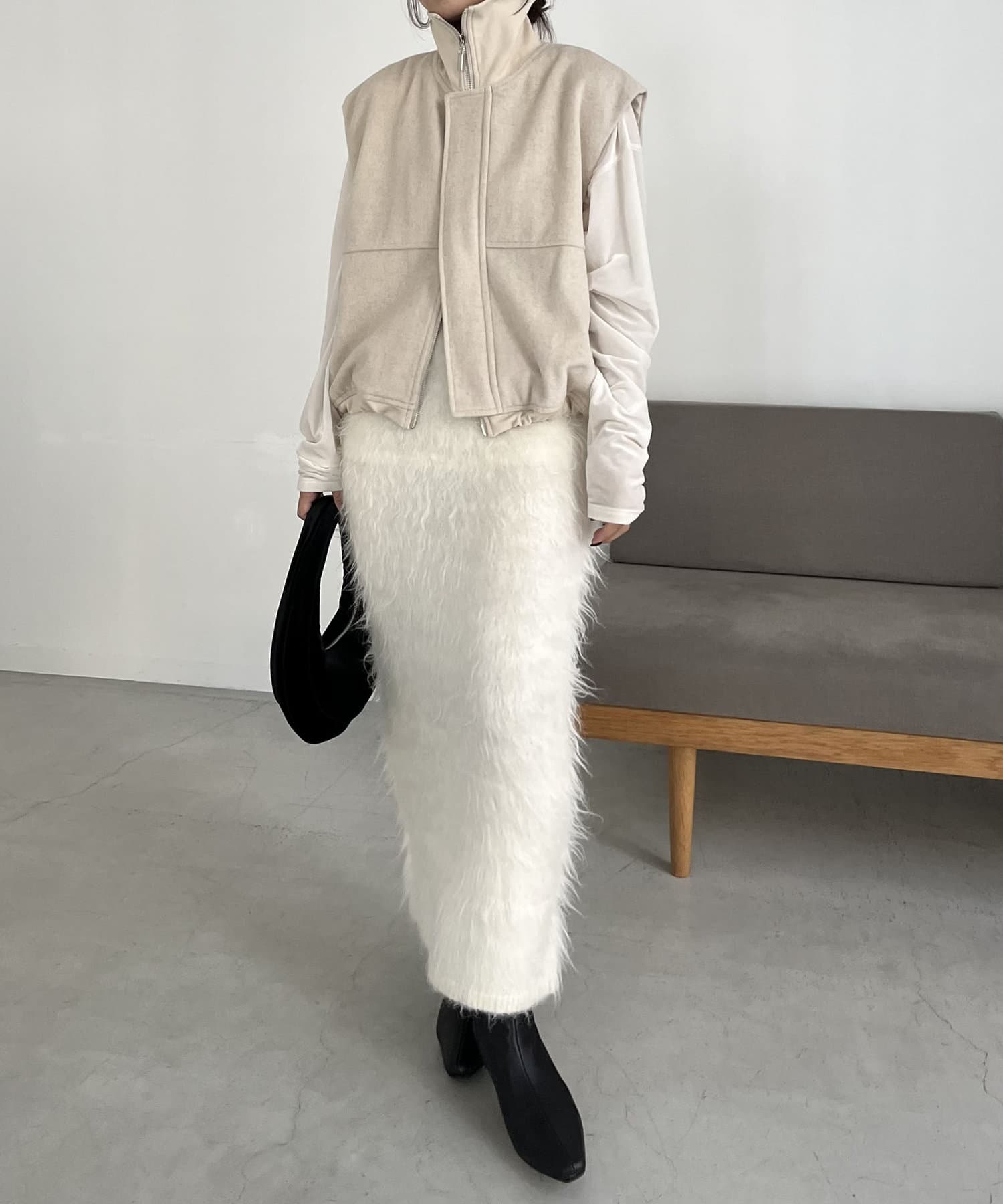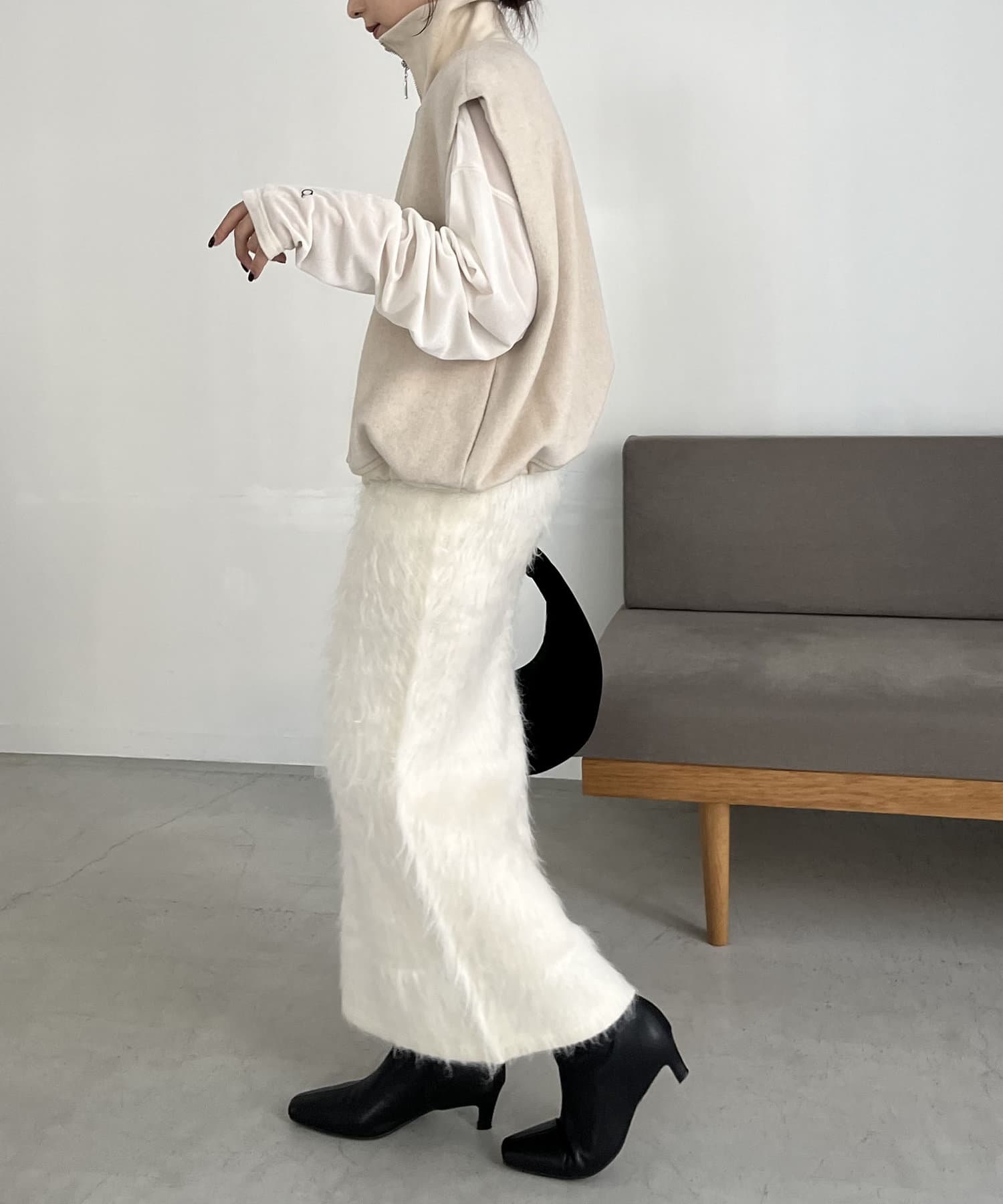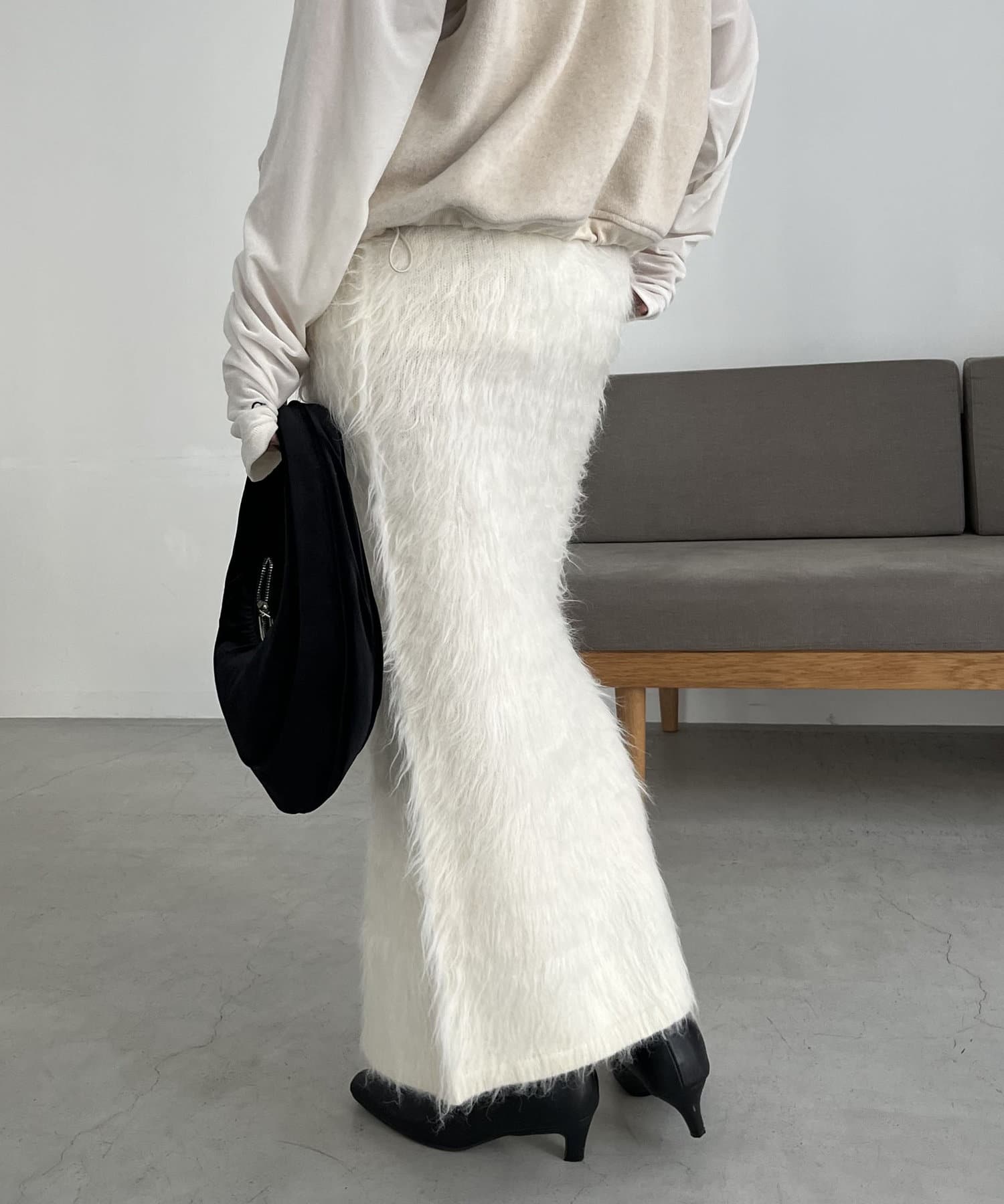 ・ブラッシング加工でファーのような毛足のある素材に仕上げたスカート