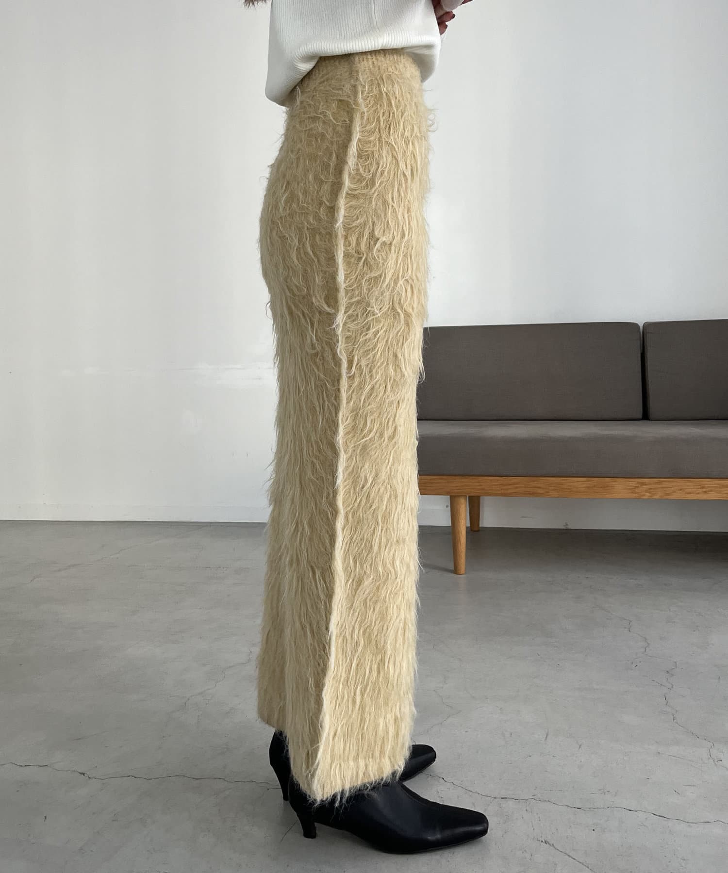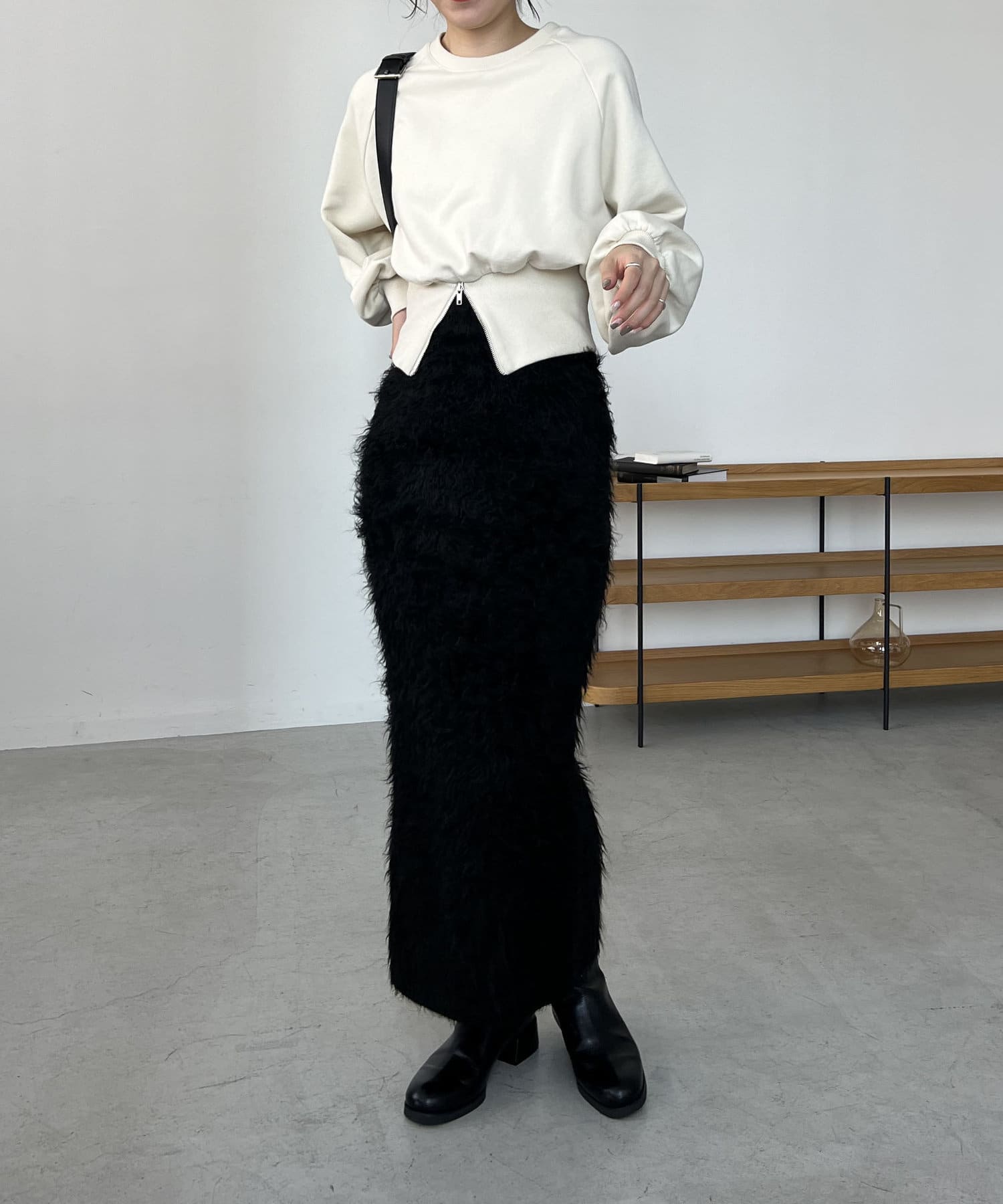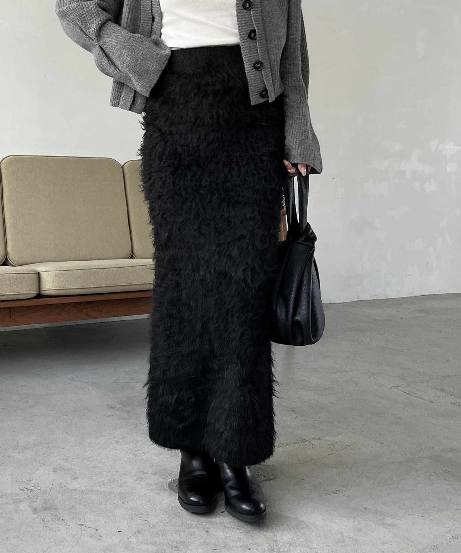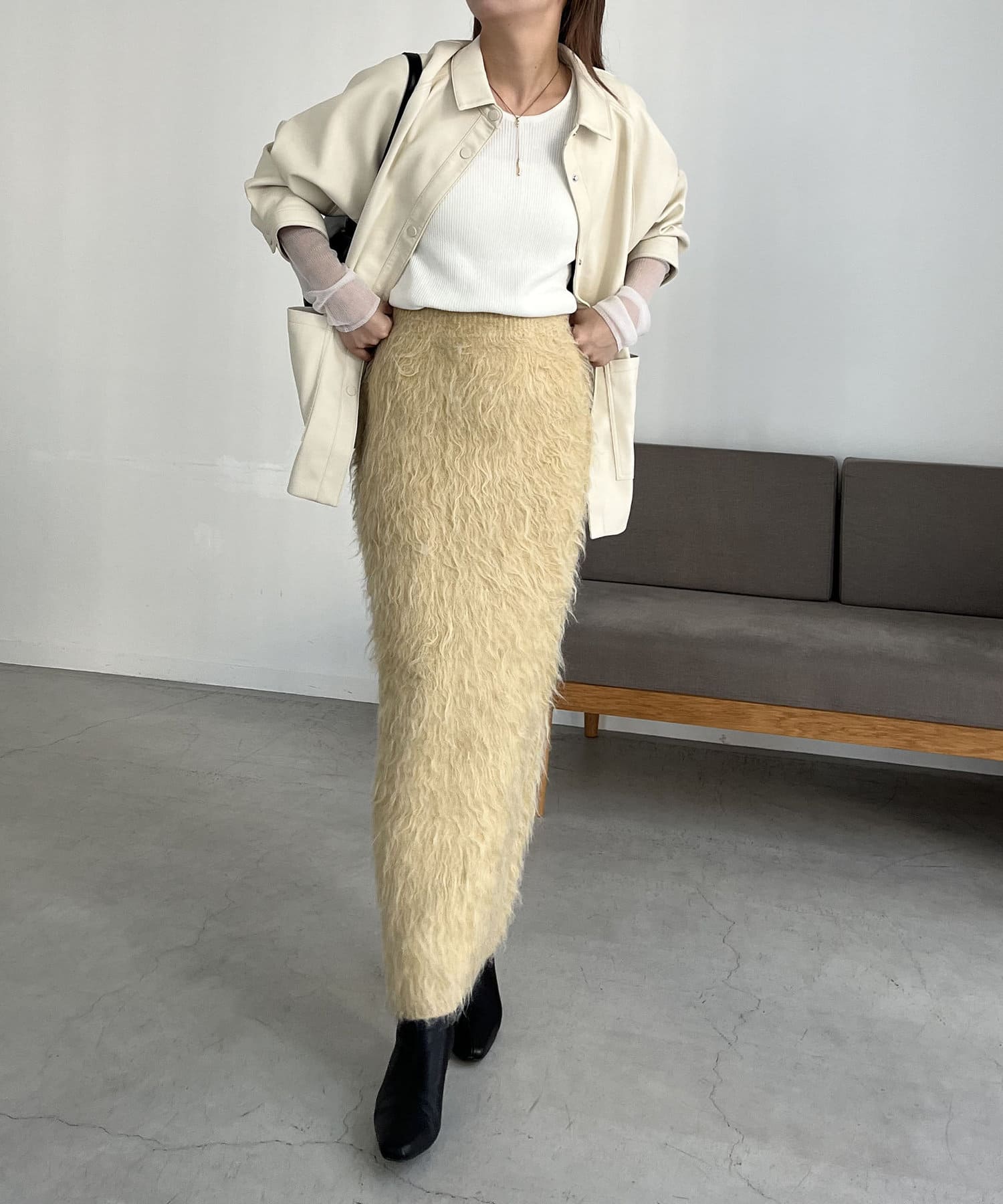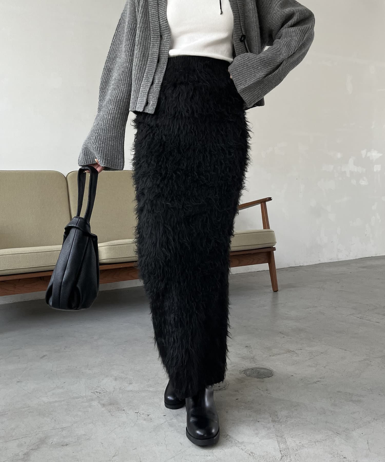 ・ブラッシング加工でファーのような毛足のある素材に仕上げたスカート