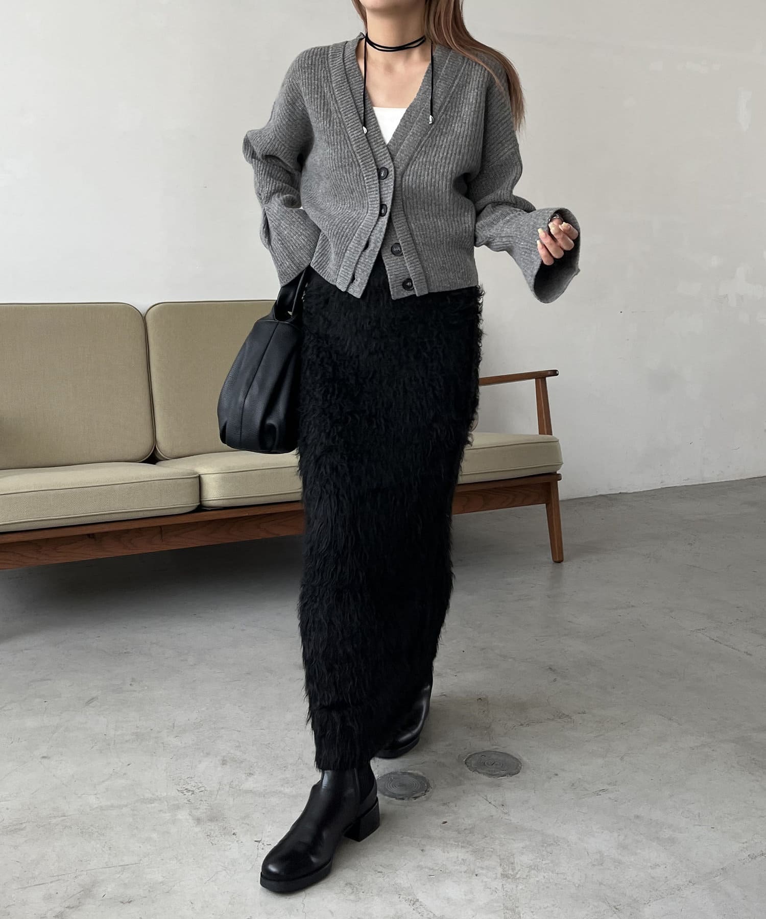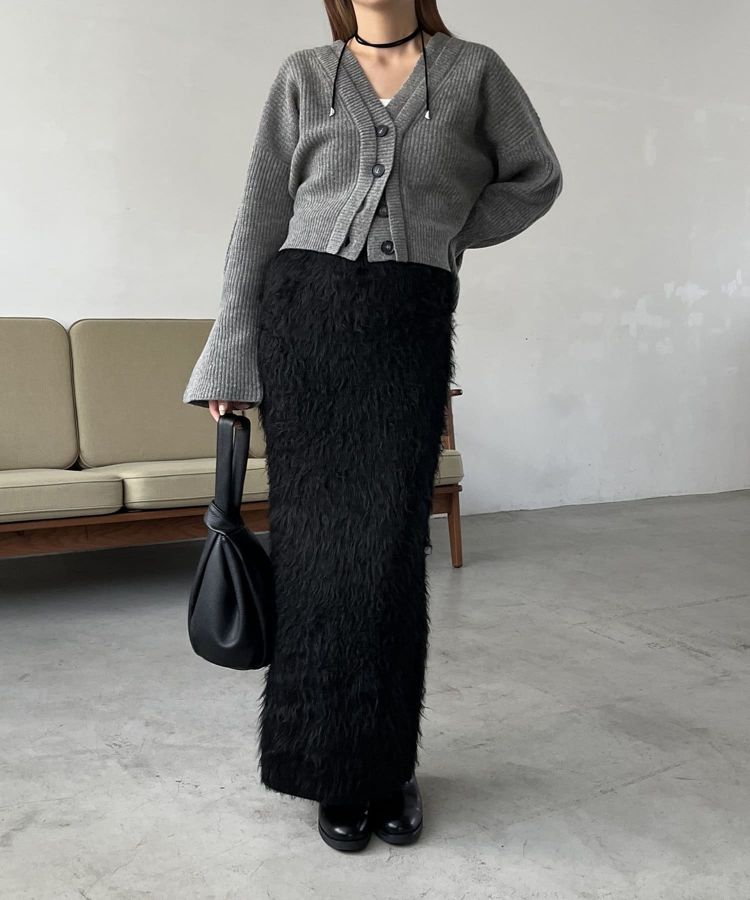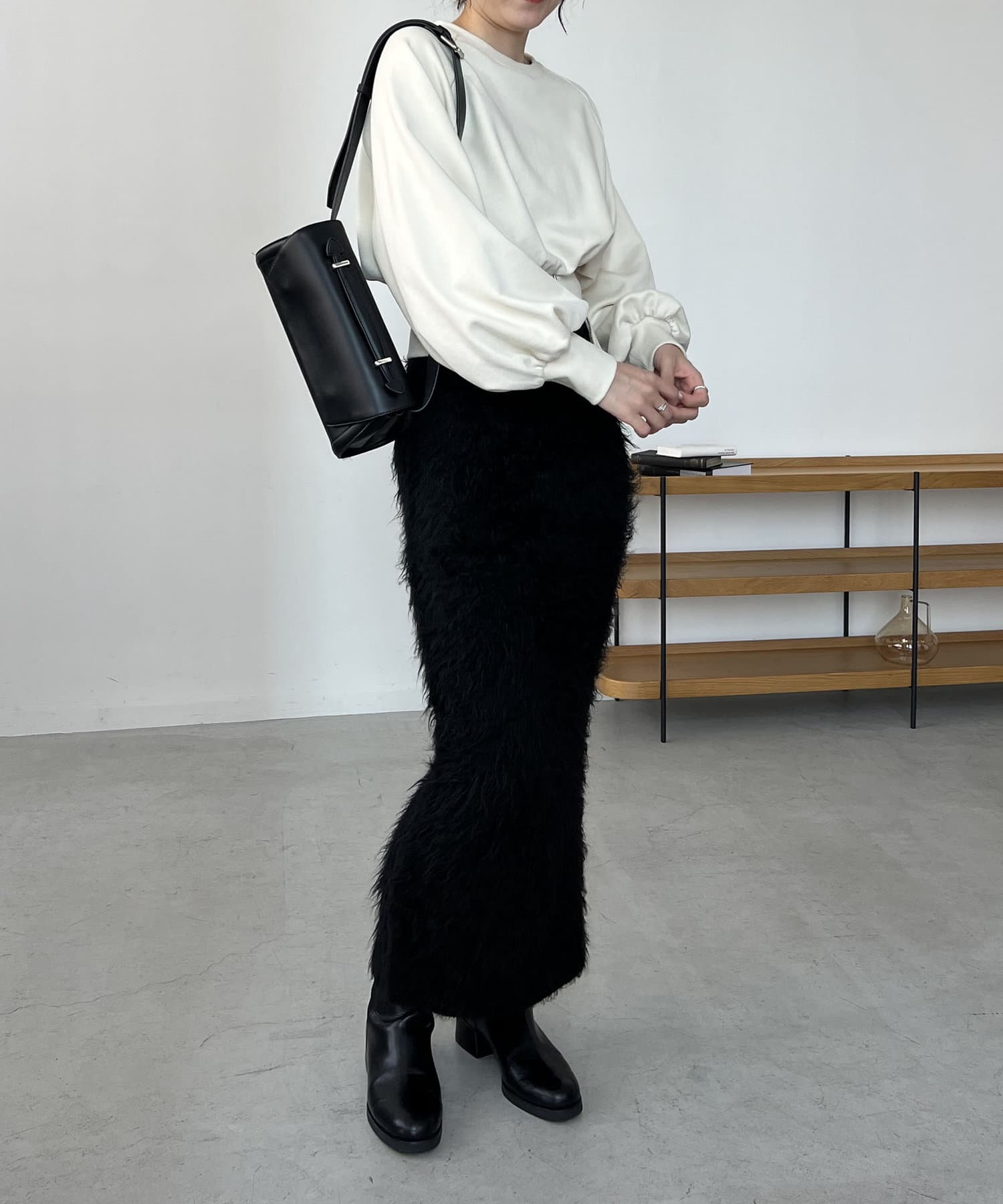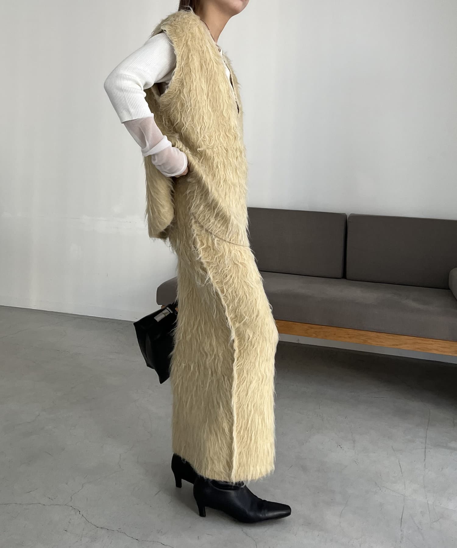 ・ブラッシング加工でファーのような毛足のある素材に仕上げたスカート