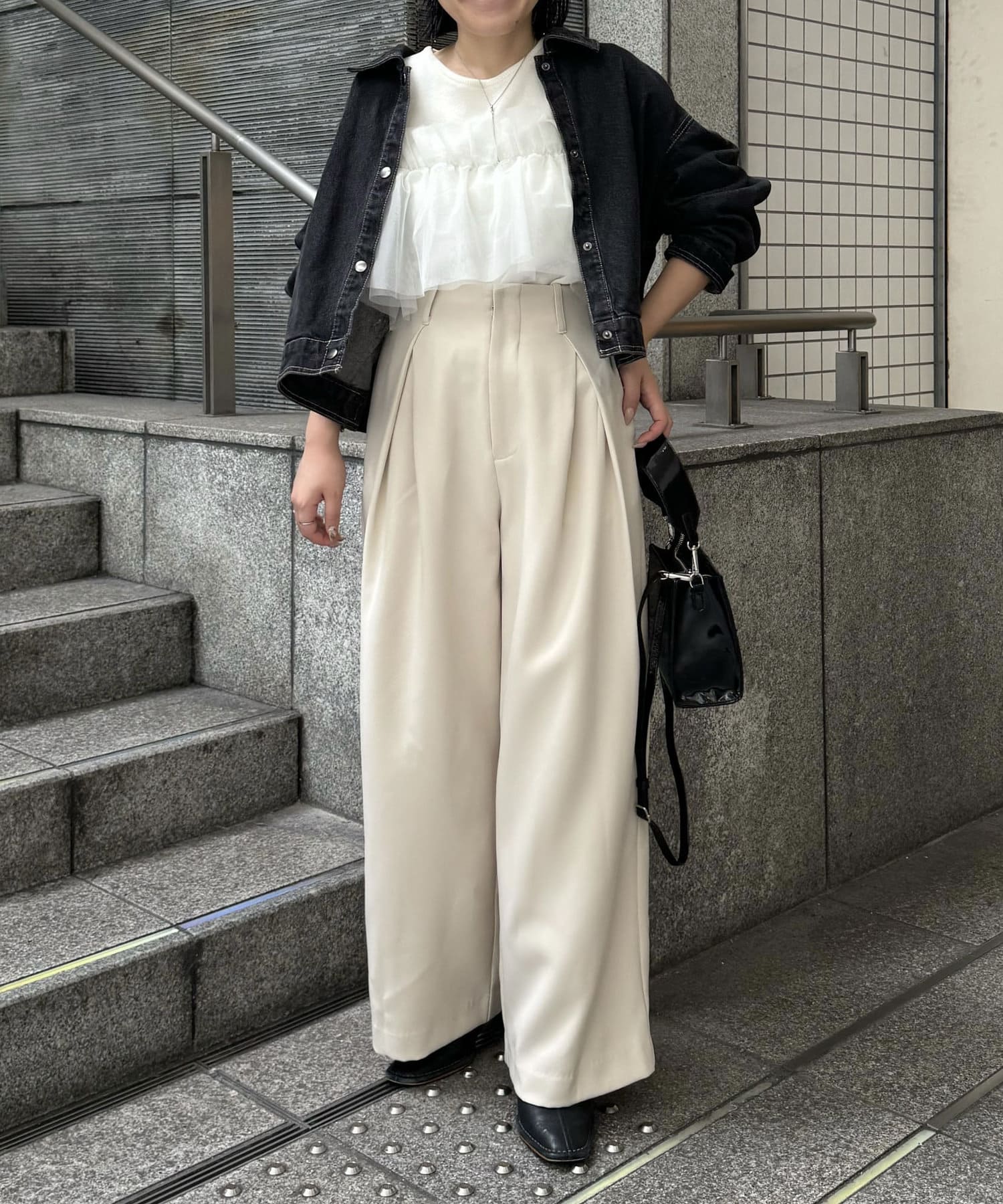 ・コンパクトなリブTや、ショート丈トップスと合わせてメリハリのあるシルエットに