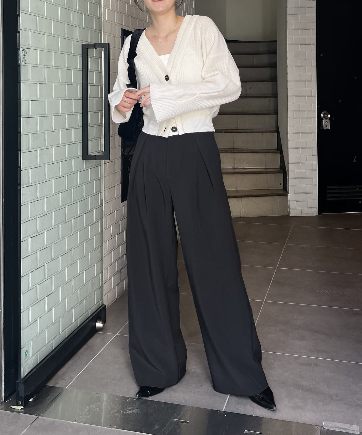 ・程よく落ち感のあるきれいめパンツでオンオフ問わず使える