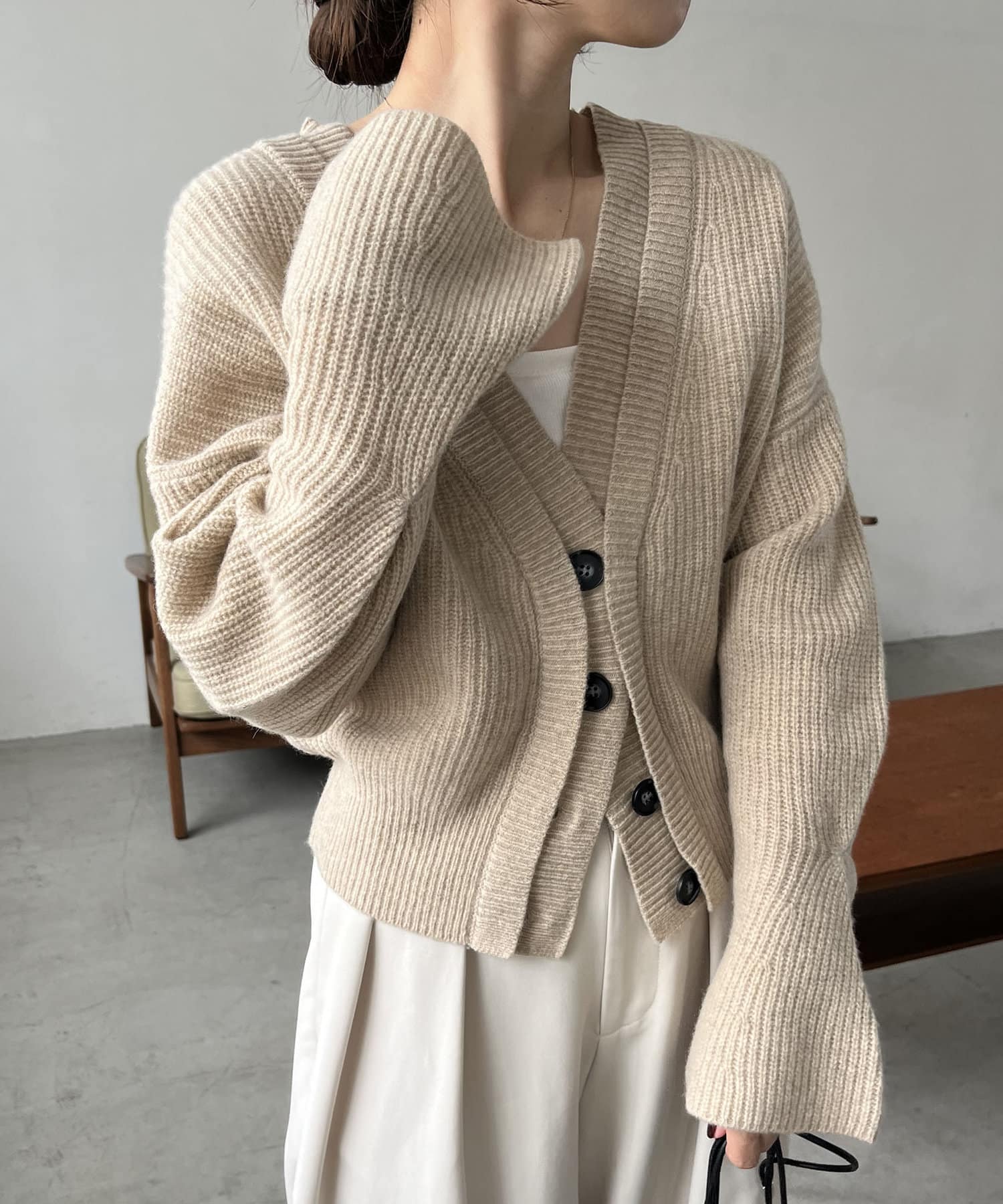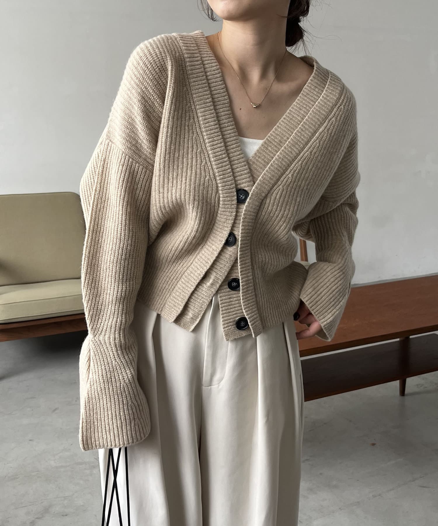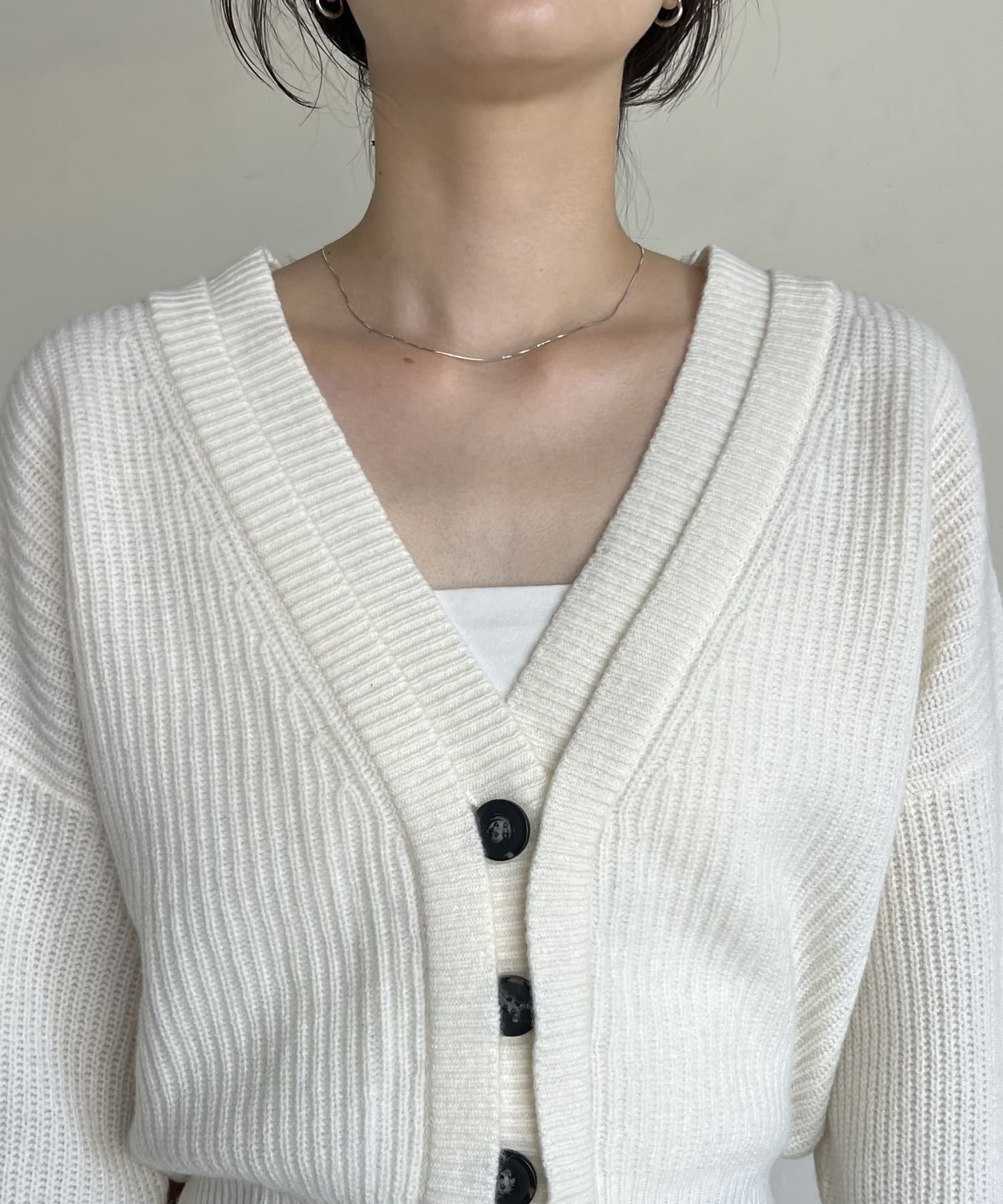 2重になった前立てがこなれ感を引き立てるカーディガン
