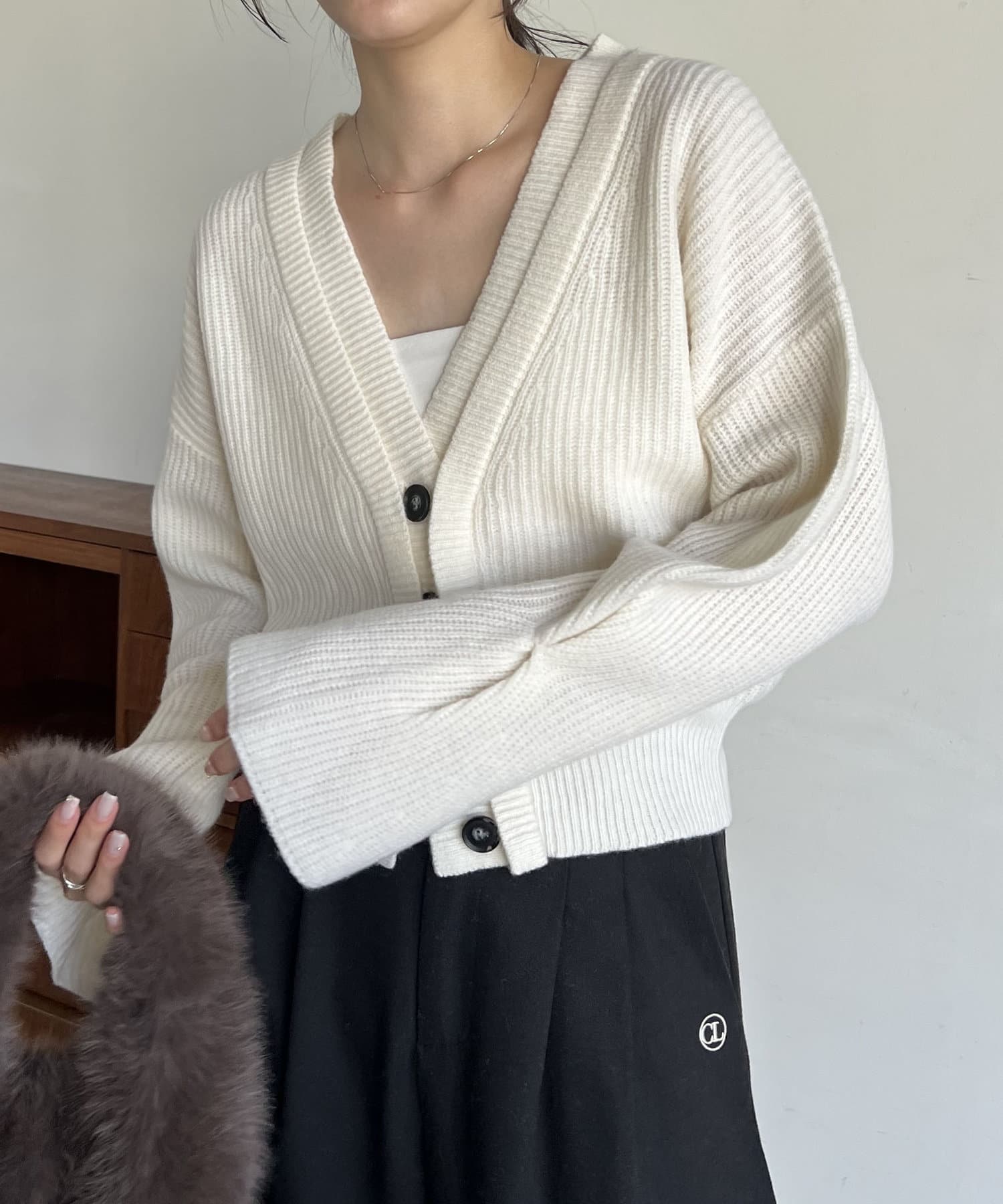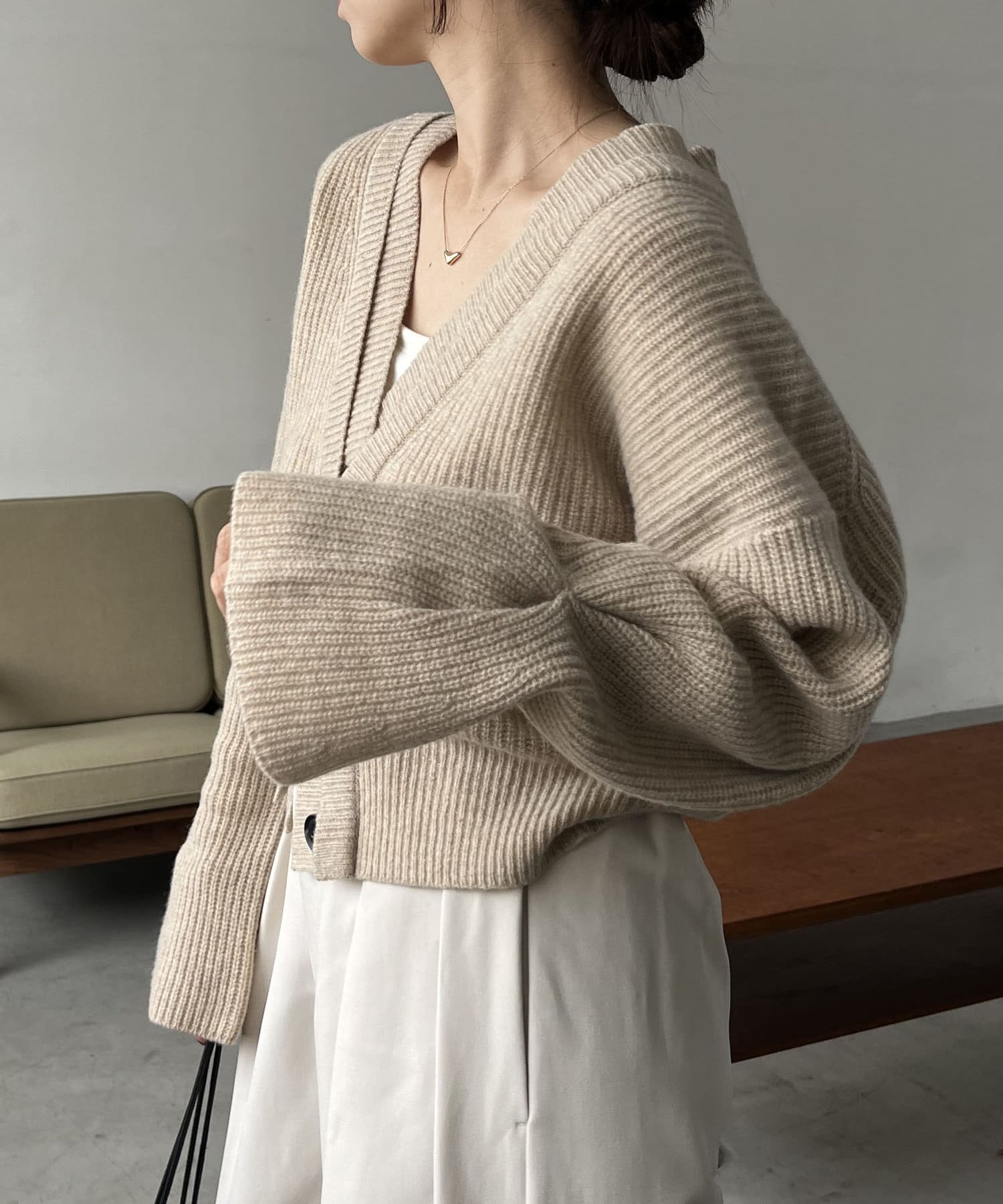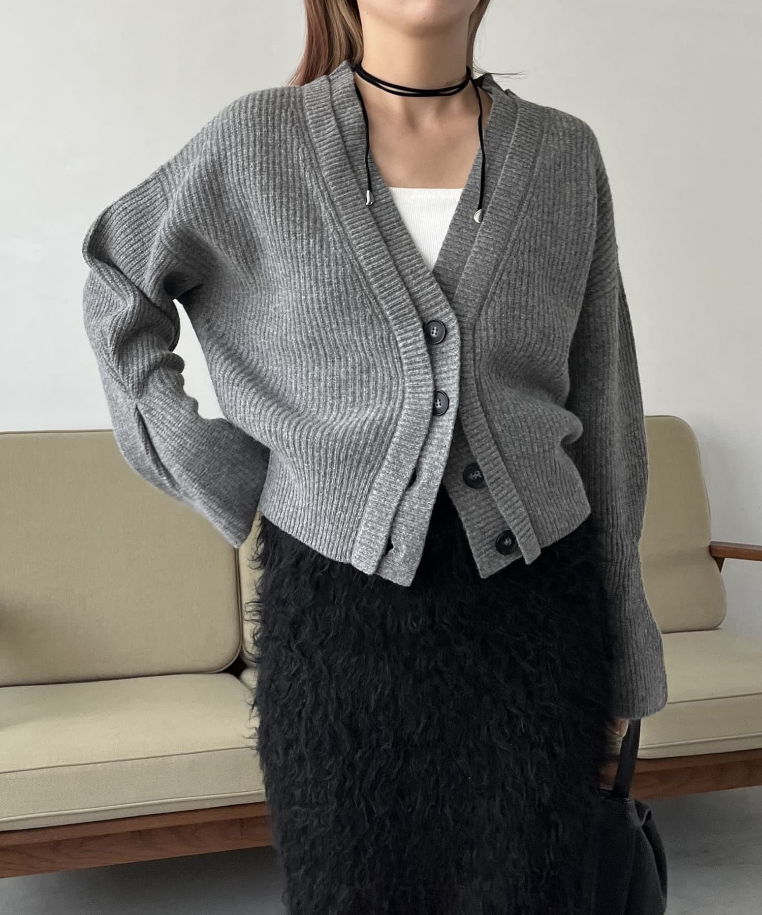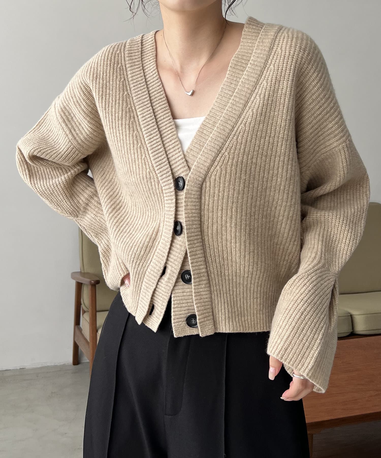 2重になった前立てがこなれ感を引き立てるカーディガン
