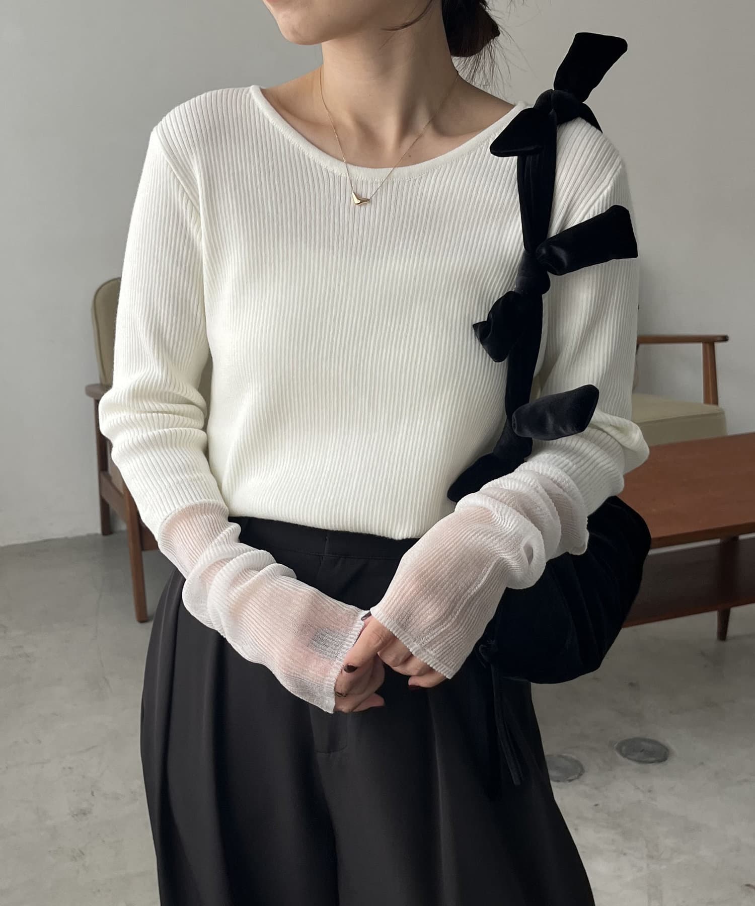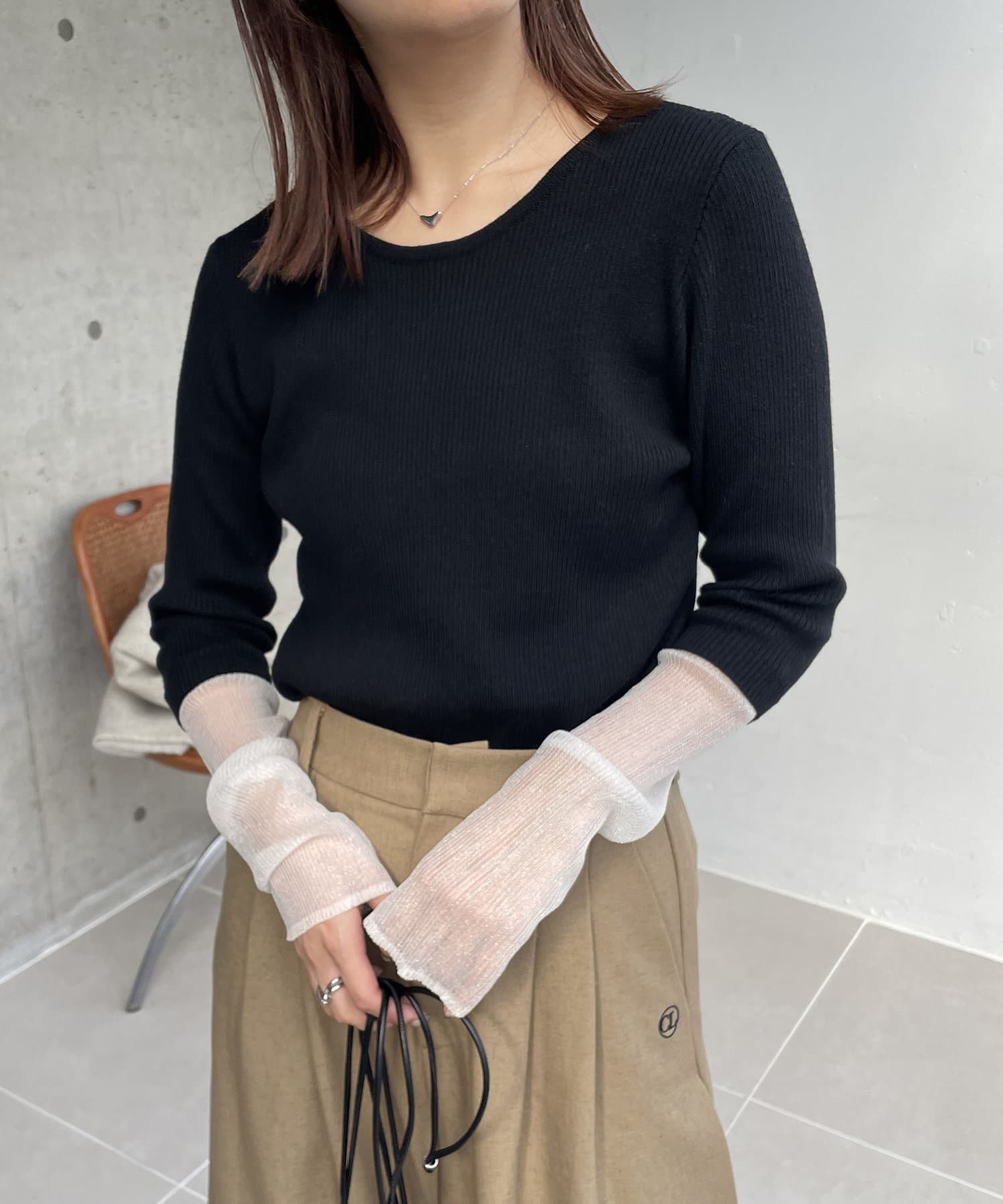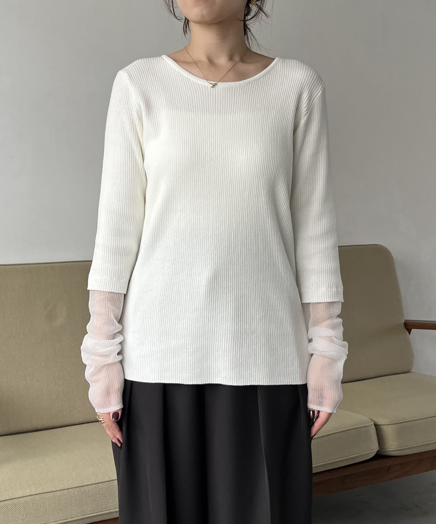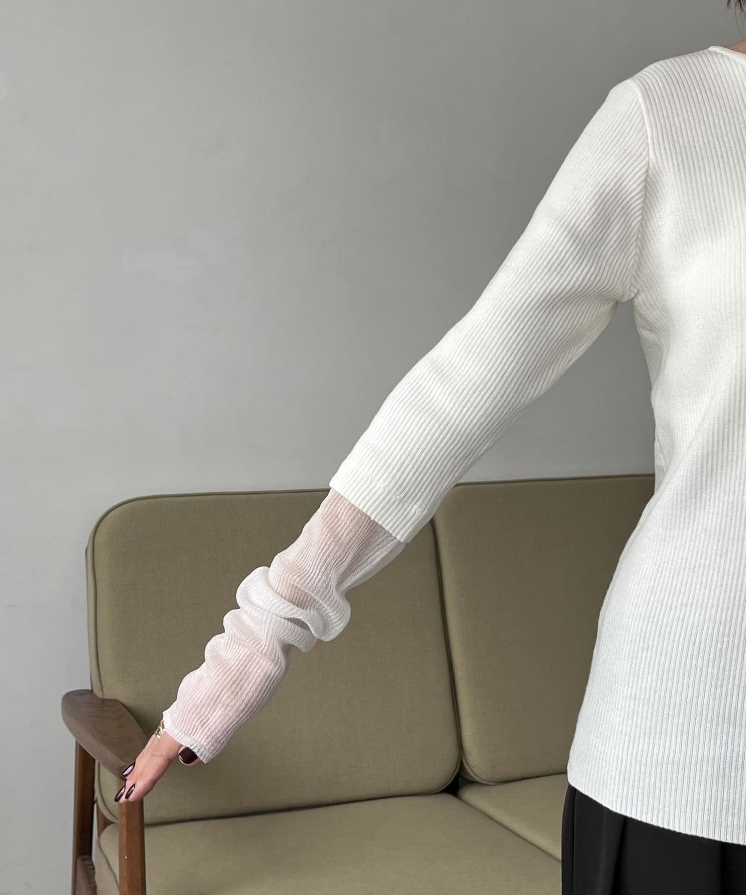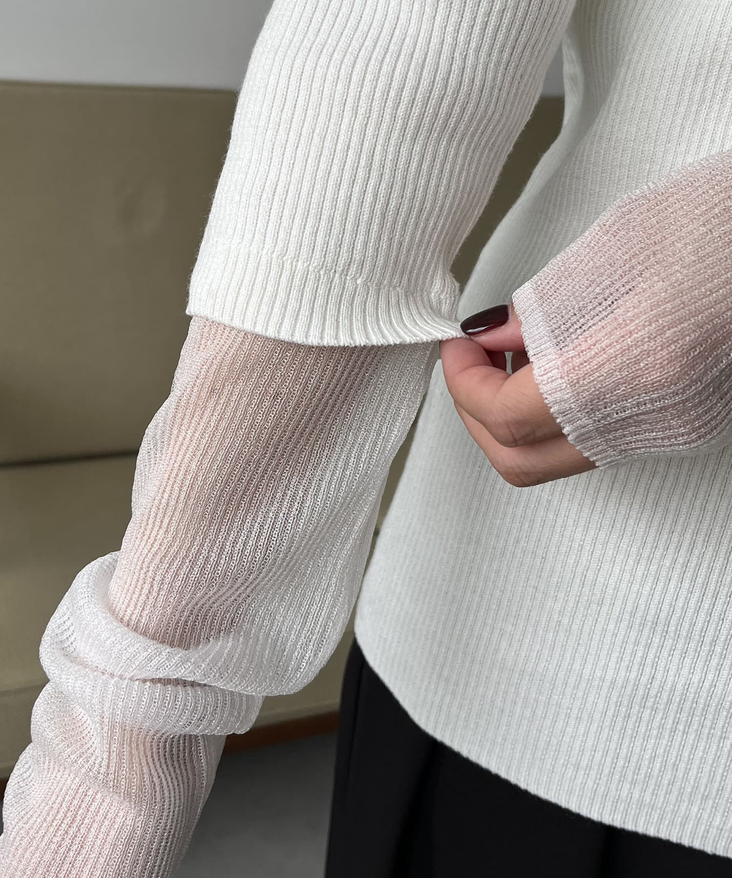 袖シアーレイヤード風リブニット