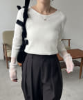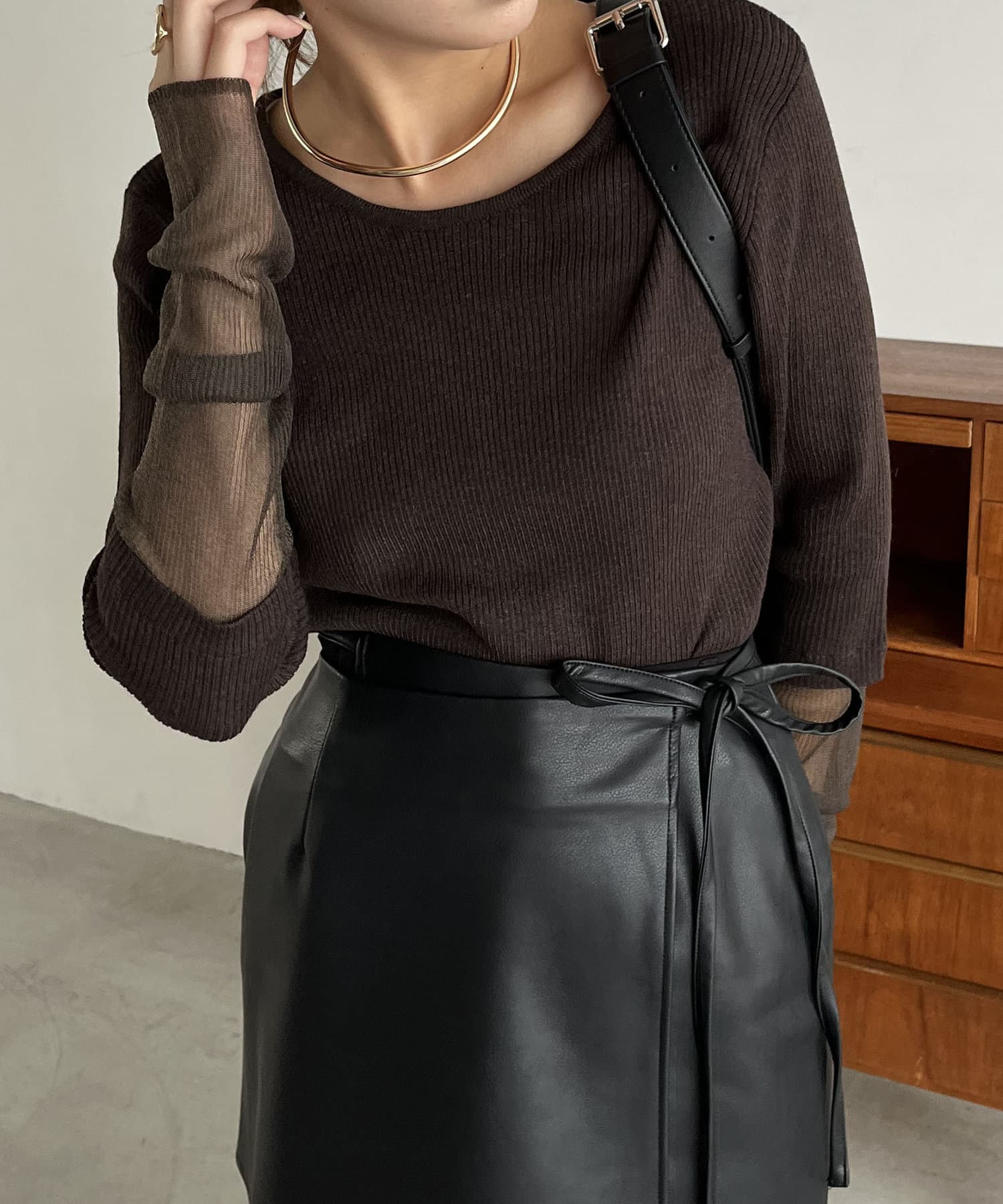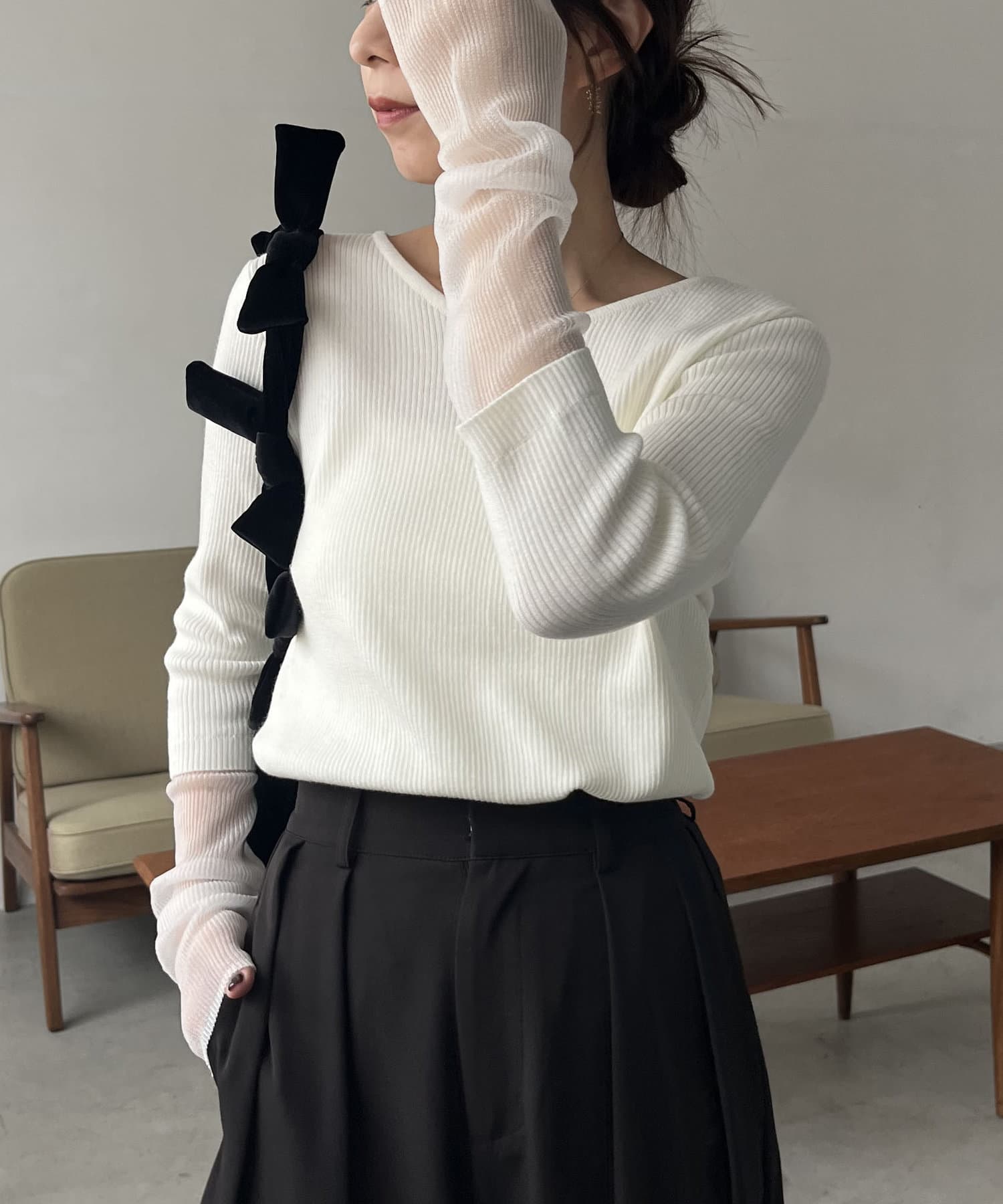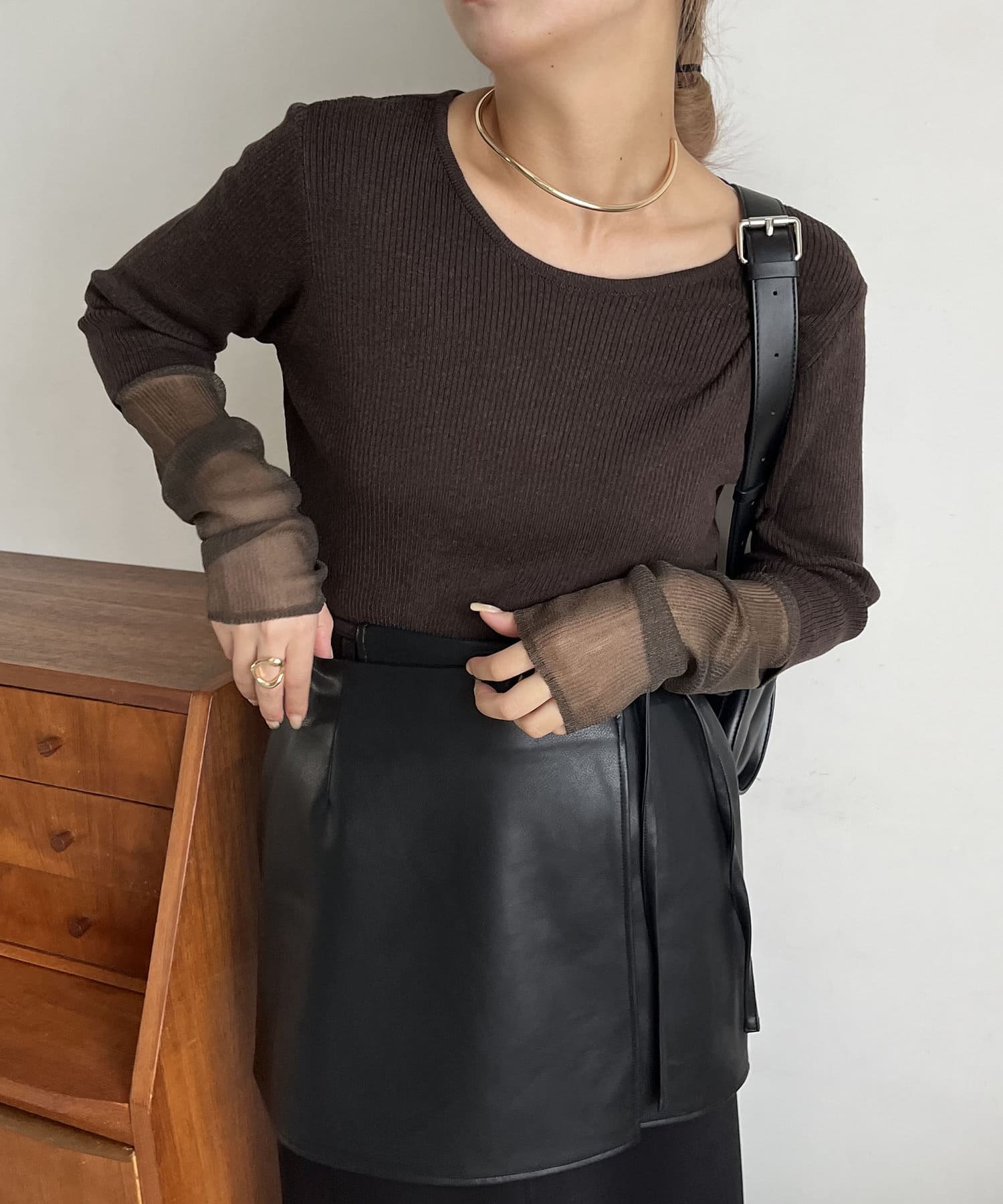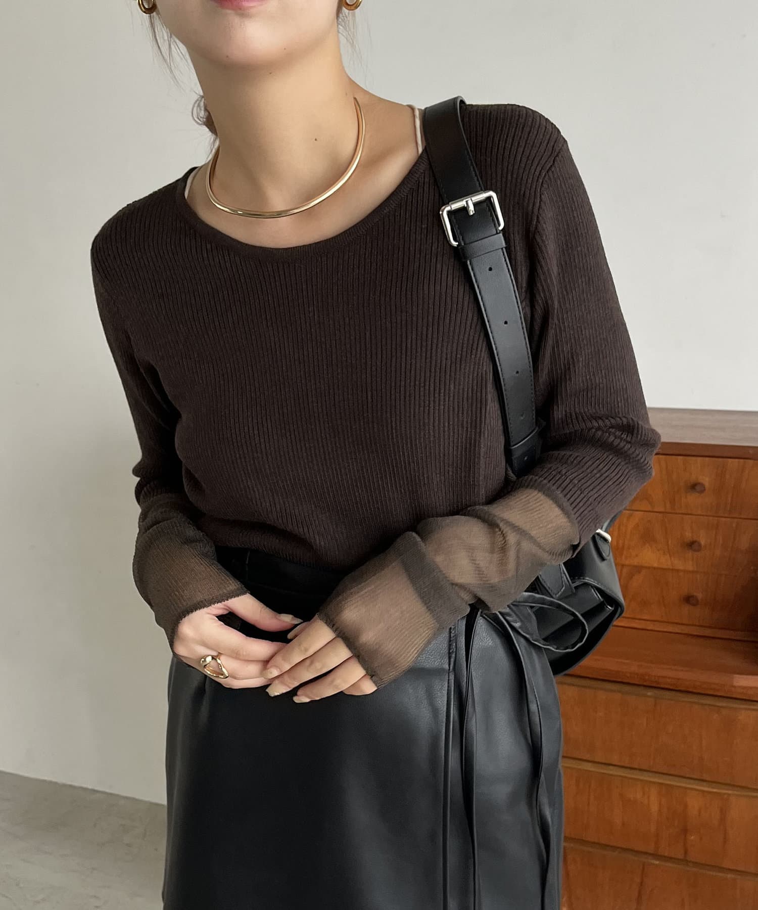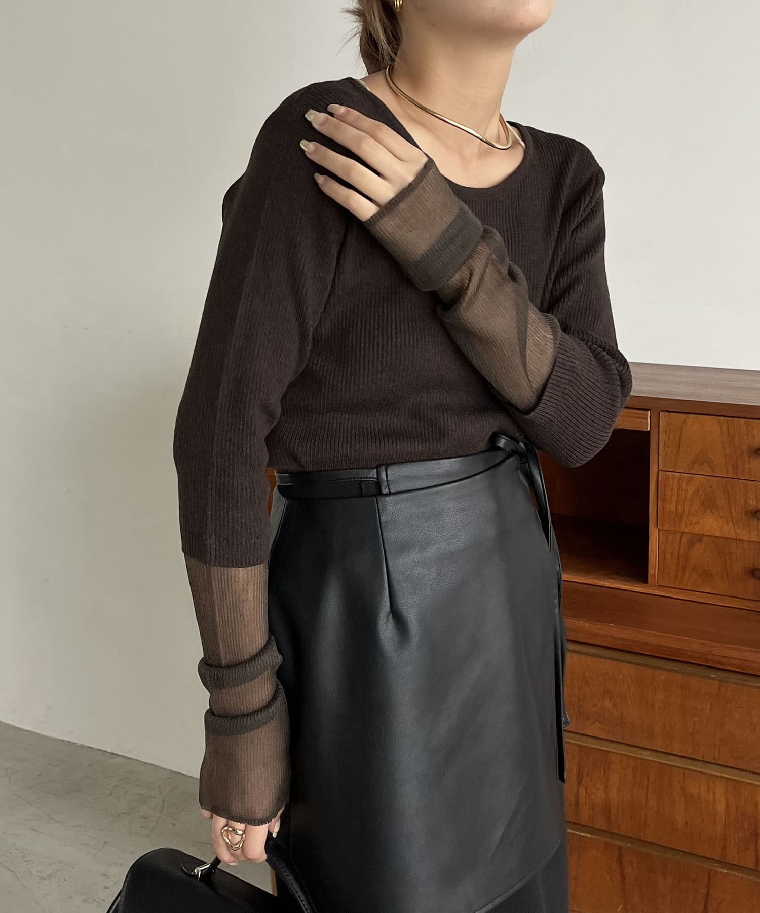 袖シアーレイヤード風リブニット