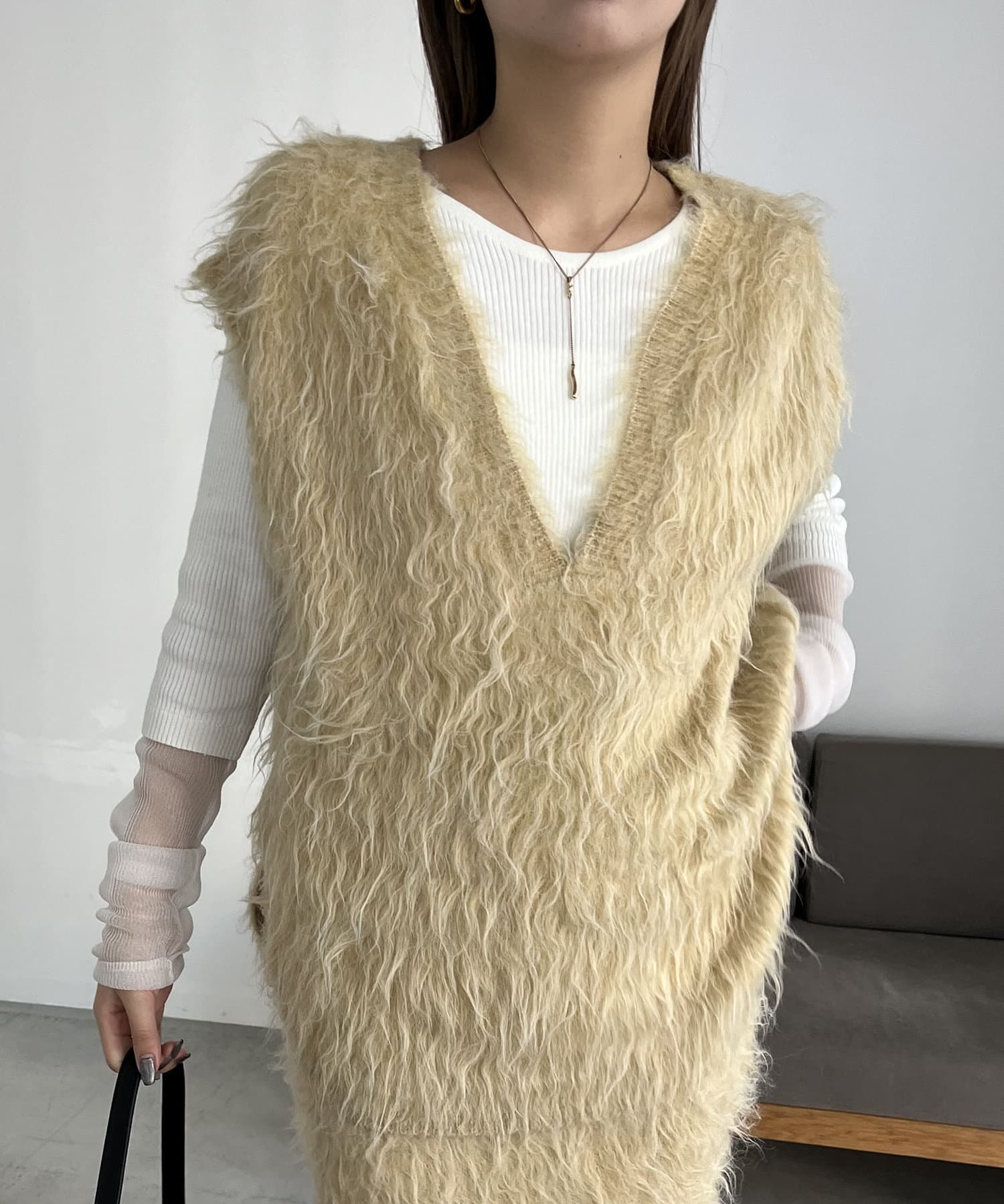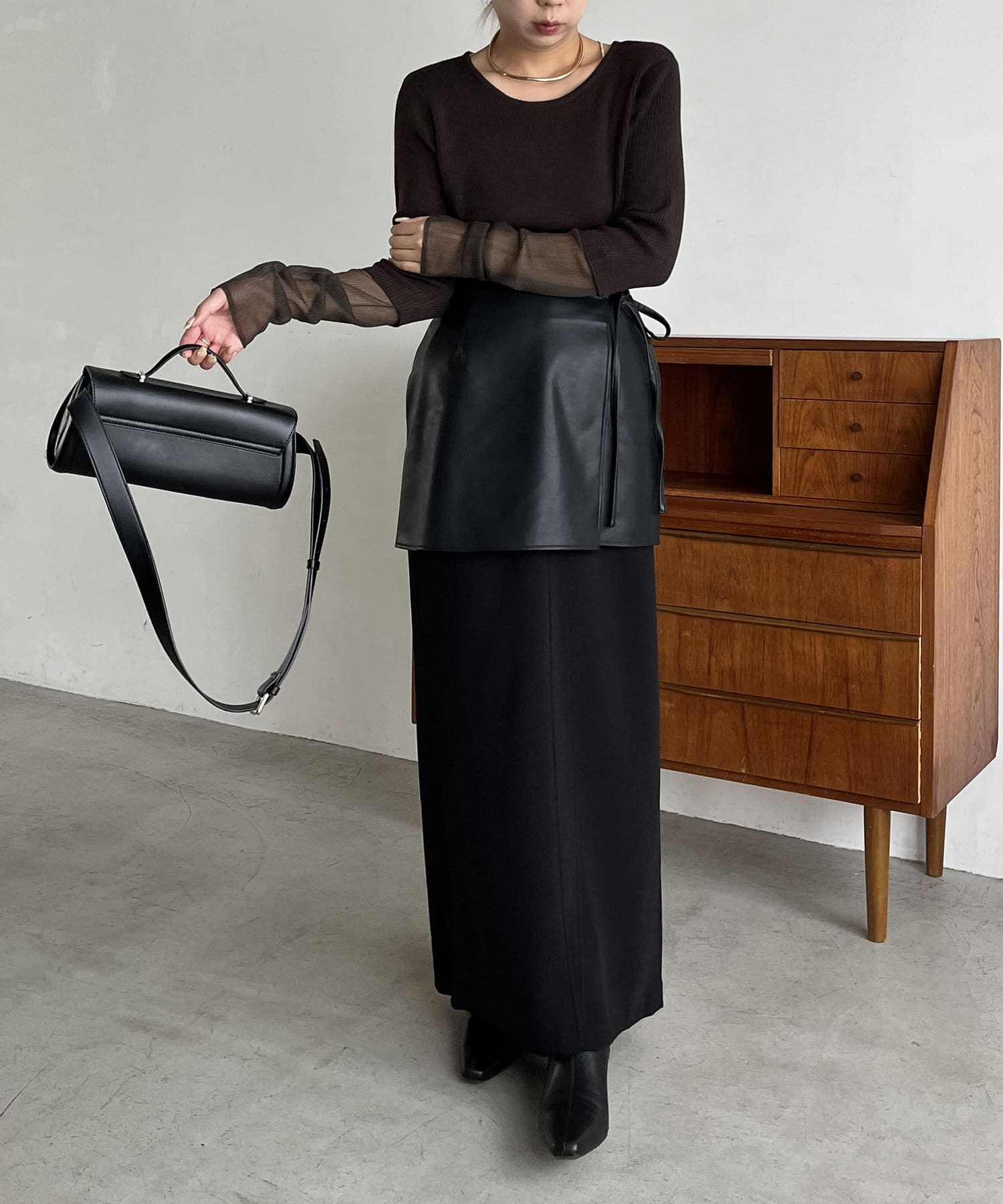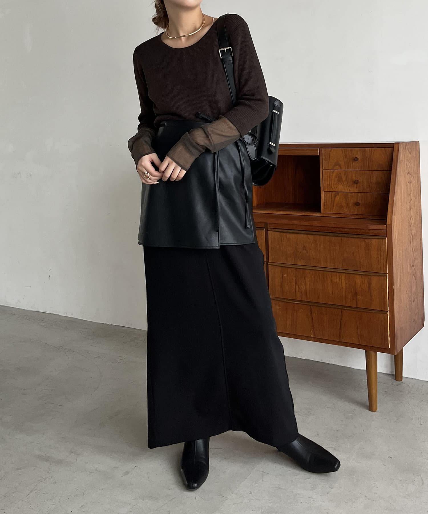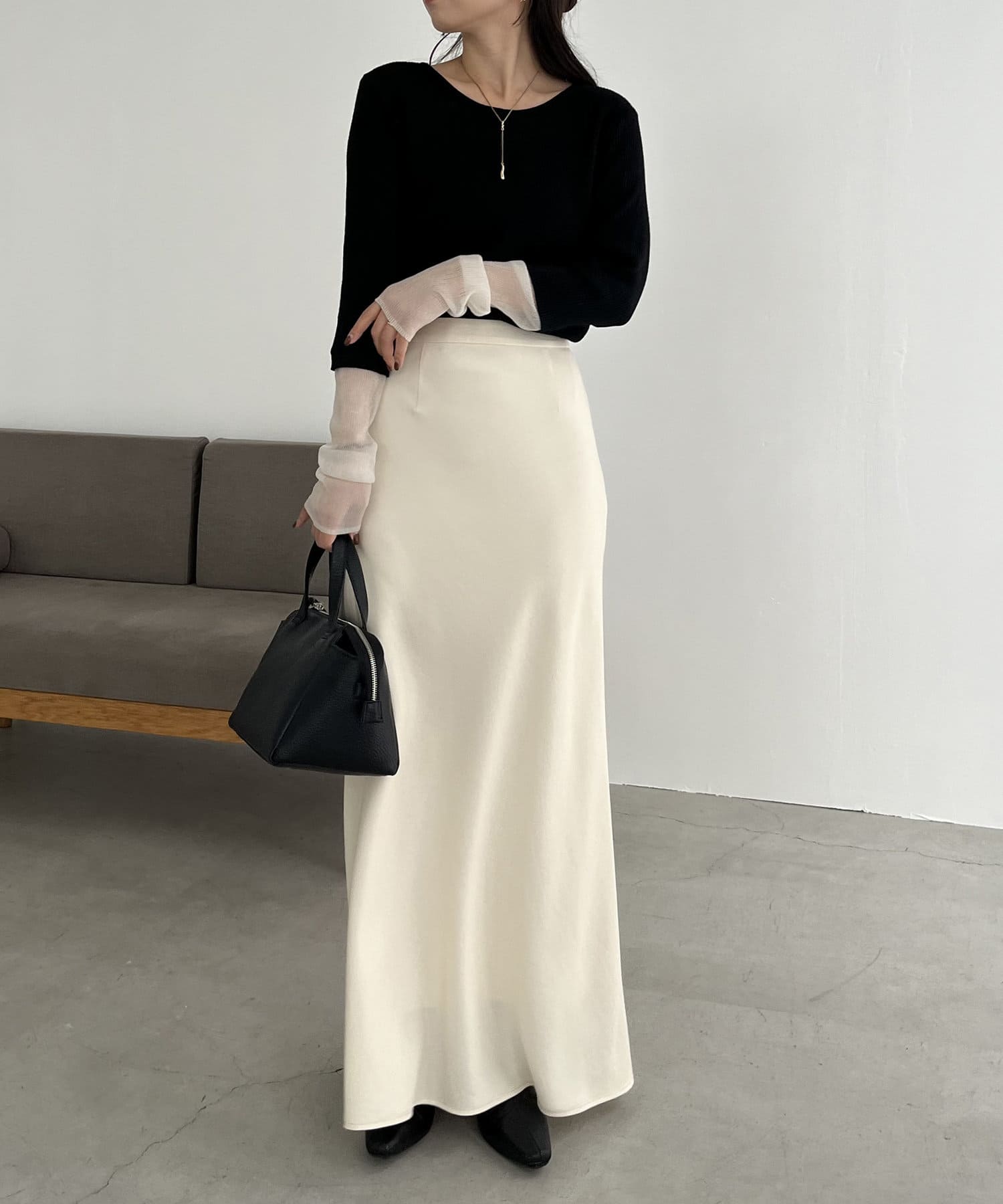 シアーニットをレイヤードした着映えトップス
